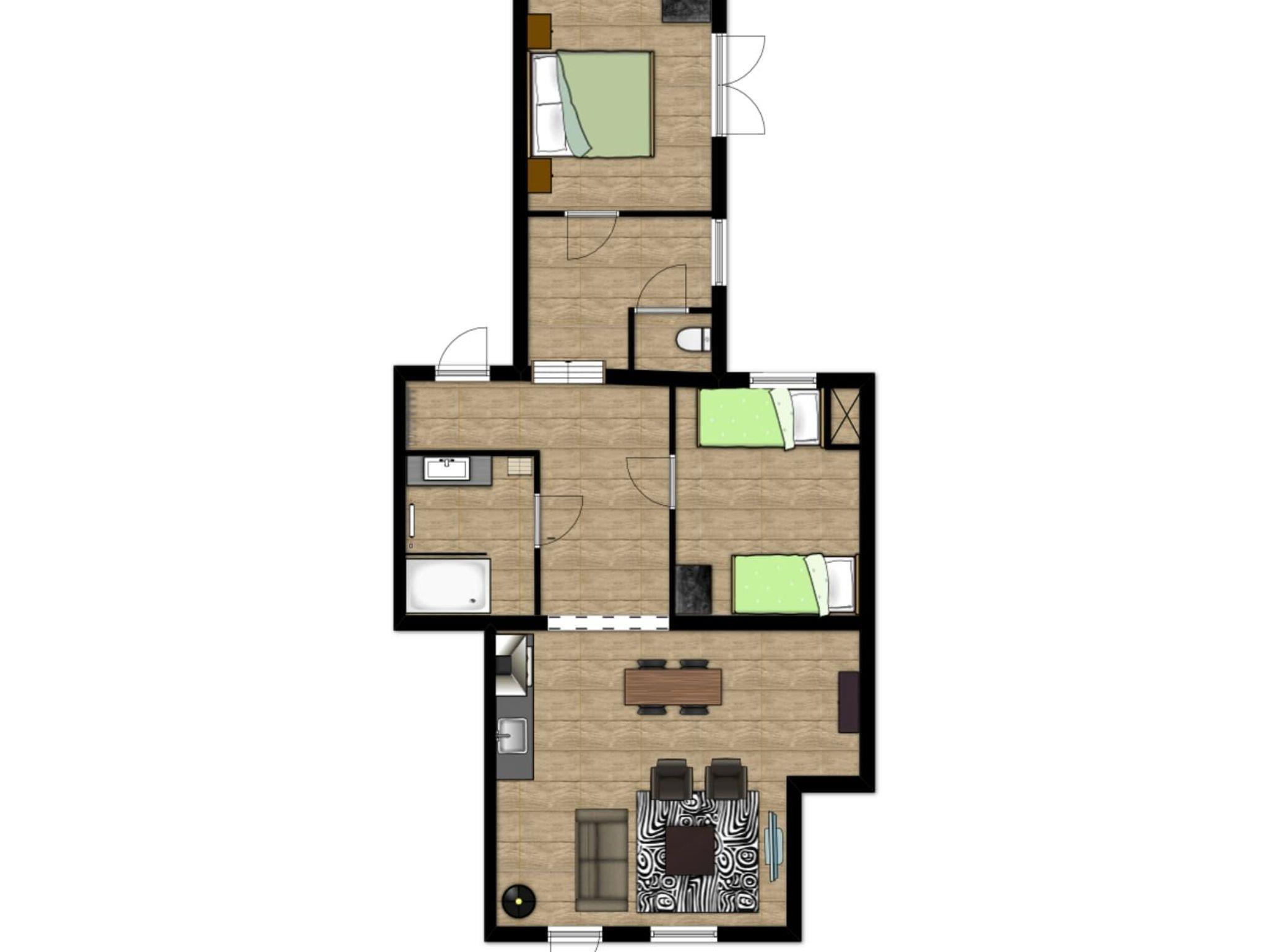 1 Schlafzimmer mit 2 separaten Betten und Ausziehbett