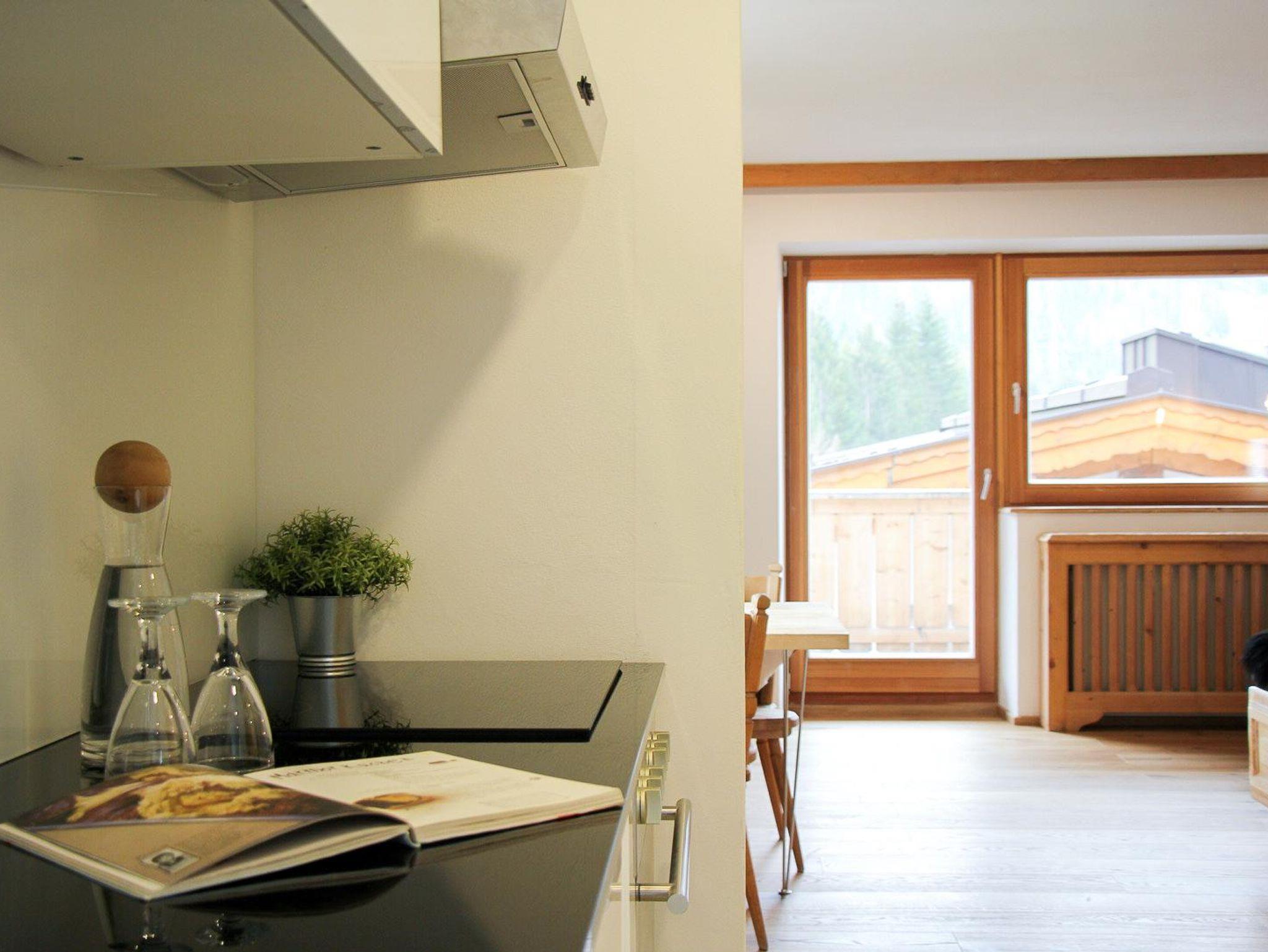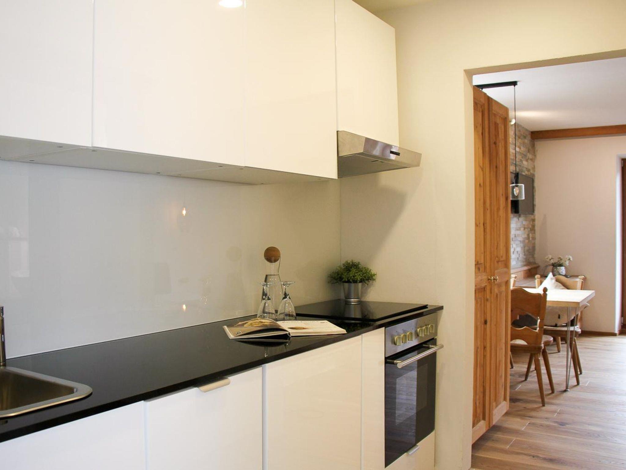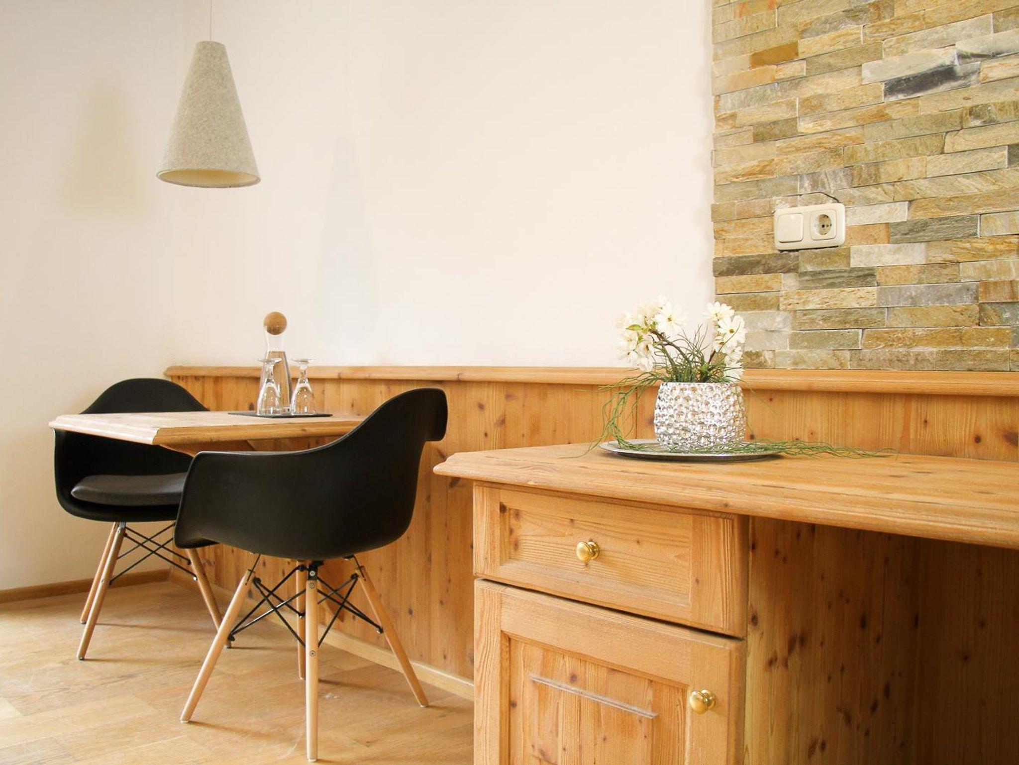 Dieses Apartment ist buchbar für bis zu 3 Personen und bietet auf 40 m² einen komfortablen Wohn-/Schlafbereich mit einem Doppelbett, ein separates Kinderbett (150 cm lang) im Vorraum, eine voll ausgestattete Küche, ein modernes Badezimmer mit Dusche, einen Essbereich im lichtdurchfluteten Erker, sowie einen Südbalkon mit wunderschönem Bergblick. Das Apartment befindet sich im 3. Stock in ruhiger Lage am Ende des Flurs und ist bequem über einen Aufzug zugänglich.