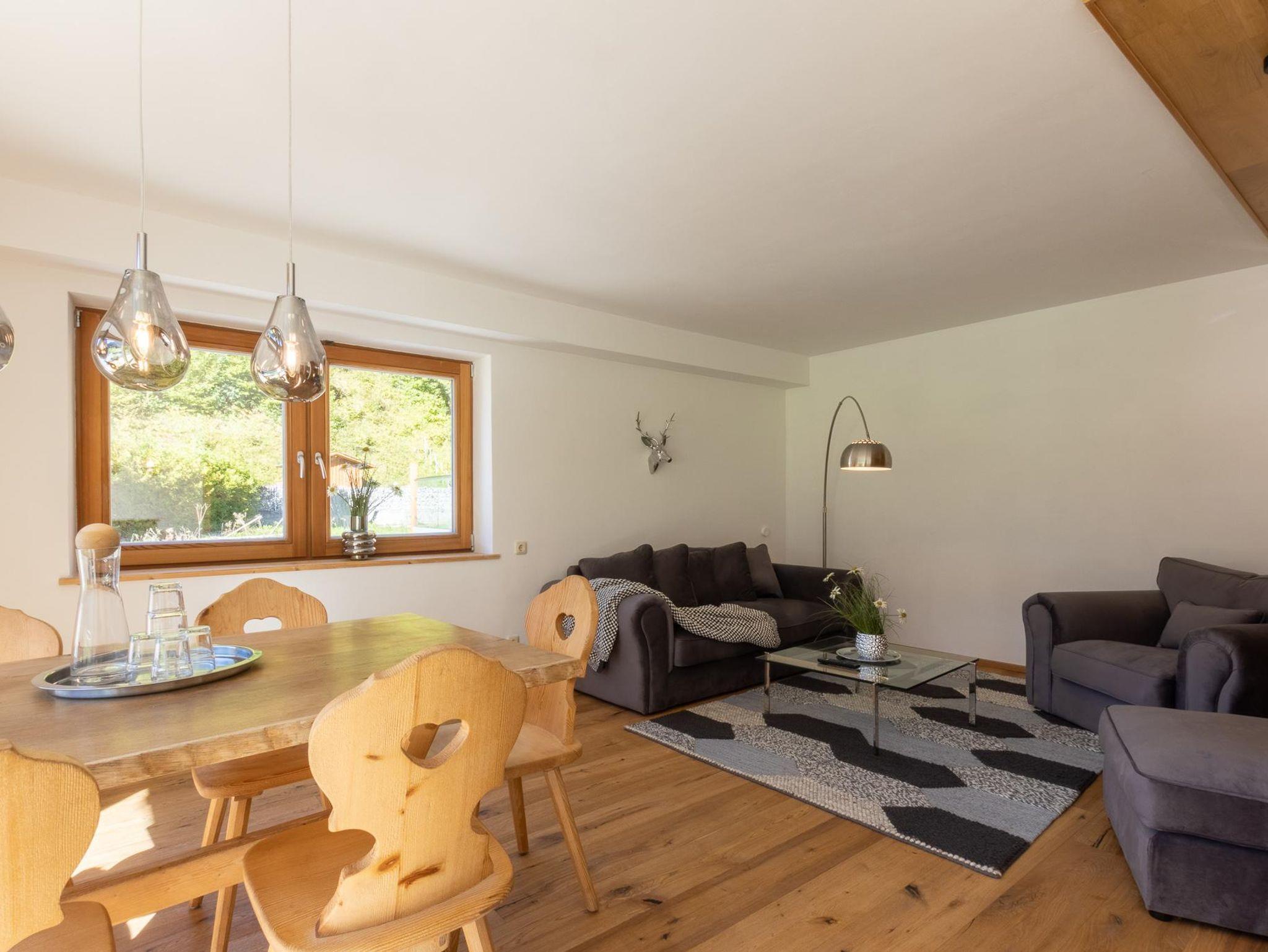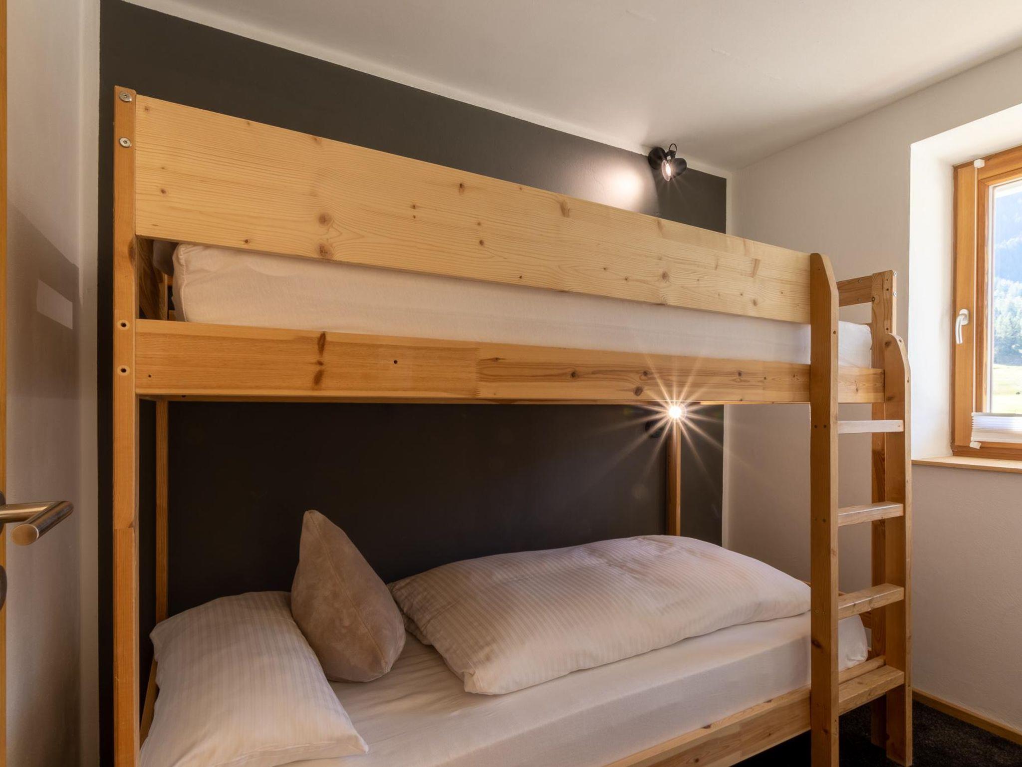 Familienfreundliches Apartment bietet mit zwei gemütlichen Schlafzimmern – eines mit Doppelbett sowie eigenem Bad, das andere mit Stockbett, Platz für bis zu 4 Personen. Ein zusätzliches Bad mit separatem WC bietet extra Komfort. Der helle Wohn-Essbereich mit voll ausgestatteter Küche, Sofaecke und Esstisch öffnet sich zum Balkon mit traumhaftem Bergpanorama. Ideal für erholsame Tage in der Tiroler Natur.