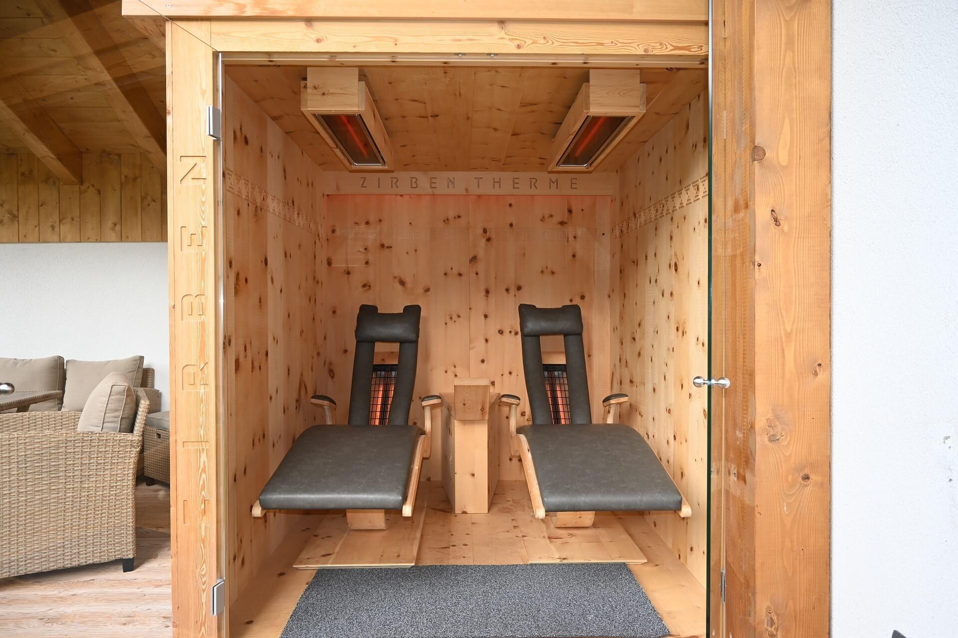 - entspanne kostenlos auf unseren neuen Infrarot-Zirben-Liegen in deinem privaten Wellnessbereich