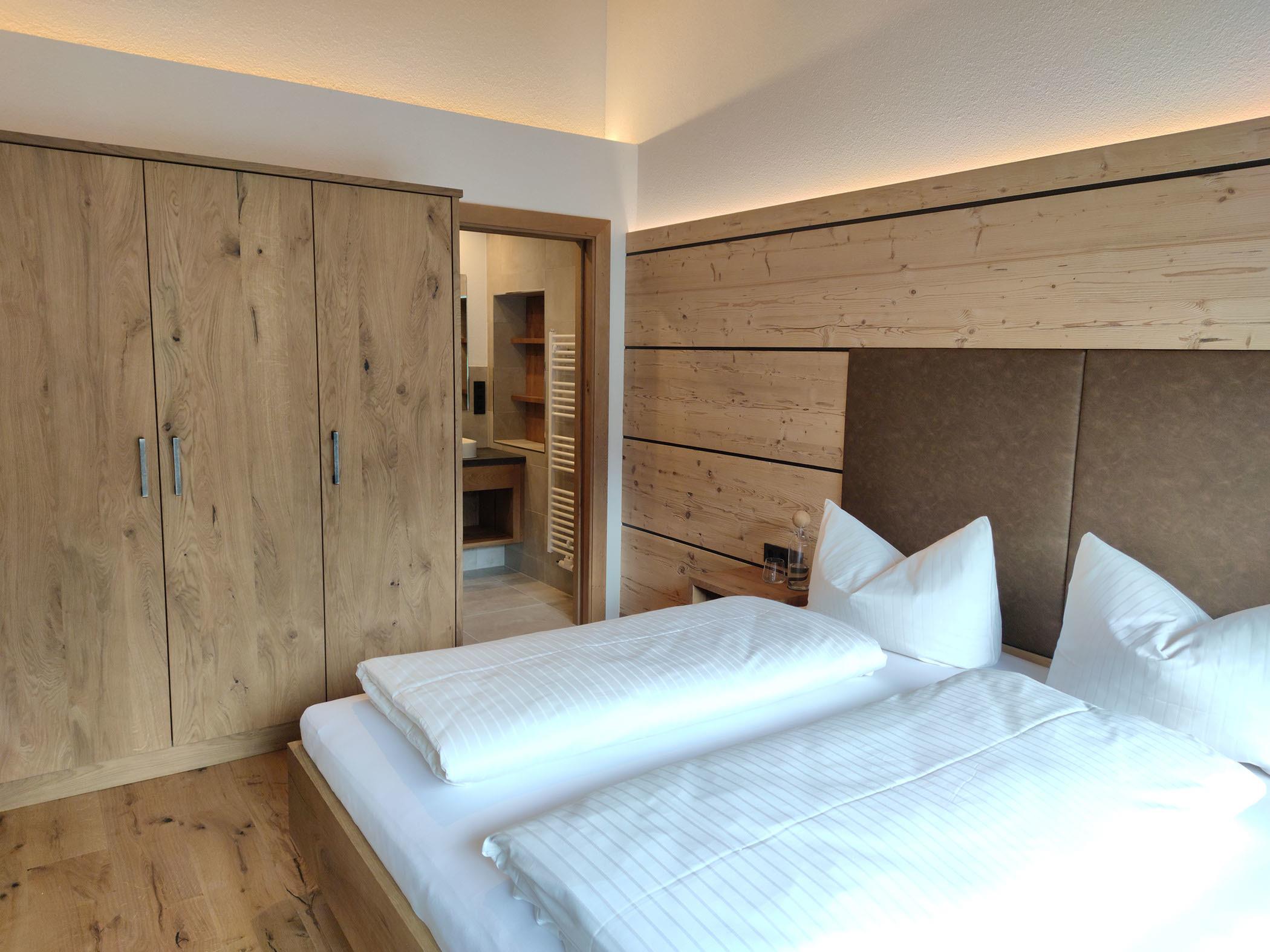 Unsere Ferienwohnungen sind geräumig und mit viel Liebe eingerichtet. Alle Zimmern verfügen über Kabel-TV, Telefon und kostenloses W-Lan. Damit Sie auch Nachts einen erholsamen Schlaf haben legen wir großen Wert auf eine (gesundes und behagliches Wohnklima) Schadstoffarme und gute Raumluft, deswegen sind all unsere Zimmer in Naturholz ausgeführt.