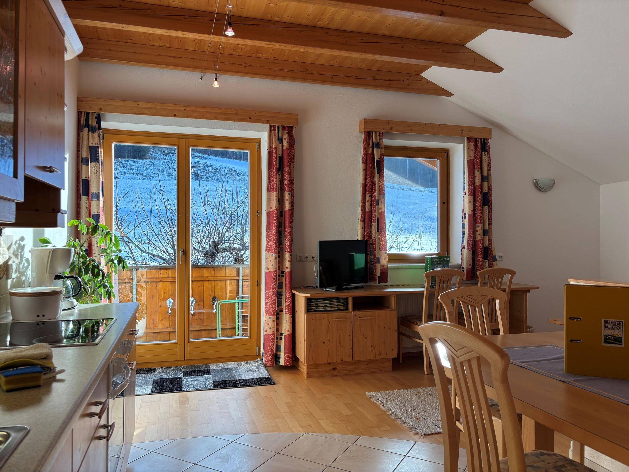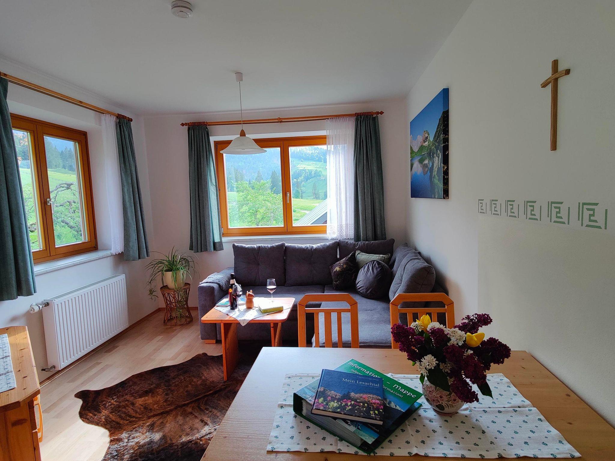 Von dieser Wohnung aus genießen Sie einen herrlichen Ausblick auf die umliegende Bergwelt und auf weite Teile des Lesachtales. Es erwartet Sie eine top ausgestattete Ferienwohnung - neuwertig, hell, gemütlich und mit viel Komfort. Sehr großer Wohnbereich mit Flachbild SAT-TV, Radio und Südbalkon, 2 Doppelschlafzimmer mit Fliegengitter und Verdunkelungsrollos, Bettenlänge in einem der Doppelschlafzimmer 2,10 m, (Gitterbett bzw. Zustellbett möglich); super Küchenausstattung (Geschirrspüler, Mikrowelle, E-Herd mit Backrohr, Kühlschrank mit 4 Sterne Gefrierfach uvm.), großer Esstisch, Bad mit Doppelwaschtisch und Kosmetikspiegel, Badewanne (auch zum Duschen geeignet), Fußbodenheizung/Handtuchtrockner; seperates WC, große Garderobe mit Ganzkörperspiegel, Südbalkon. Besonders viel Stauraum in dieser Wohnung, Gästewaschmaschine im Haus!