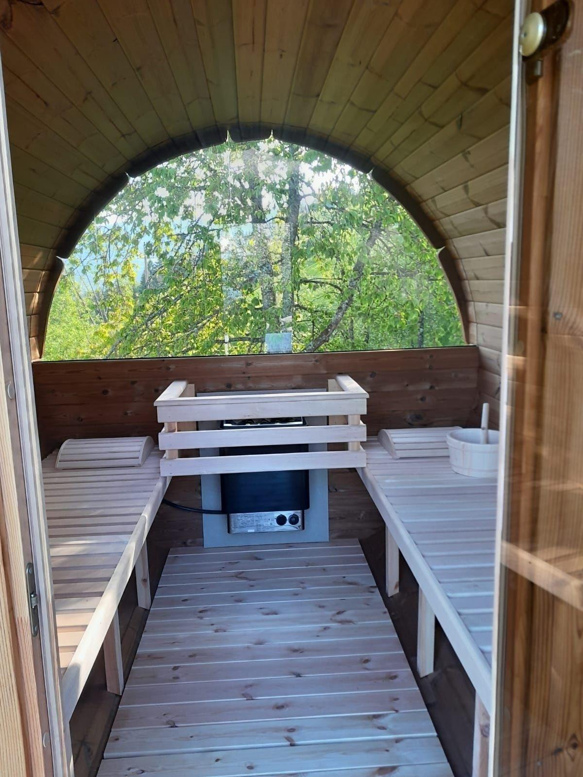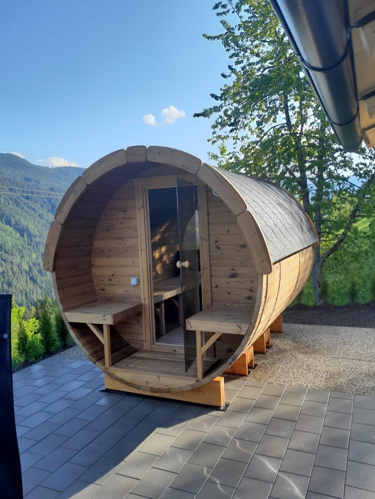 Fass-Sauna & Whirlpool im Garten