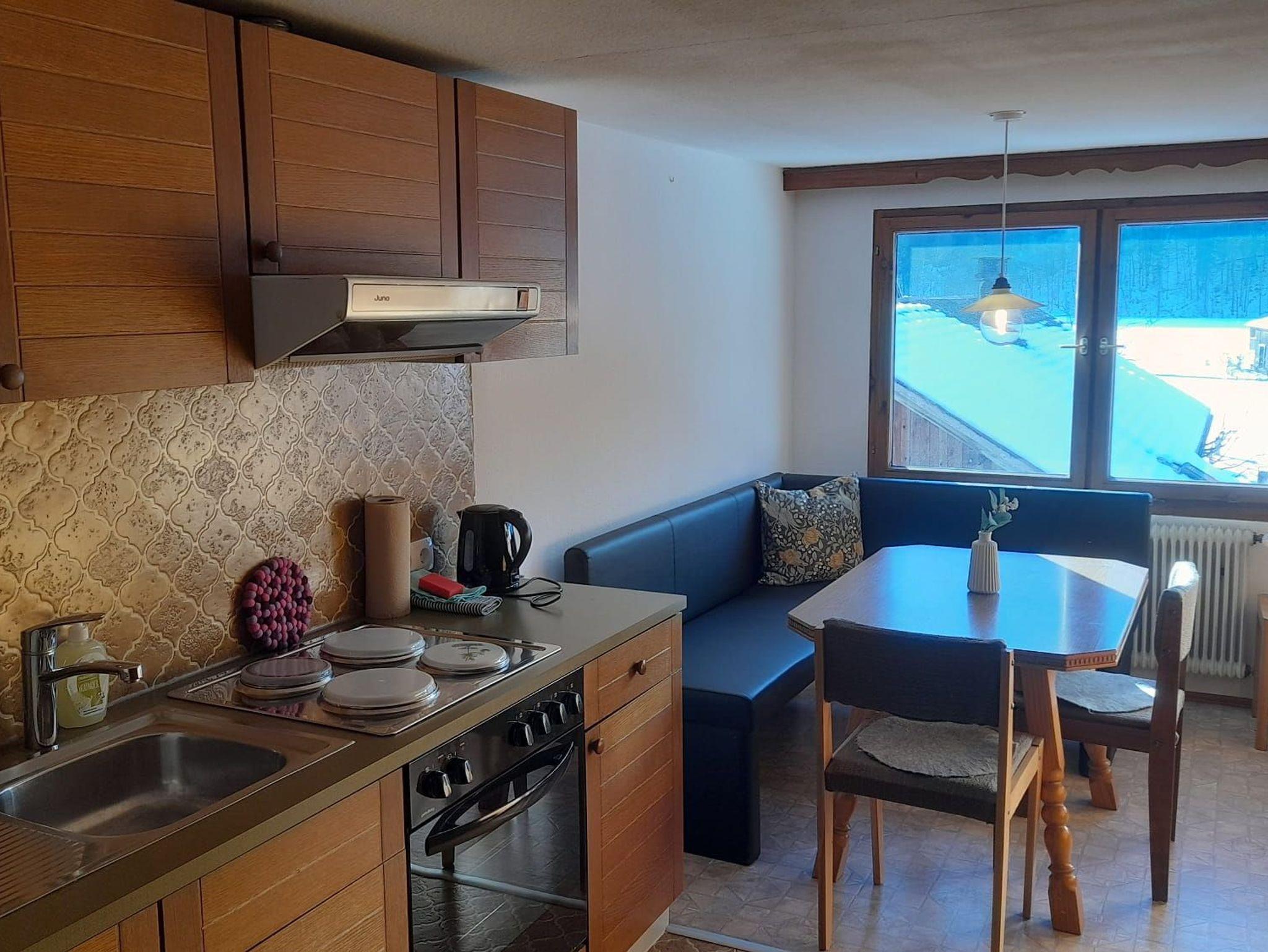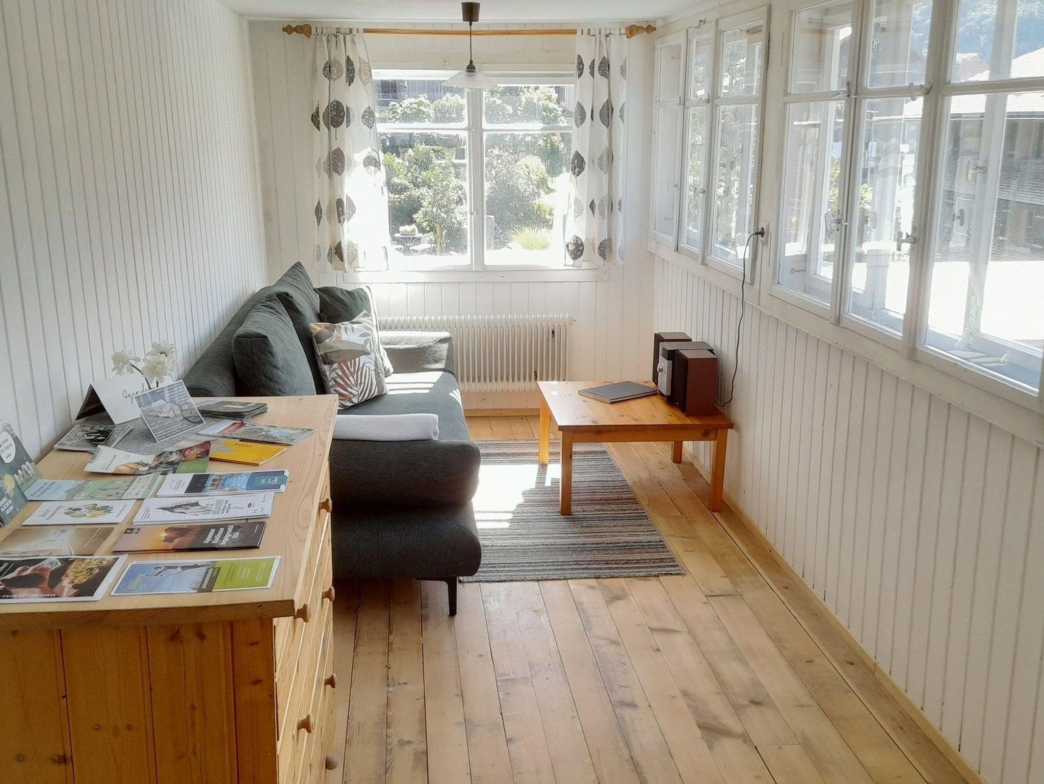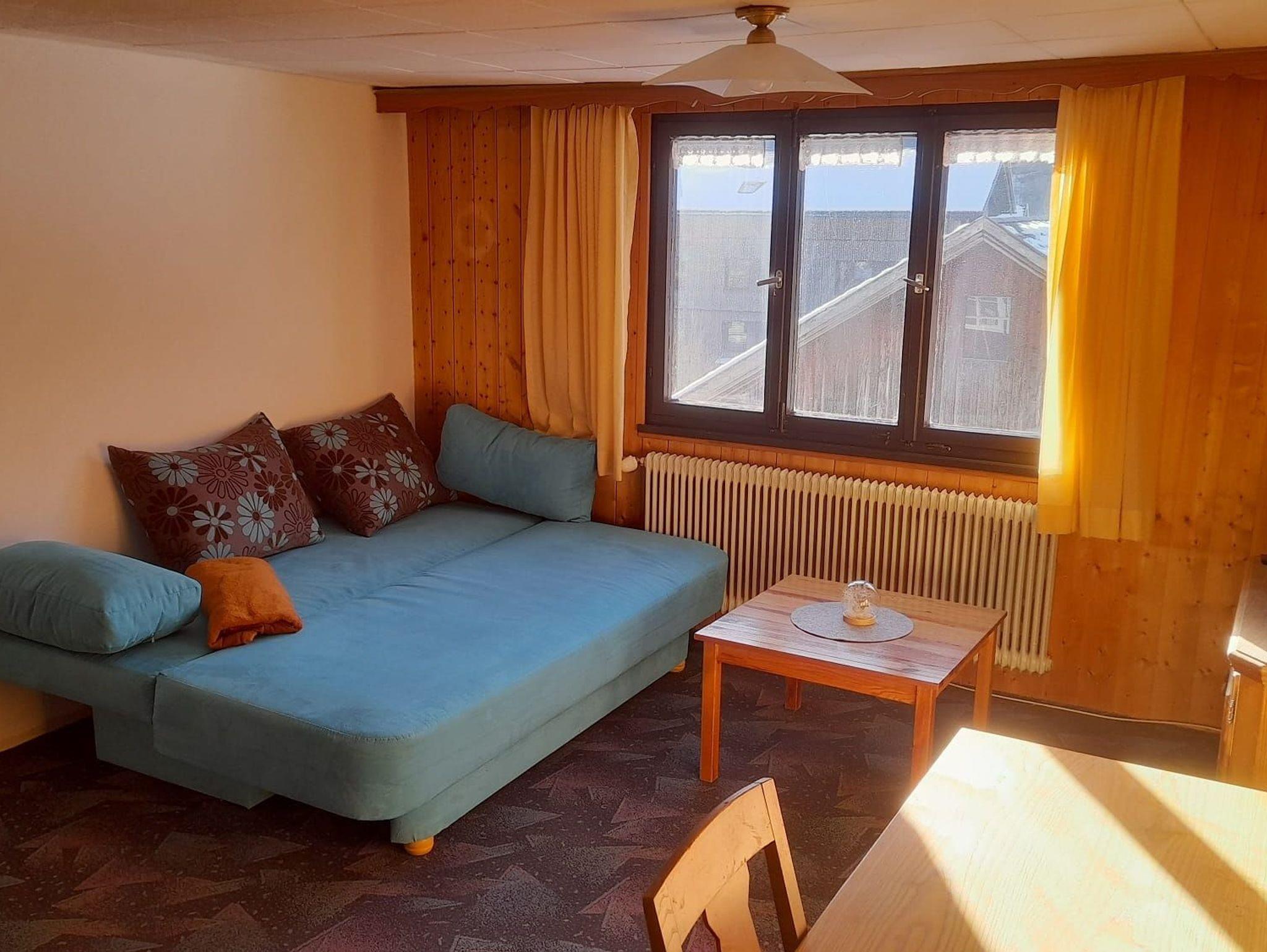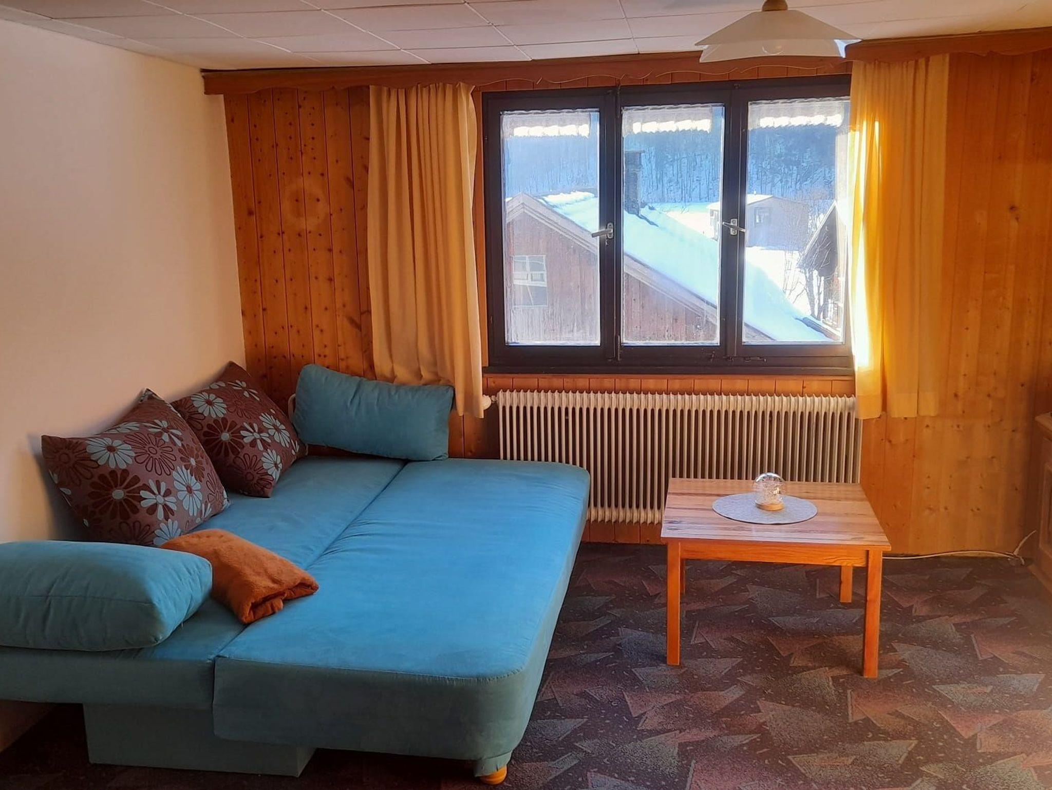 Unsere helle Ferienwohnung für 2 Personen ist südseitig gelegen, mit Blick auf die Kanisfluh. Die Wohnung ist mit eigener Küche und Esstisch, einem Aufenthaltsraum mit Couch, TV und Schreibtisch, sowie einem separaten WC, Badewanne und Dusche ausgestattet.