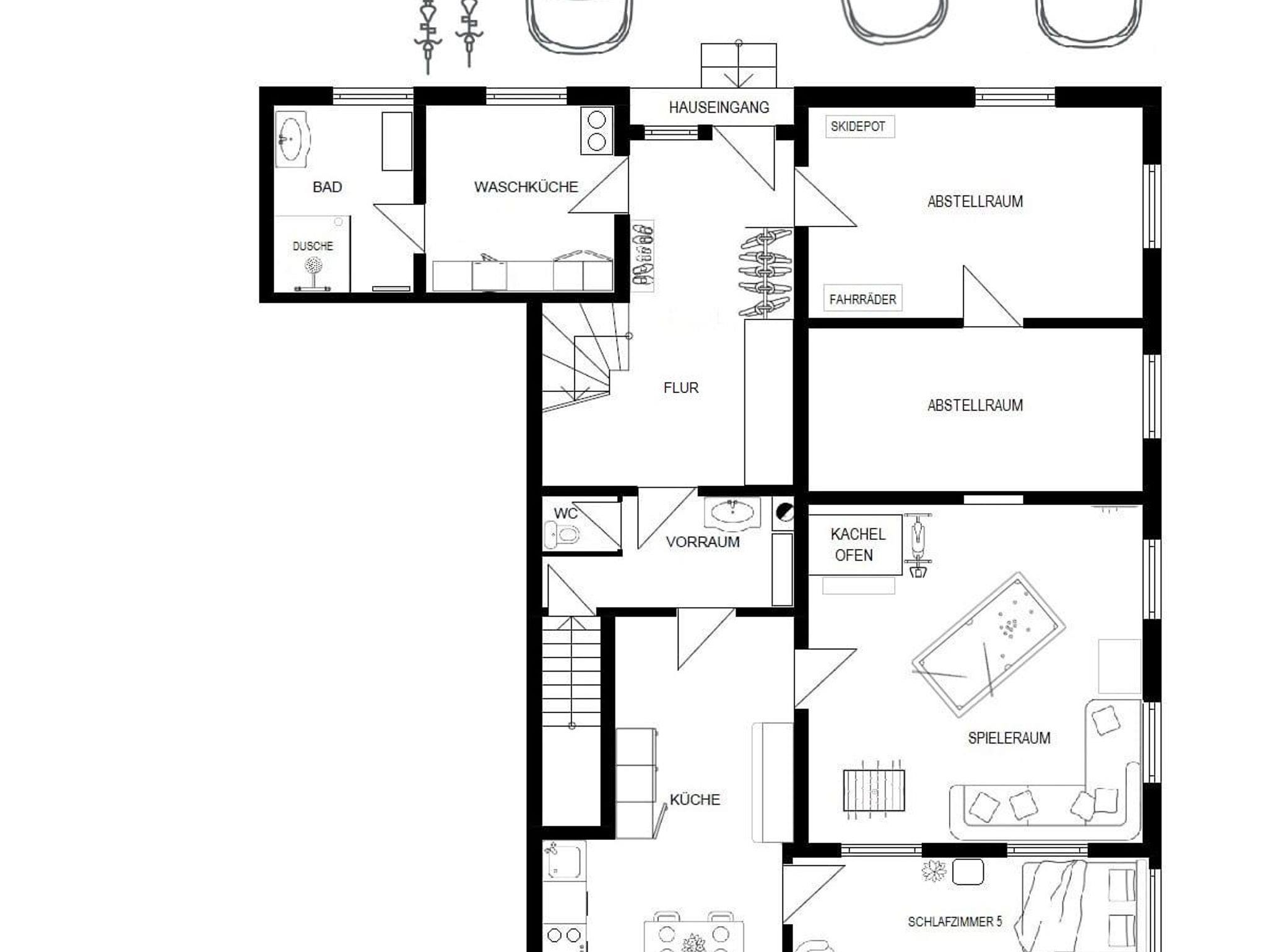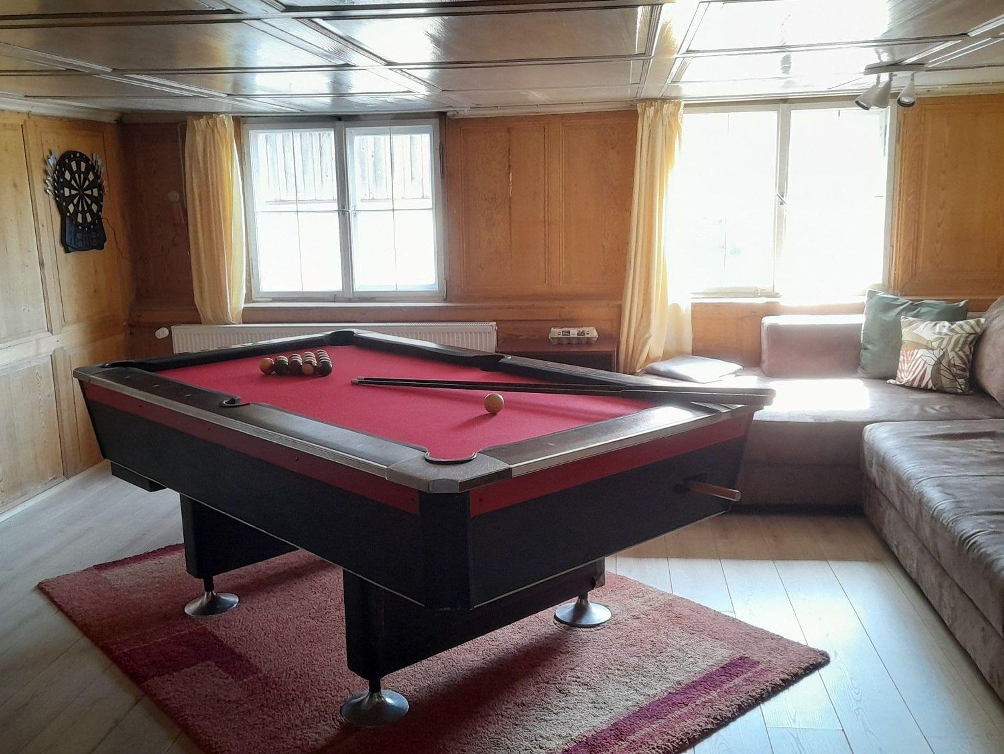 Im Erdgeschoss steht ein Spieleraum mit Billiardtisch, Tischfußball, Dart und Hometrainer für Spaß und Abwechslung zur Verfügung.