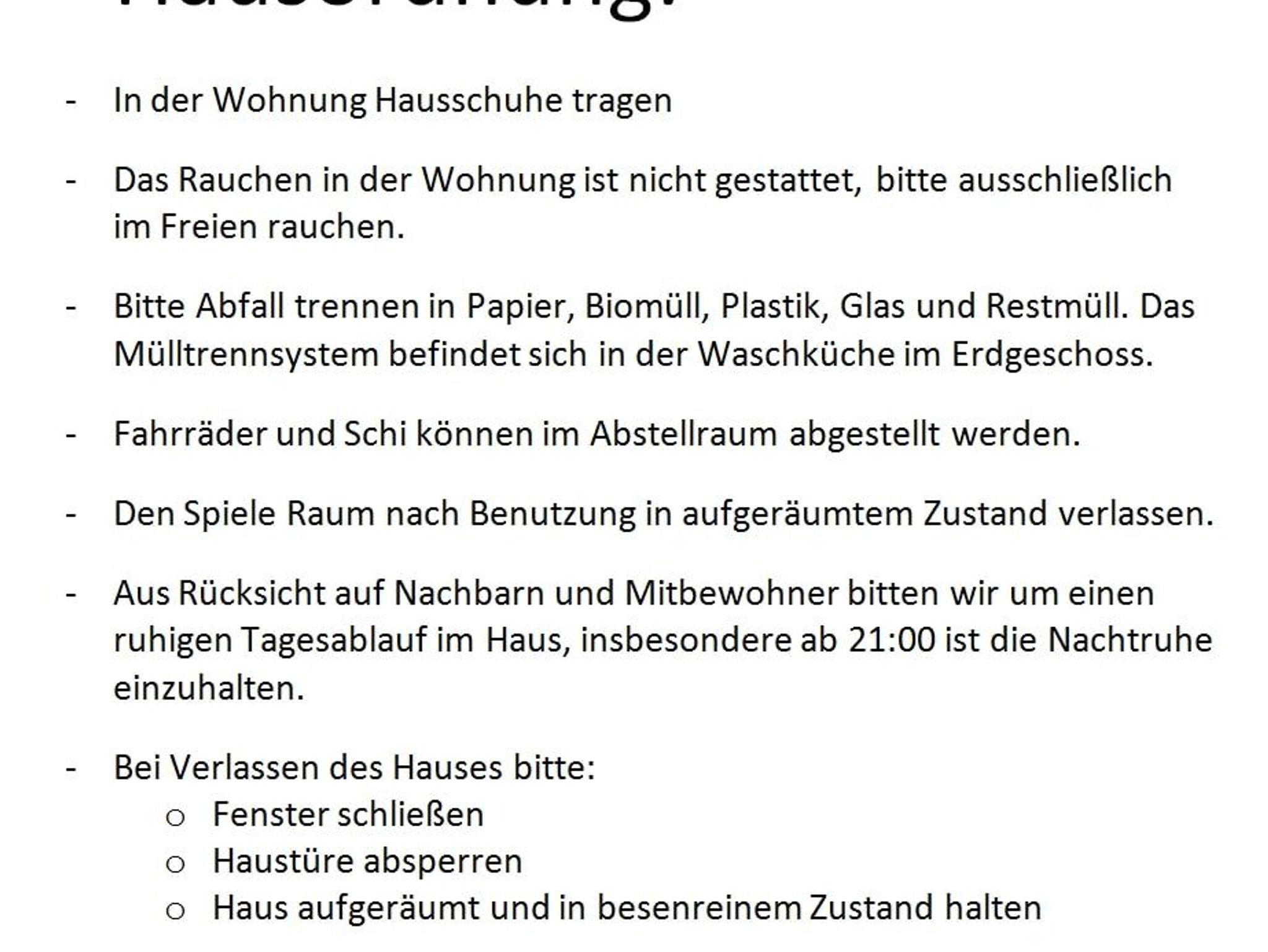 Für Fahrräder und Schi ist ein Raum zum Abstellen vorhanden. Die Bushaltestelle liegt in direkter Nähe (200m).