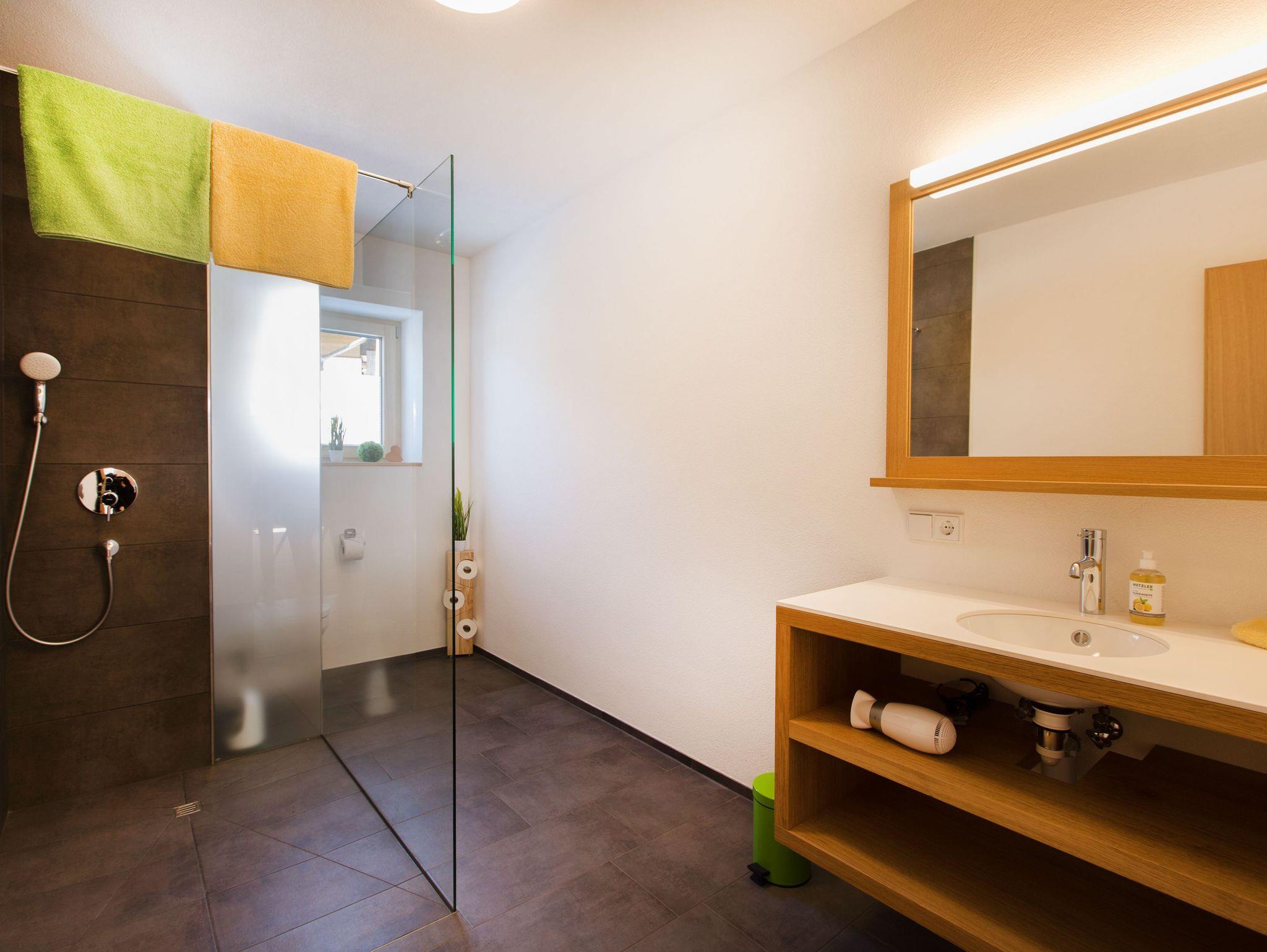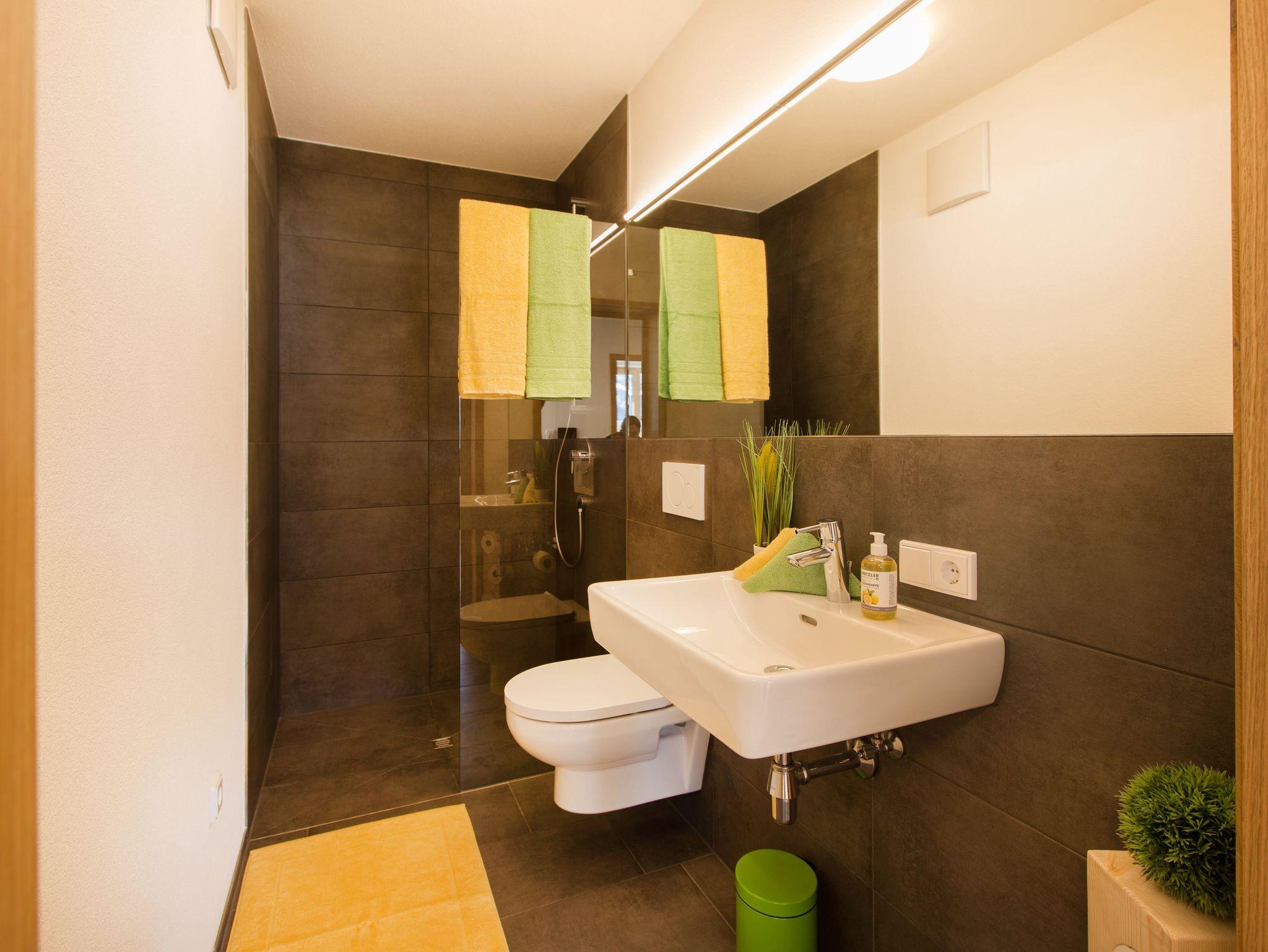 - 2 getrennte Schlafzimmer: Bettentyp Doppelbetten jeweils 2mx2m; (Fußende offen) - 2 getrennte Bäder mit jeweils einem WC, Waschbecken und barrierefreie, begehbare Duschen, Handtücher und Klopapier vorhanden - voll ausgestattete Küche mit offenem Wohnbereich (Filterkaffeemaschine, Nespresso Kapselmaschine, Wasserkocher, Toaster, Stabmixer, Backrohr, Geschirrspüler, Kühlschrank mit Gefrierfach), Geschirrtücher vorhanden, Spülmaschinentabs und Handspülmittel vorhanden - Terrasse mit traumhaftem Ausblick (Sonnenschirm und Gartenmöbel vorhanden) - Carport - Wohnung nach dem Haupteingang über wenige Stufen (Treppe) erreichbar - Mülltrennsystem