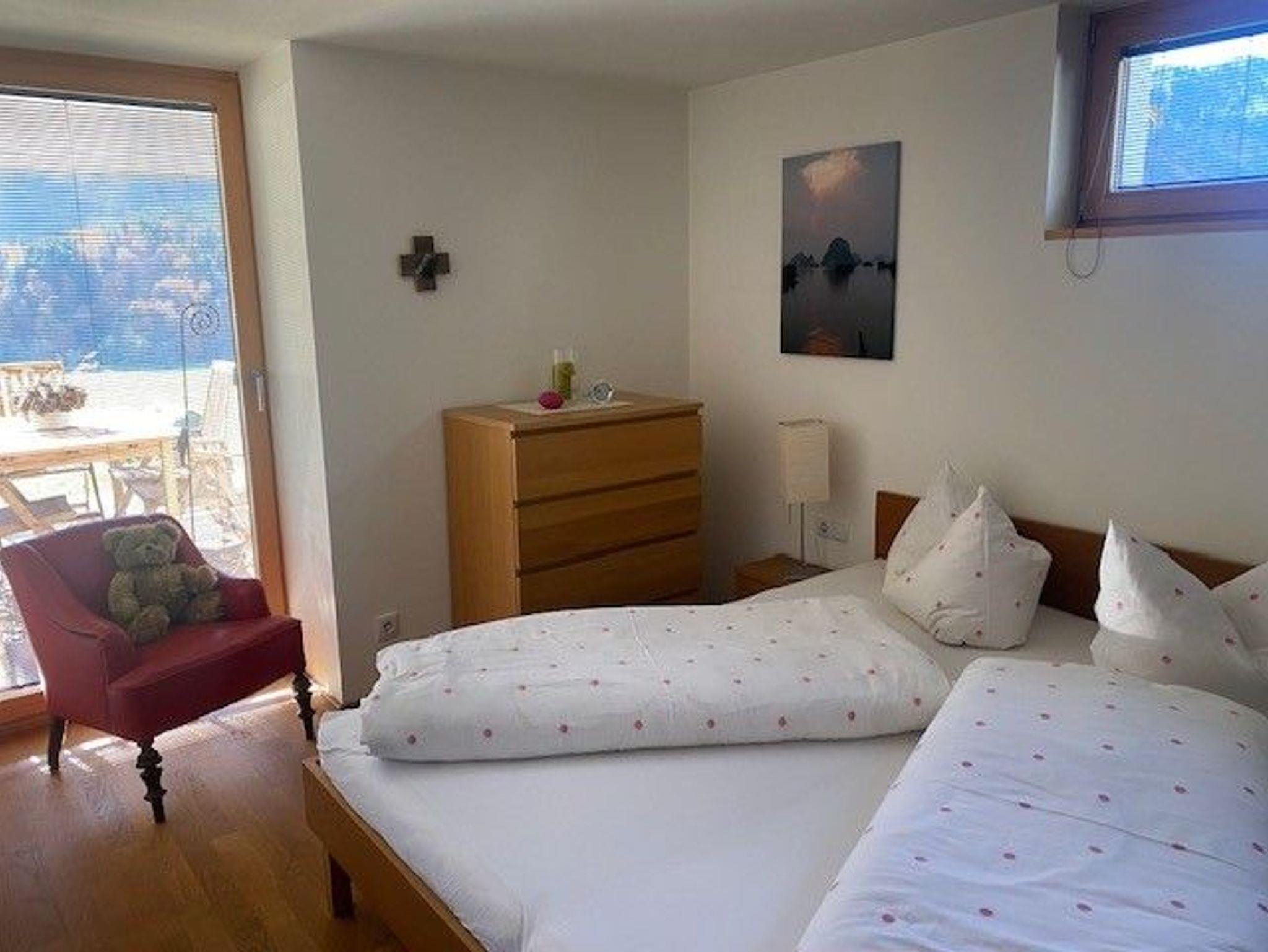 Stilvoll eingerichtete 2- Zimmer Wohnung mit Badezimmer. Großzügiges Wohnzimmer mit Kochzeile und großem Esstisch, Couch und TV. Ein Schlafzimmer mit Doppelbett und optional mit Baby-Reisebett, inkl. Tisch mit Wickelauflage. Im modernen Badezimmer befindet sich eine Badewanne/Dusche und das auch Glastüre abgetrennte WC. Es gibt einen kleinen Abstellraum und die Möglichkeit den Schikeller mit zu nutzen. Sonnige überdachte Terrasse mit Gartenmöbel gehören zu Wohnung.