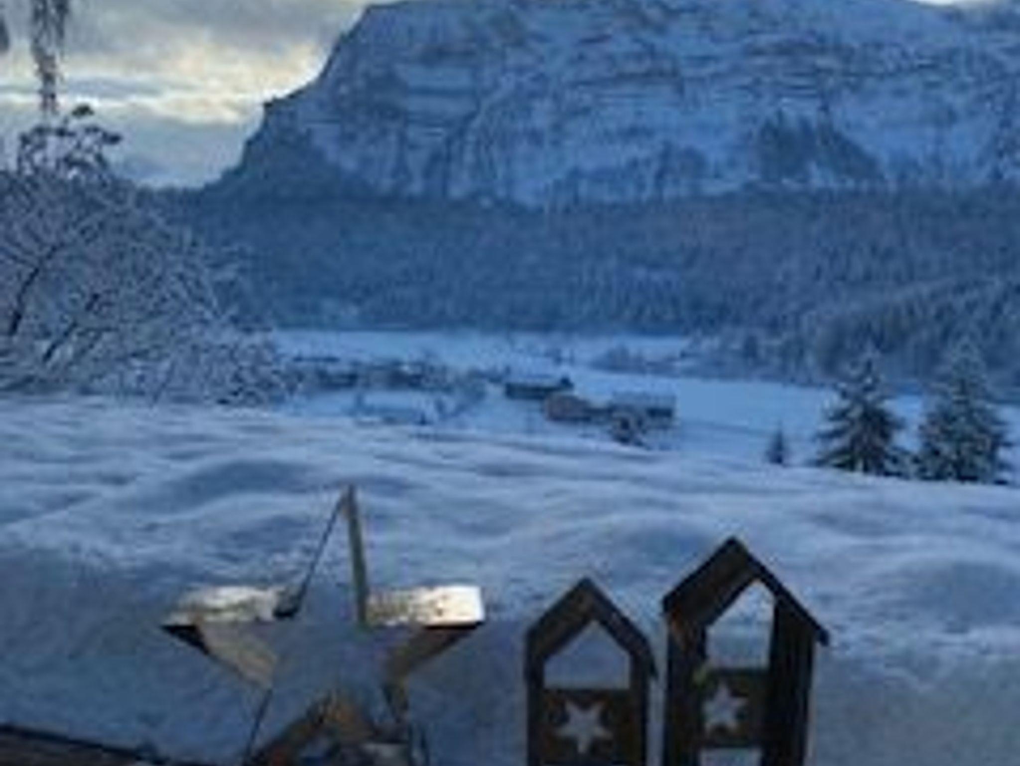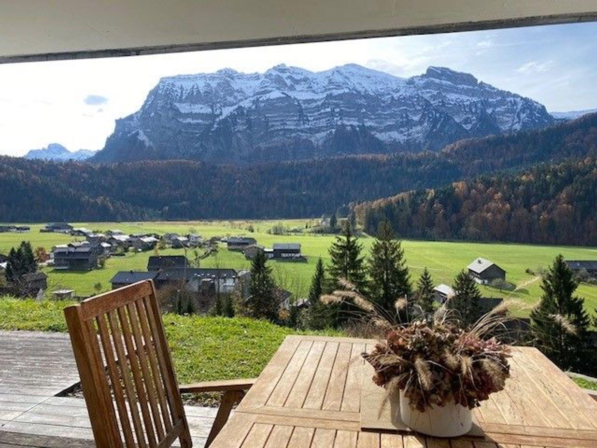 Unsere stilvolle Ferienwohnung in sonniger Hanglage ist der perfekte Ort für alle, die Erholung inmitten der Natur suchen. Genießen Sie den freien Blick über Bizau und auf die beeindruckende Kanisfluh.