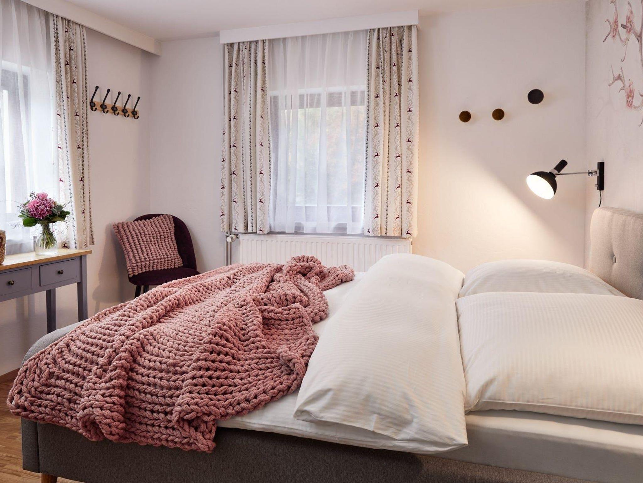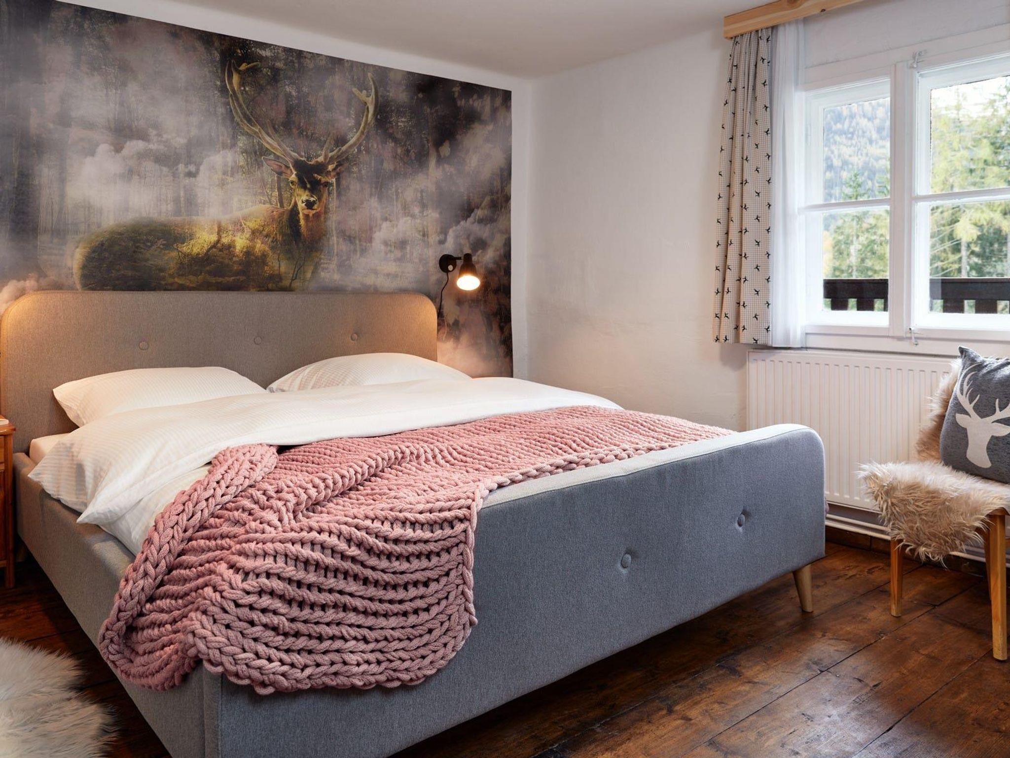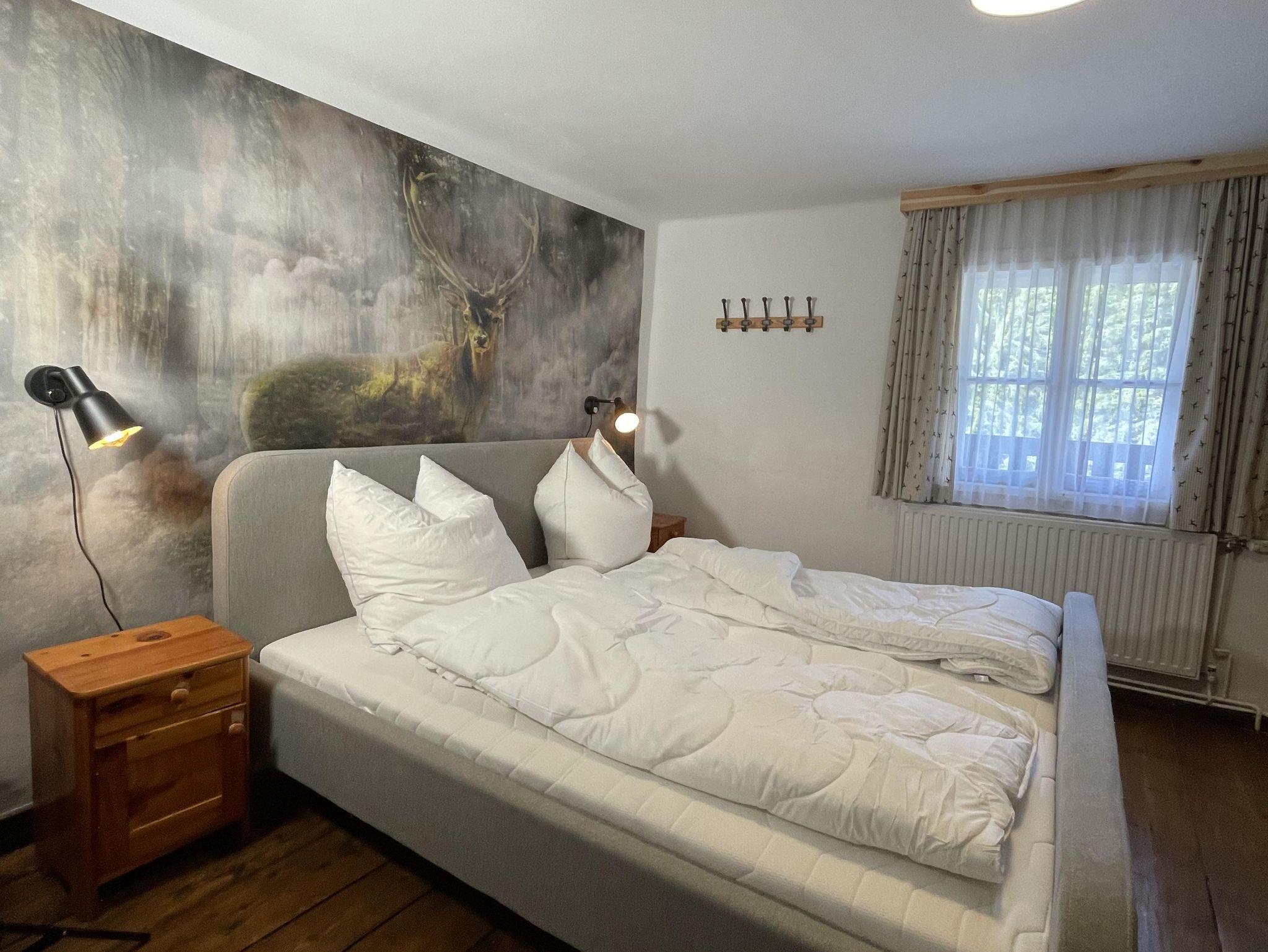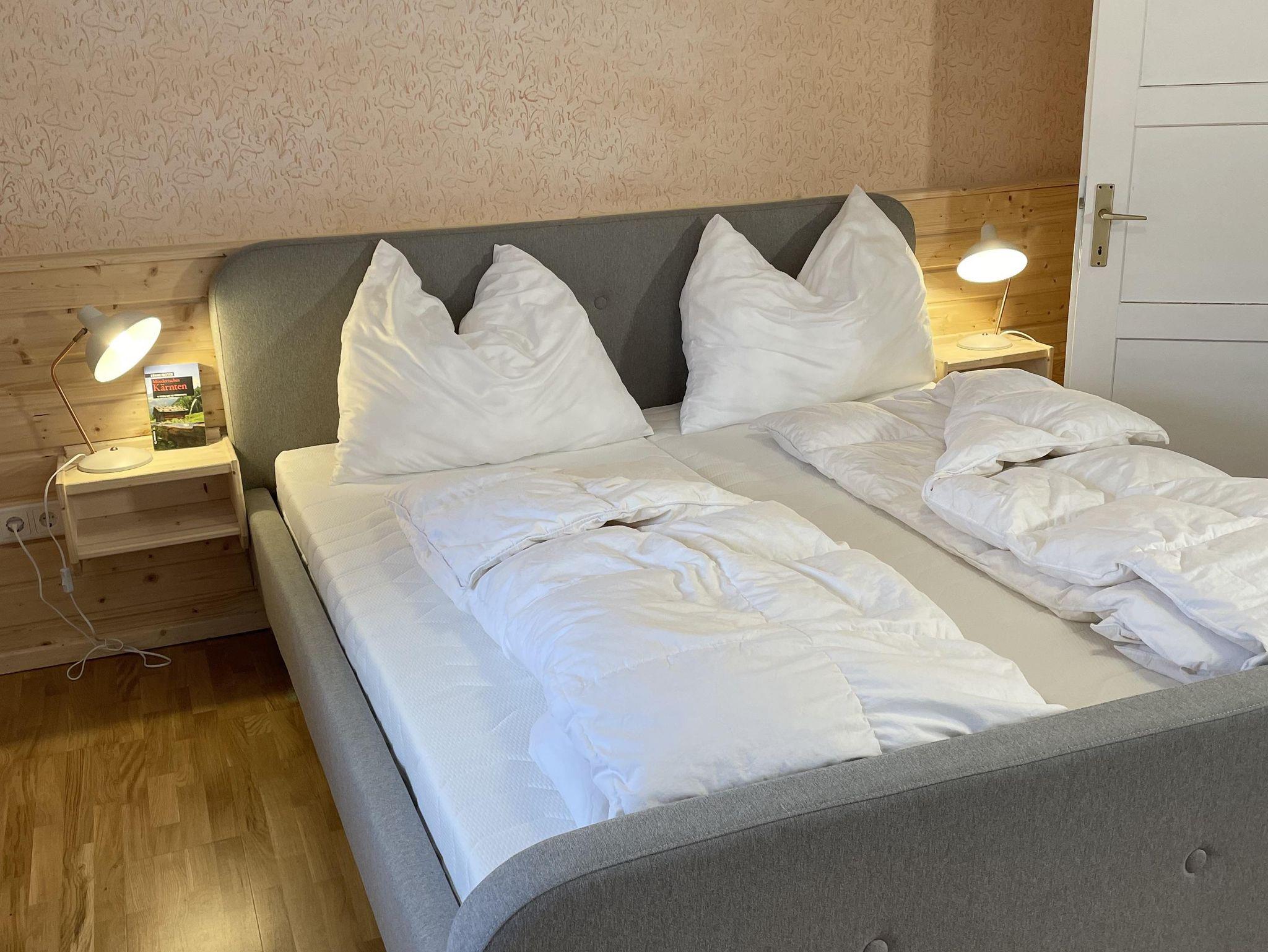4 Schlafzimmer mit Doppelbett, 3 davon im Obergeschoss, 1 im Erdgeschoss.