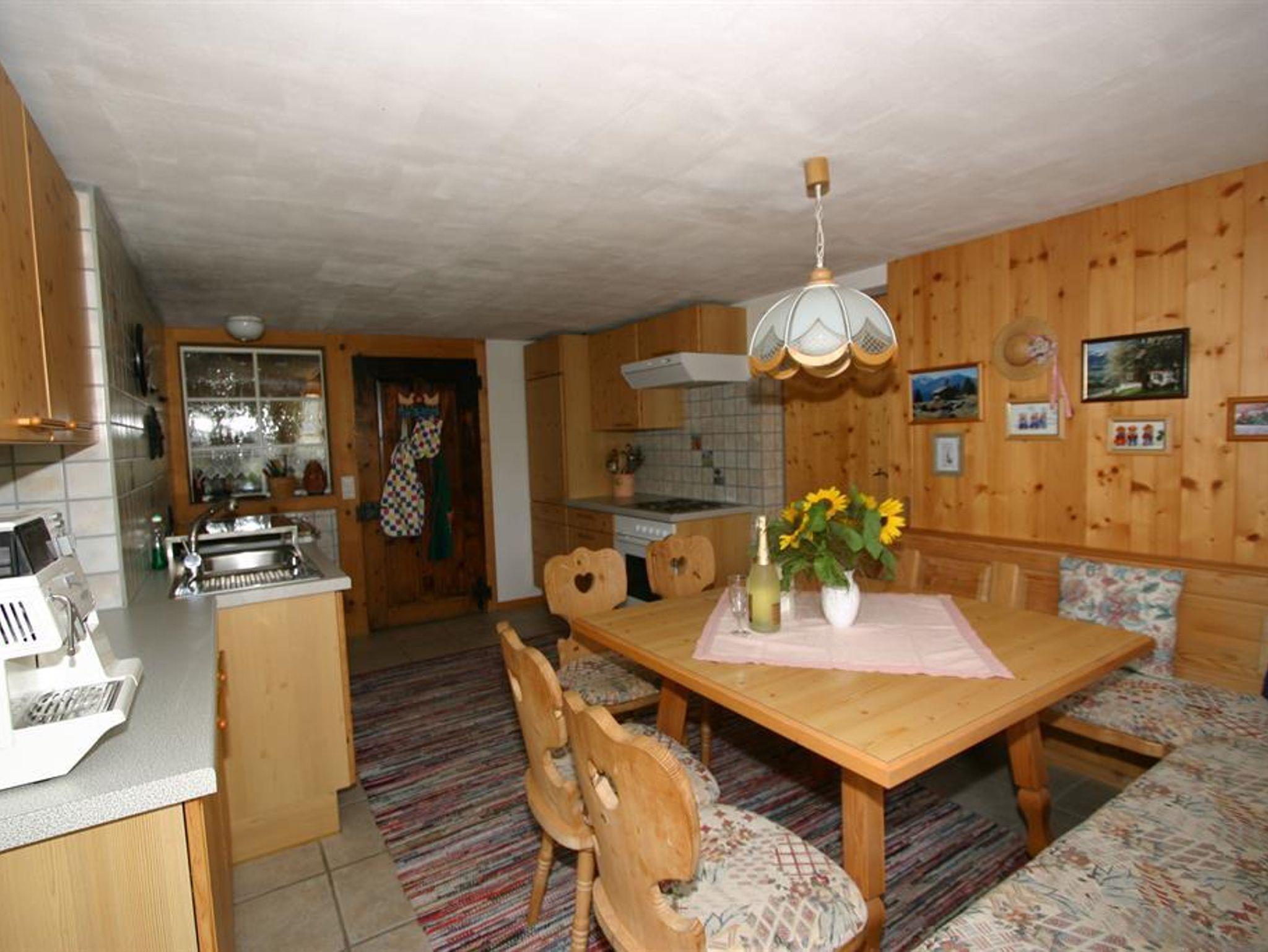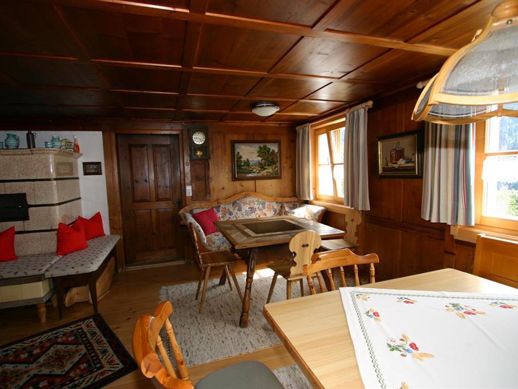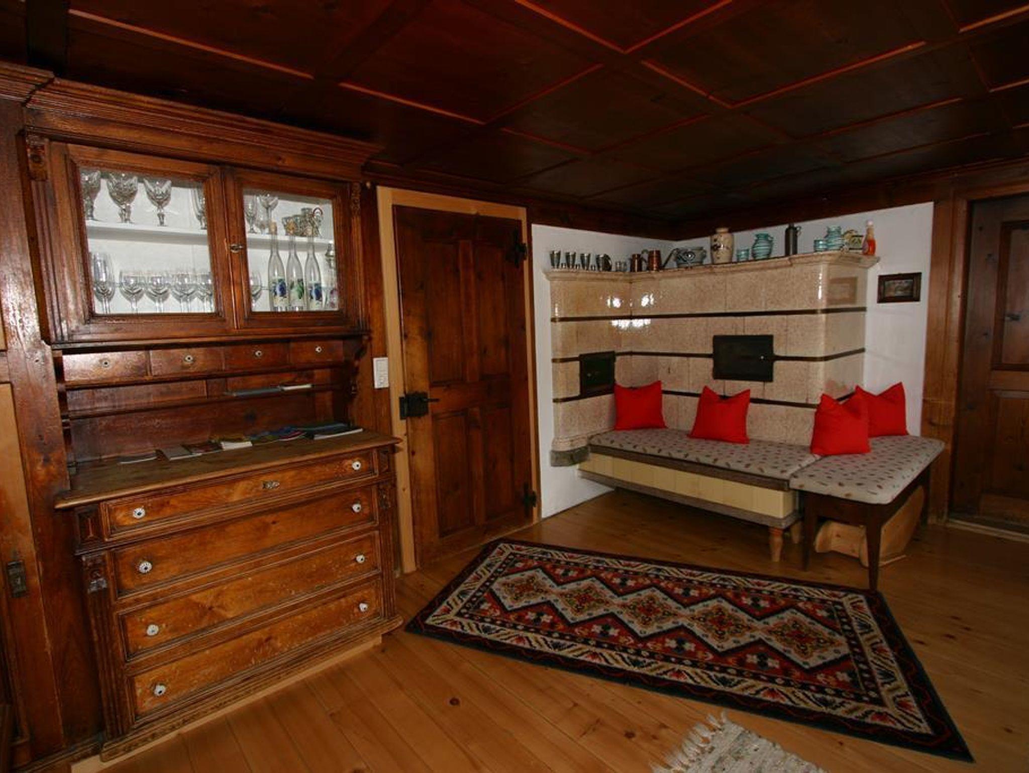 Das Ferienhaus Sücka biete eine Wohnfläche von 130m² und teilt sich in eine großzügige Küche mit Essbereich, ein Wohnzimmer mit Kachelofen, sowie einem Vorratsraum und Gangbereich.