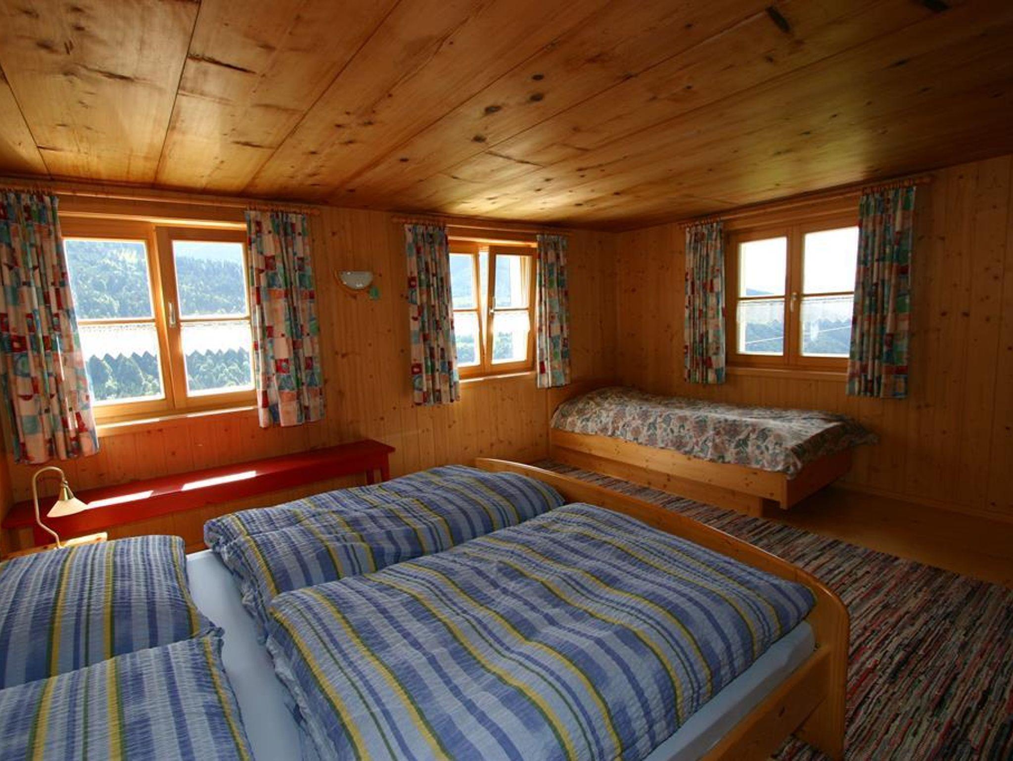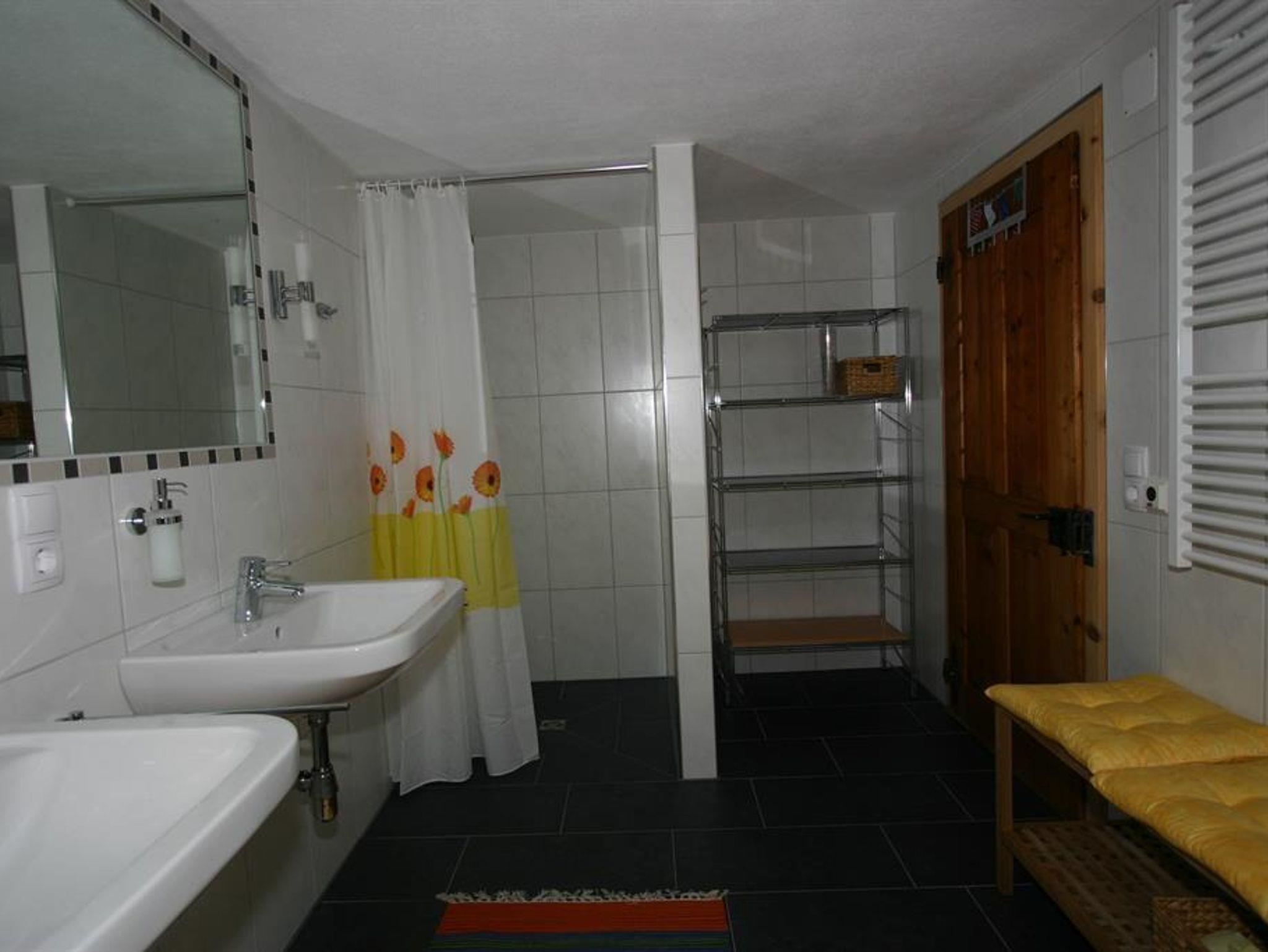 Die zwei Stockwerke bieten des Weiteren zwei Zweibettzimmer sowie zwei Dreibettzimmer. Im Erdgeschoss befindet sich ein Badezimmer mit Dusche und WC sowie Waschbecken. Ein weiteres Bad mit Dusche, Waschbecken und WC finden Sie im Obergeschoss.