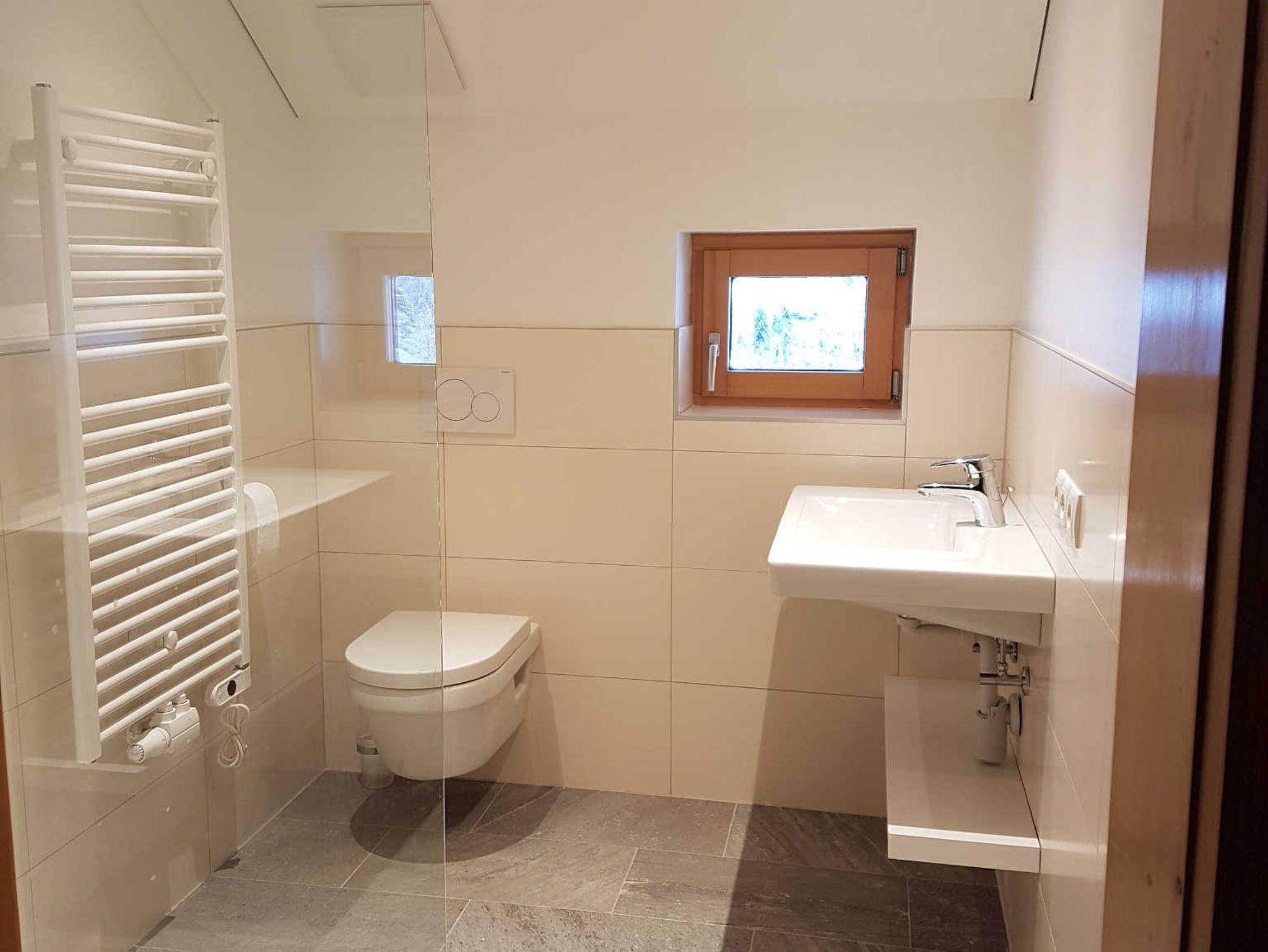 Das neu sanierte Badezimmer verfügt über eine Dusche und WC.
