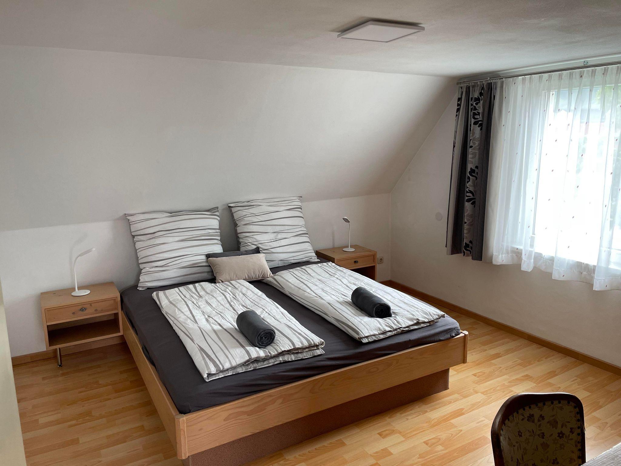 - Ein Schlafzimmer mit einem gemütlichen Doppelbett