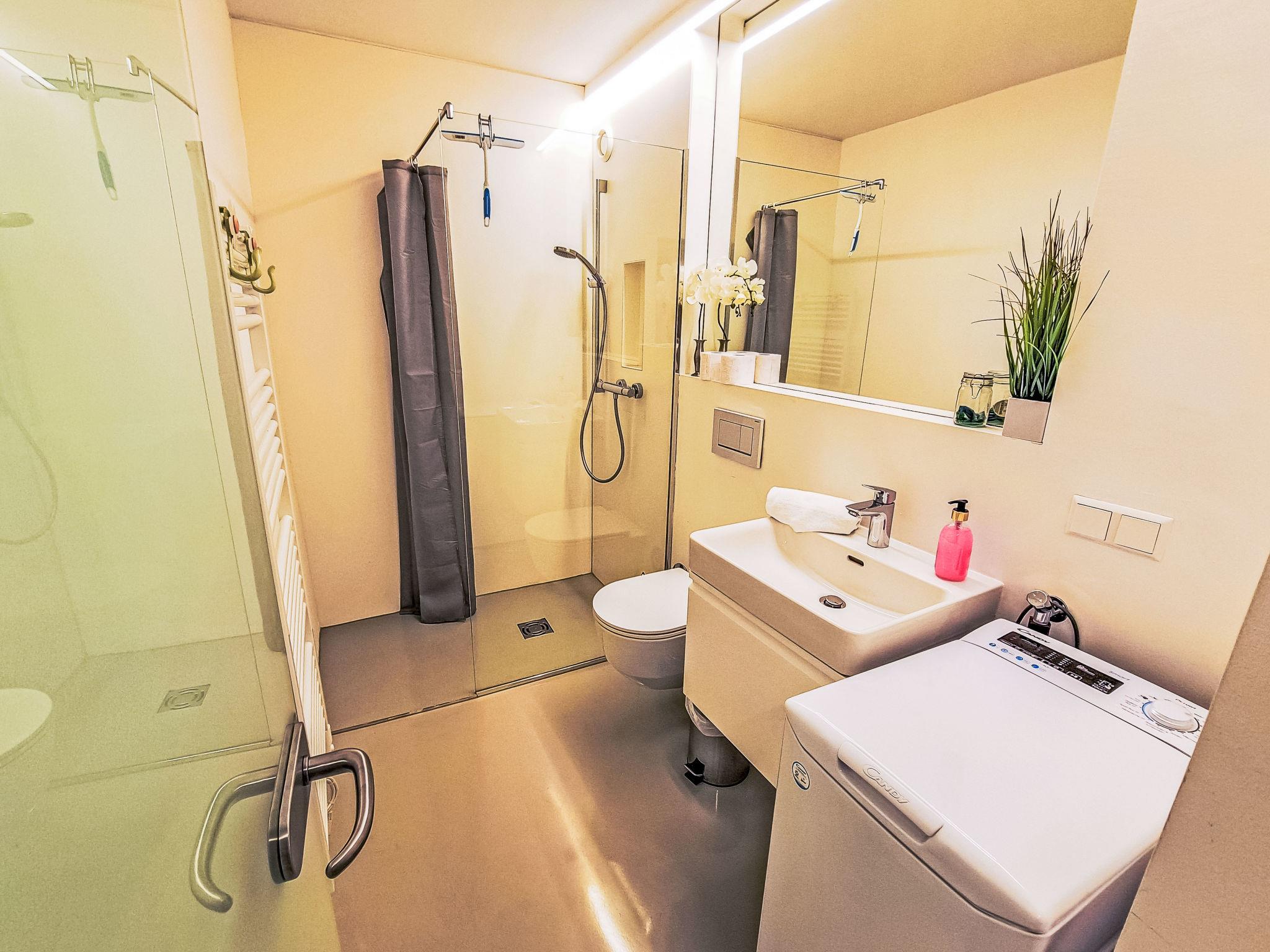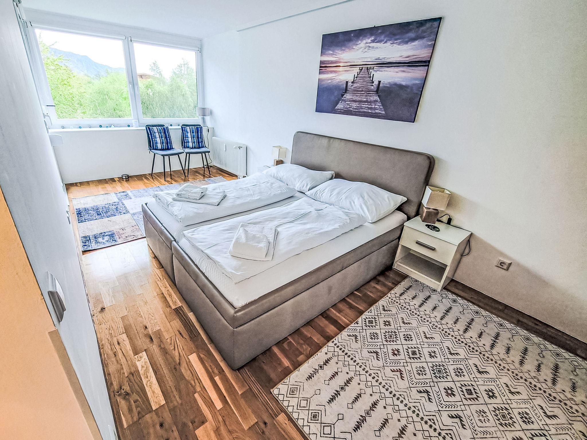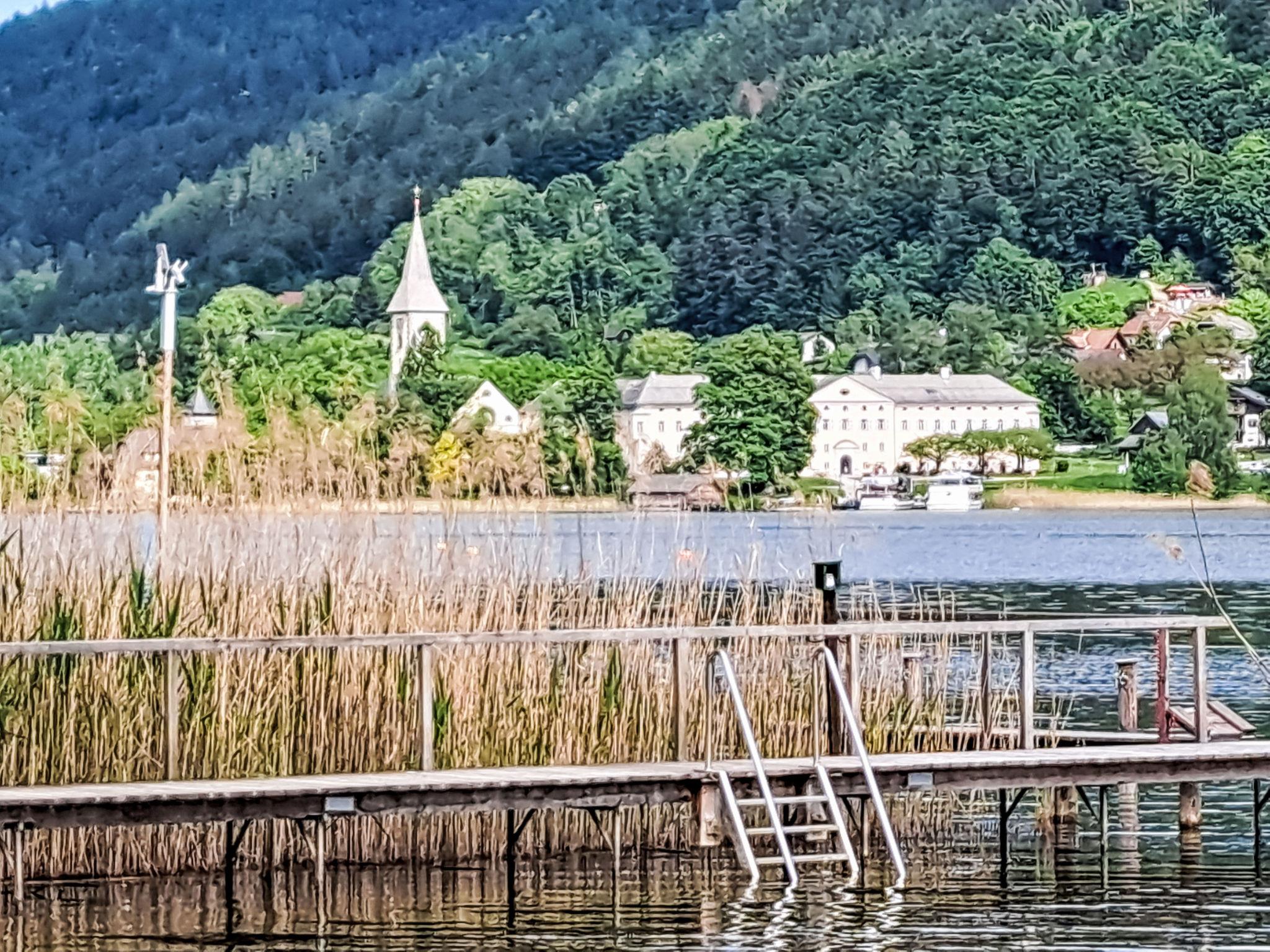 "Seezugang & Ski Ossiacher See", 2-room apartment 52 m2 on 2nd floor. Bright, fully renovated, very comfortable and modern furnishings: entrance hall. 1 room with 1 double bed. Exit to the balcony. Living/dining room with 1 double sofabed, dining table and satellite TV (flat screen). Exit to the balcony. Kitchen (oven, dishwasher, 4 ceramic glass hob hotplates, toaster, kettle, microwave, electric coffee machine). Shower/WC. Heating. Large balcony 10 m2. Balcony furniture, deck chairs (2). Very beautiful panoramic view of the lake. Facilities: iron, mosquito net, baby cot for up to 2 year olds, hair dryer. Internet (WiFi, free). Parking at the house. Please note: non-smokers only.