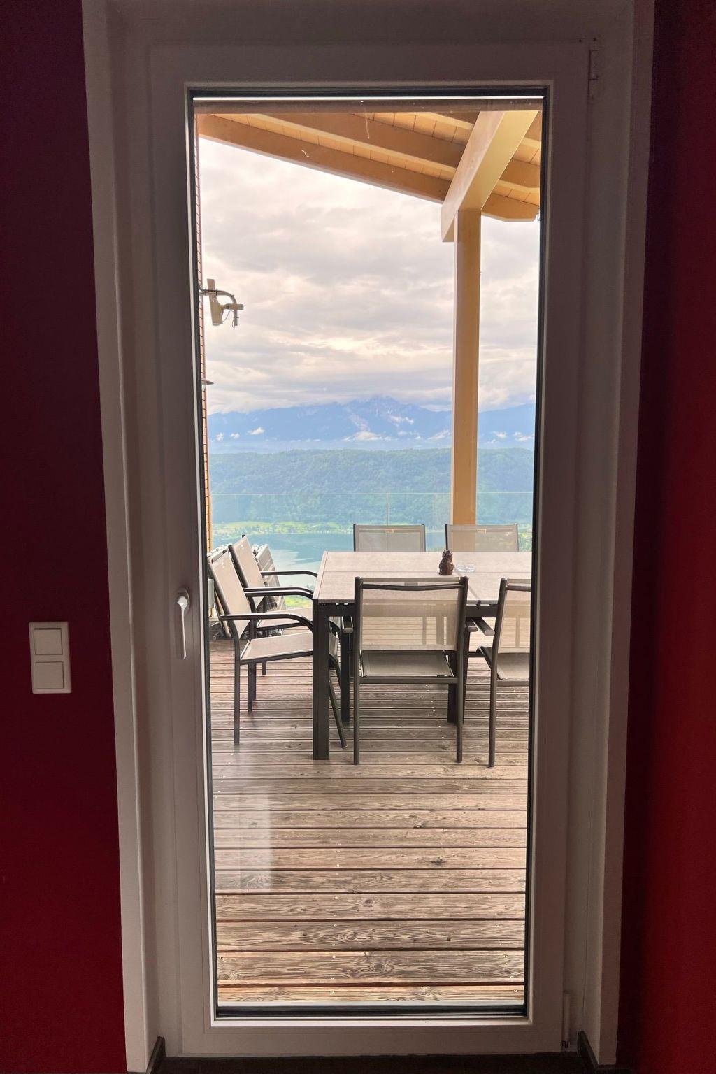 The generous garden provides garden furniture and play equipment and is for shared use with a further apartment. You can relax here, read a good book or spend leisurely evenings with friends and family. Three car parking spaces are available. The big balcony provides a dining table, chairs and a grill. There is also a further balcony. The location of the apartment and the balconies affords a breathtaking view of the mountains and Ossiacher See. Whether in spring, summer, autumn or winter – this view of nature has a special charm in any season.
