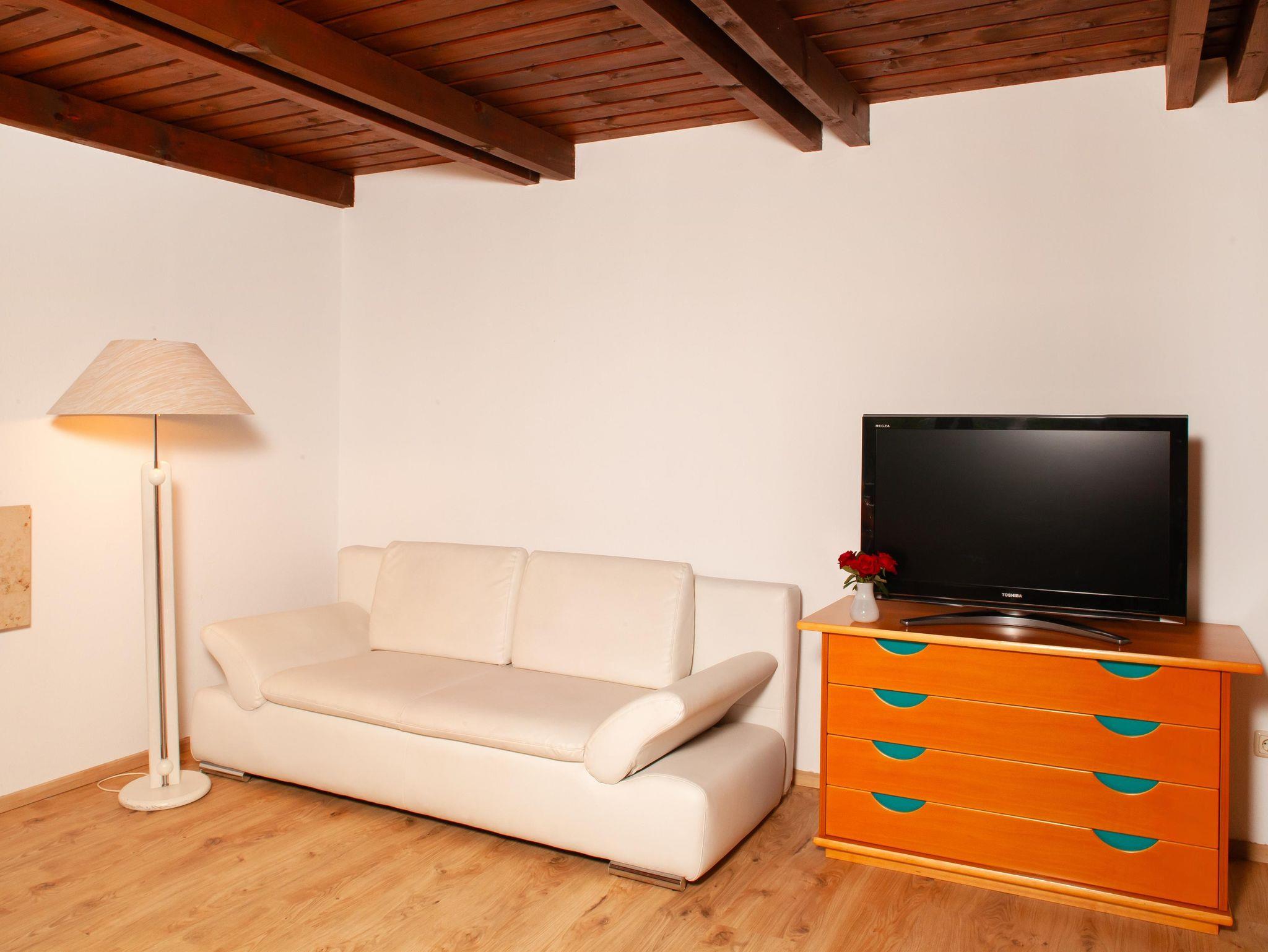 Große Ferienwohnung (90 m²) im 1. Stockwerk mit großem südseitig gelegenen Balkon,für max. 7 Personen. Wohnraum + drei getrennte Schlafräume, zwei Bäder mit Dusche/WC,