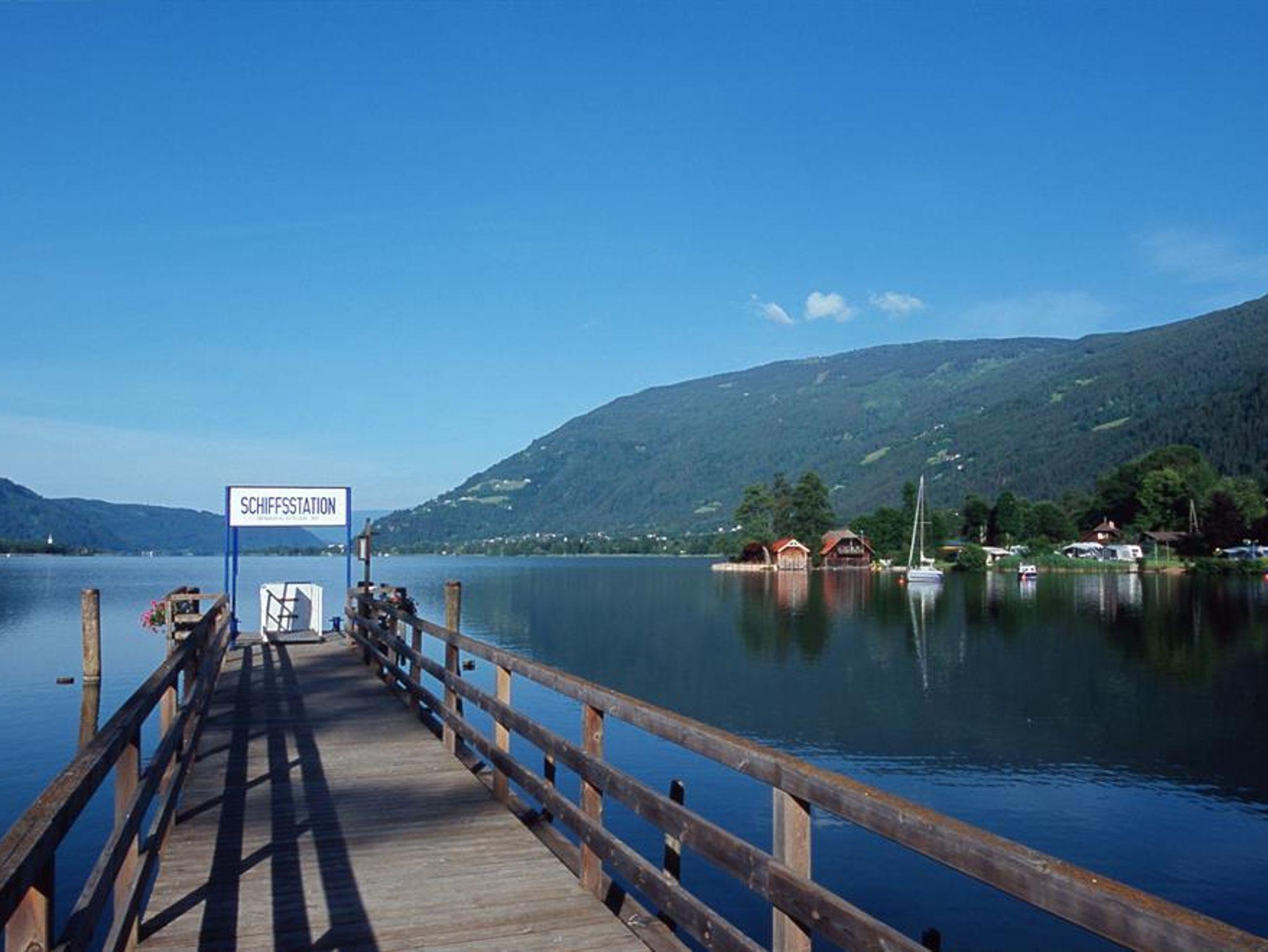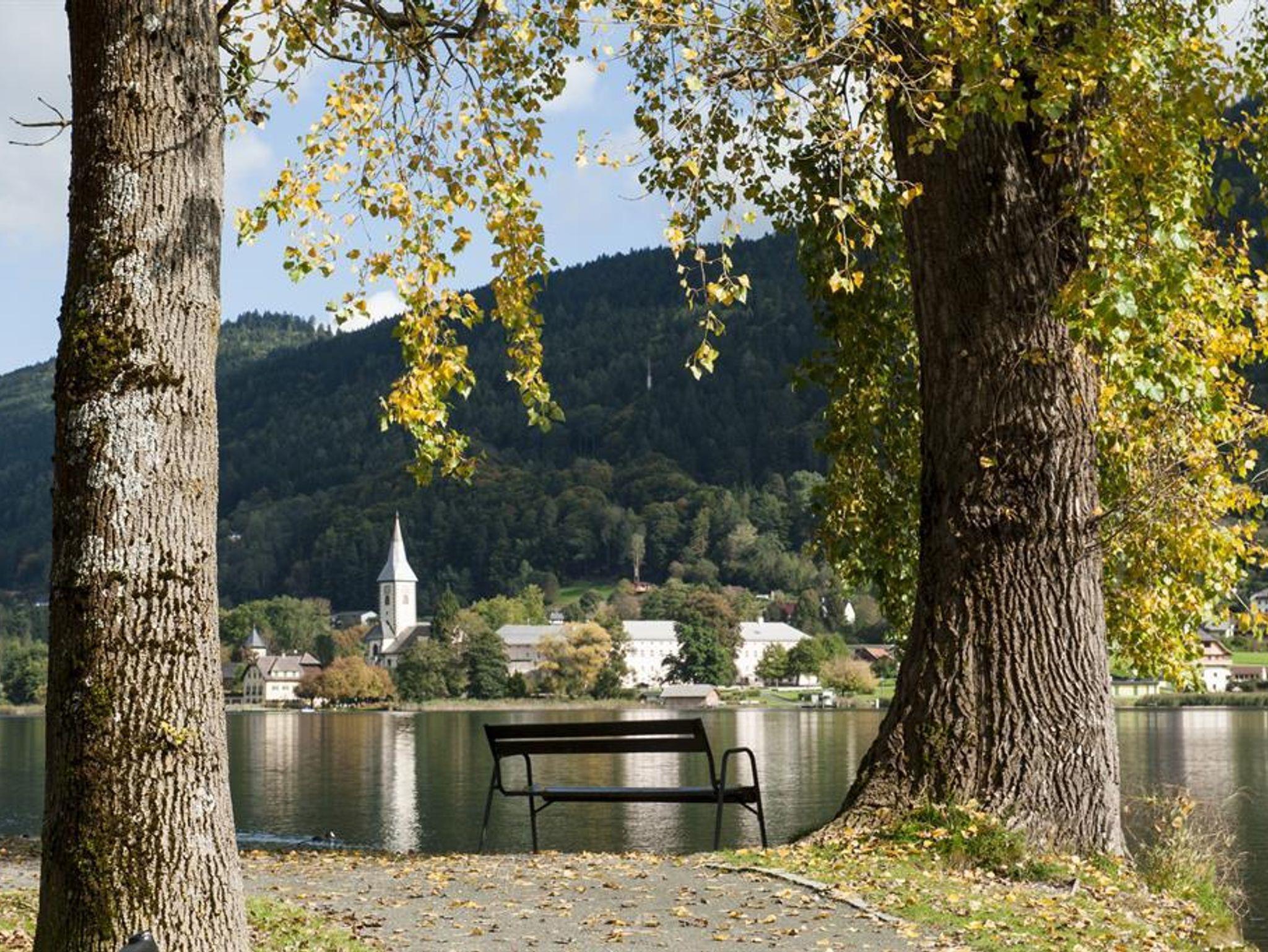5 bis 10 Gehminuten zum See, kostenlose Strand- und Kabinenbenützung im Strandbad Bodensdorf.