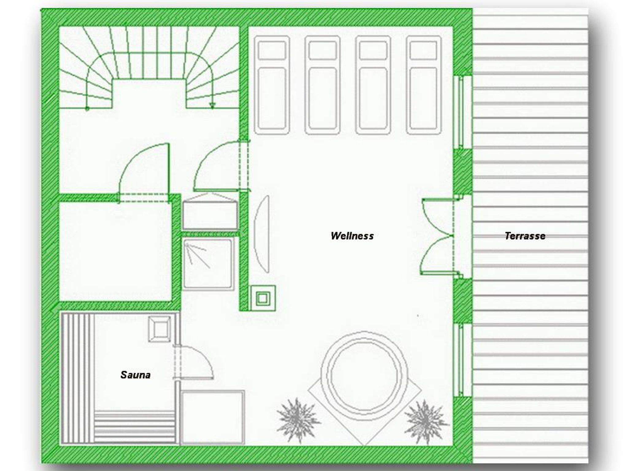 Im Untergeschoss: Sauna (Finnisch, Dampf & Aroma), Physiotherm-Infrarotkabine mit Farblicht und CD-Player, Doppelbadewanne, Dusche, großzügiger Ruheraum mit LCD - DVD Flachbildfernseher samt Relaxliegen, Kinderspielplatz im Vorraum und eine große Aussichtsterrasse mit Gartengriller.
