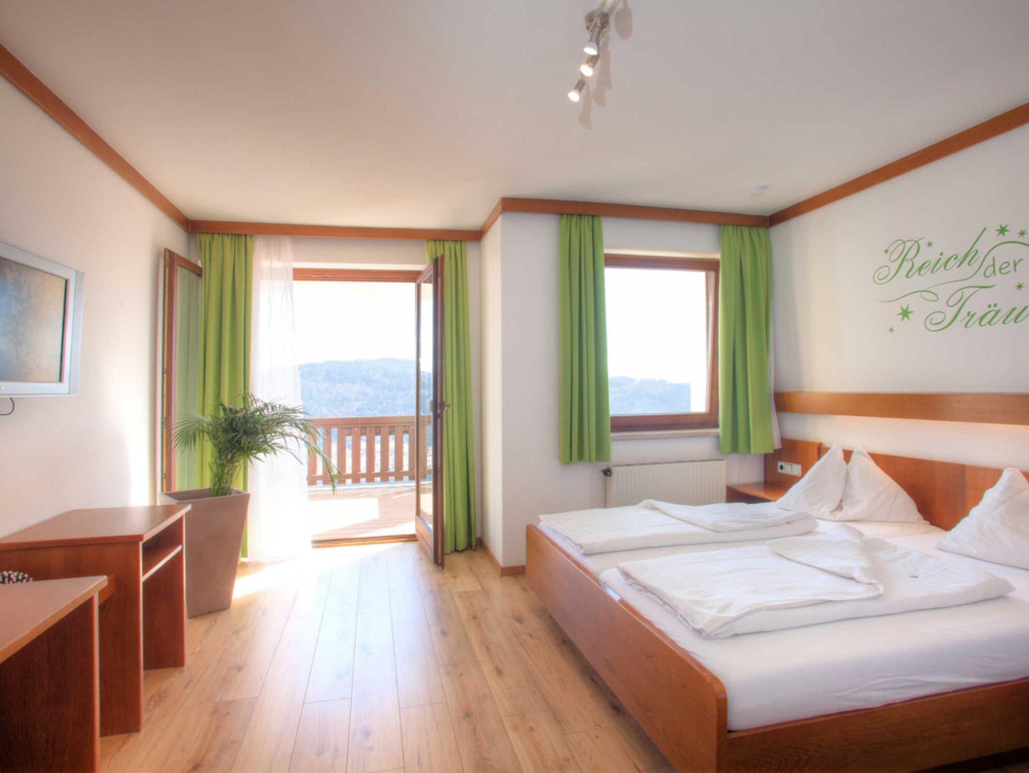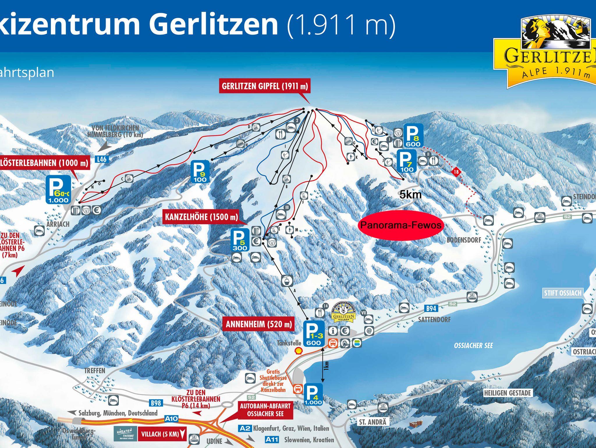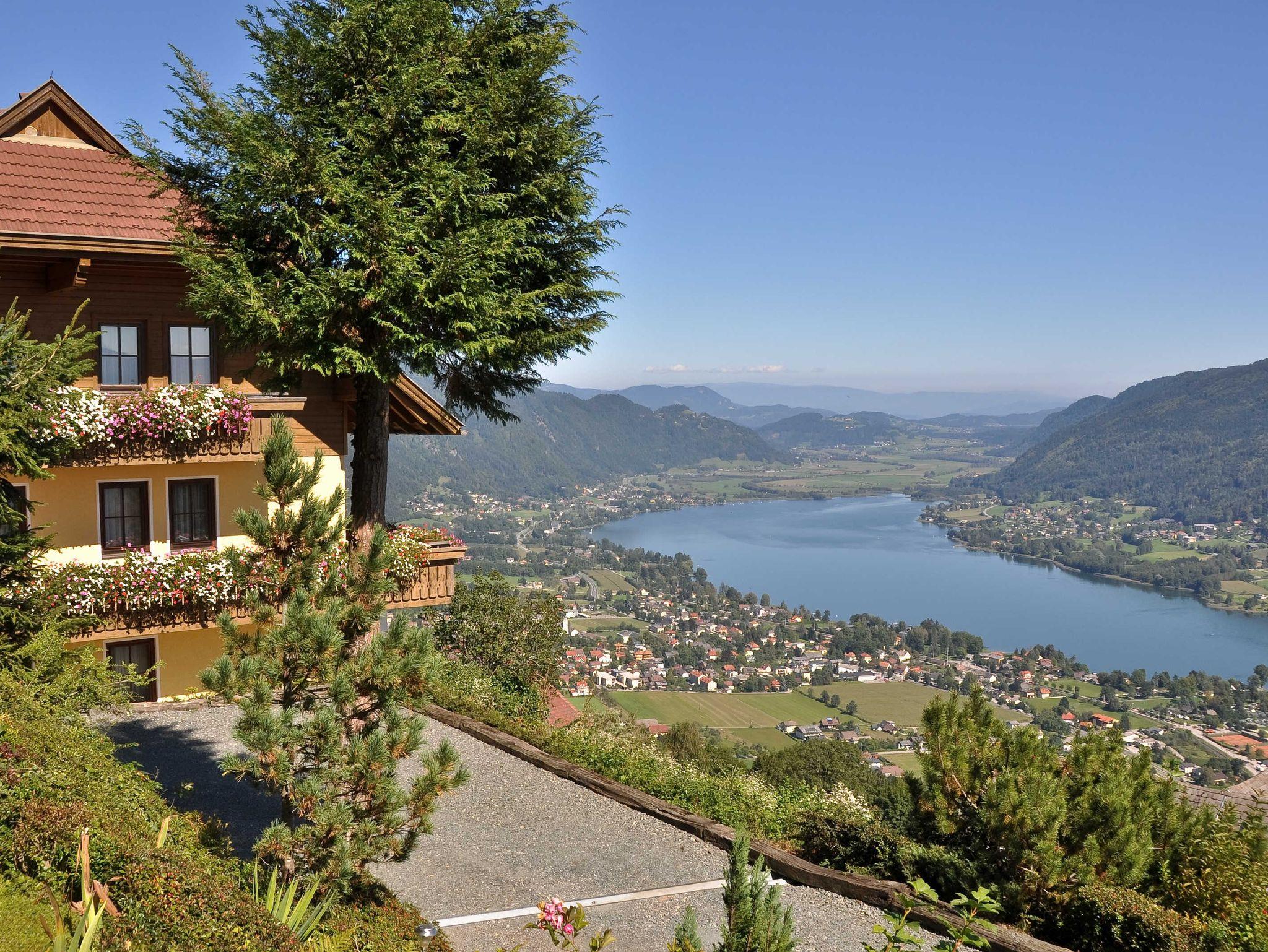 An einem der schönsten Panorama-Plätze im ganzen Alpenraum finden Sie ein liebevoll, neu-renoviertes Gästehaus mit 5 großzügig ausgestattenen Ferienwohnungen. Die Aussicht auf den 300 Höhenmeter unter Ihnen liegenden Ossiacher See, die umliegende Bergwelt der Karawanken und das Kärntner Unterland sind von atemberaubender Schönheit! - Über der Nebelgrenze werden Sie im Frühling, Herbst und Winter bereits von den Sonnenstrahlen liebevoll geweckt, während der Rest des Tales noch im grauen Nebel sitzt! - während der Sommermonate wärmen die mediterranen Temperaturen nicht nur Ihr Gemüt, auch der Ossiacher See erreicht bis zu 26 Grad und läd zum Baden und Wassersport ein... und das bei Trinkwasserqualität!! Lassen Sie sich nach einem Sommergewitter nachmittags mit einem Regenbogen überraschen, der das ganze Tal überspannt... Im Winter befinden Sie sich fast direkt in der Skiregion Gerlitzen Alpe, welche zu den größten und modernsten in ganz Kärnten zählt! Der hauseigene Kleinbus-Shuttle bringt Sie bequem, stressfrei und kostenlos direkt zum ersten Skilift!