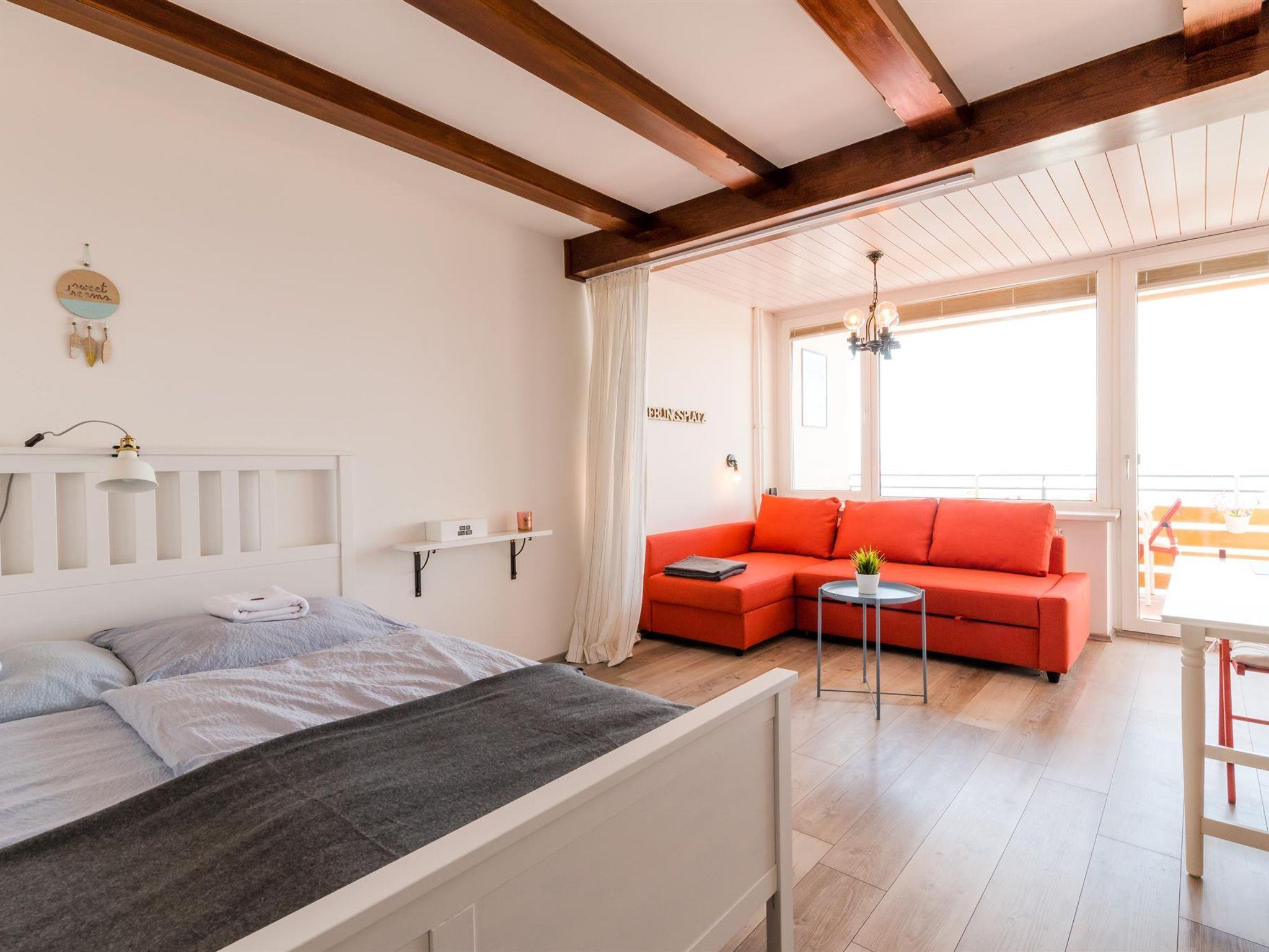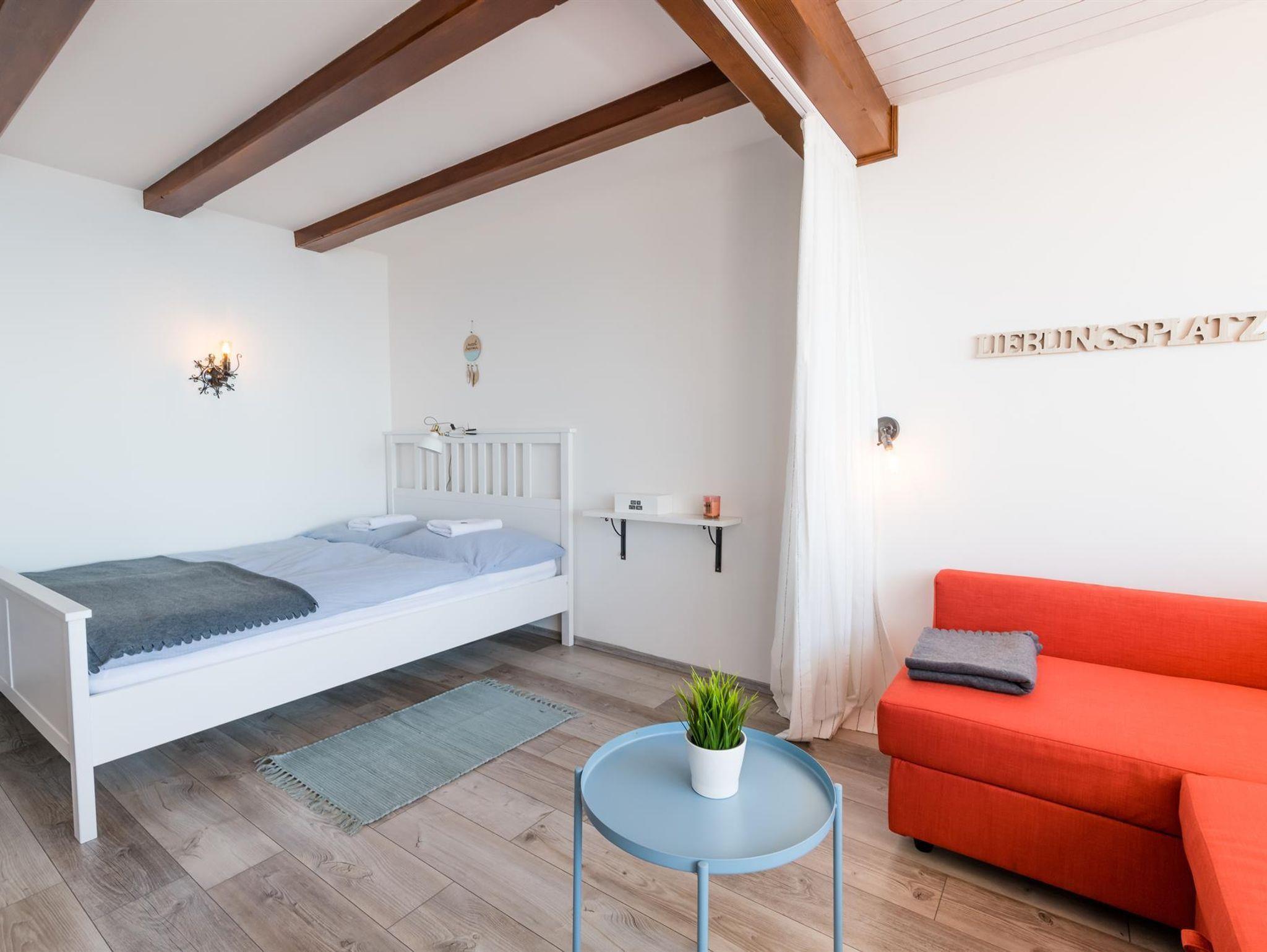 Die Wohnungen sind 30m2 groß und hat Platz für bis zu zehn Personen. Auch Haustiere sind jederzeit willkommen. Unser “Highlight” ist der “Indoor Pool”, die Benutzung ist im Preis inkludiert.