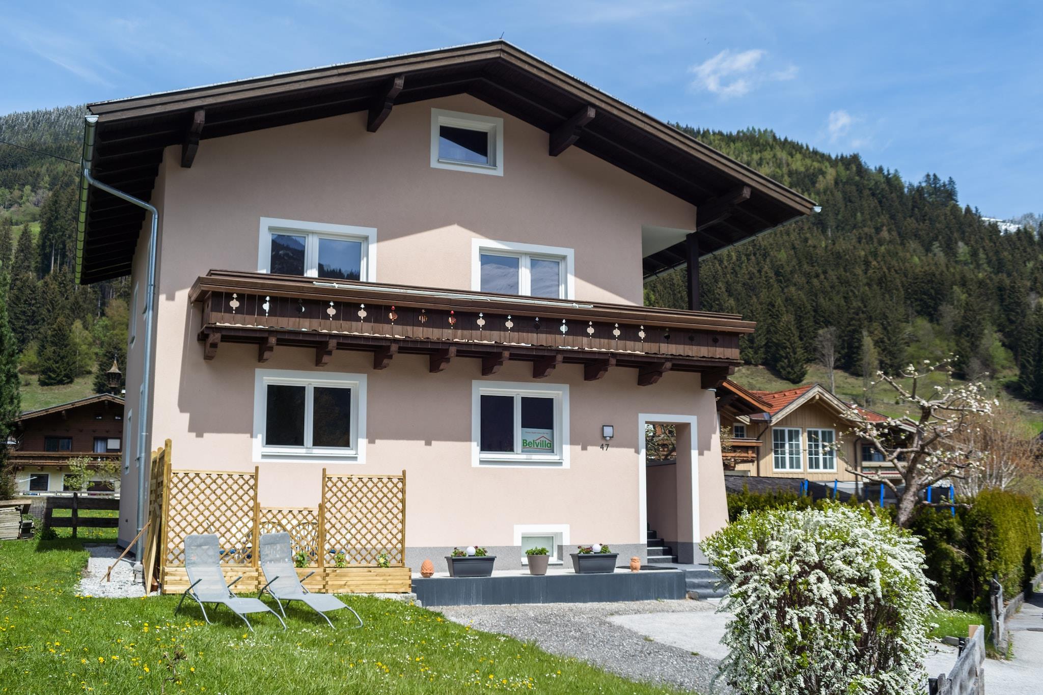 Dette smukke sommerhus ligger på den solrige side af dalen, i nærheden af "Dorf-Mühlbach" i den berømte landsby Bramberg am Wildkogel. Du vil bo i lejligheden på første sal, der består af en rummelig stue med adgang til altanen, 2 soveværelser, et badeværelse og et separat rummeligt køkken. Alt er indrettet på en meget stilfuld måde. kan komme på den gratis skibus i nærheden af huset, hvilket bringer dig direkte til de omkringliggende skiområder i Kitzbühel eller Bramberg. Gående, kælkning, langrend er alle mulige i umiddelbar nærhed. Om sommeren er der nok til at gøre : Krimmls berømte vandfald, Grossglocknerstrasse og Gerlospas er i nærheden. Absolut anbefales!