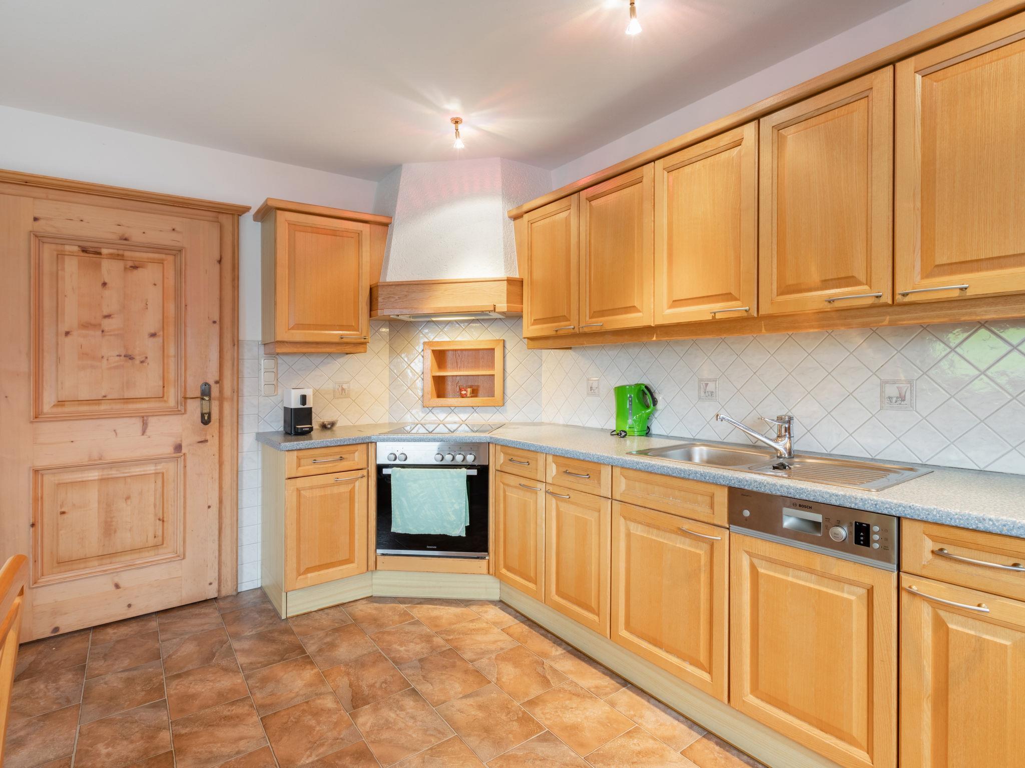 "Prieslern", 5-room apartment 100 m2 on 2 levels. Bright, cosy furnishings: 1 double bedroom with shower/WC. 1 double bedroom. Upper floor: living room with satellite TV. Exit to the balcony. 1 double bedroom. 1 room with 1 bed and 1 x 2 bunk beds. Kitchen (oven, dishwasher, 4 ceramic glass hob hotplates, toaster, kettle, electric coffee machine) with dining nook. Bath/shower, sep. WC. Underfloor heating. Balcony, terrace 25 m2. Terrace furniture, box-room. Panoramic view of Hohen Tauern. Facilities: children's high chair, baby cot. Internet (WiFi, free). Please note: non-smokers only. Maximum 2 pets/ dogs allowed. 50601-000641-2020