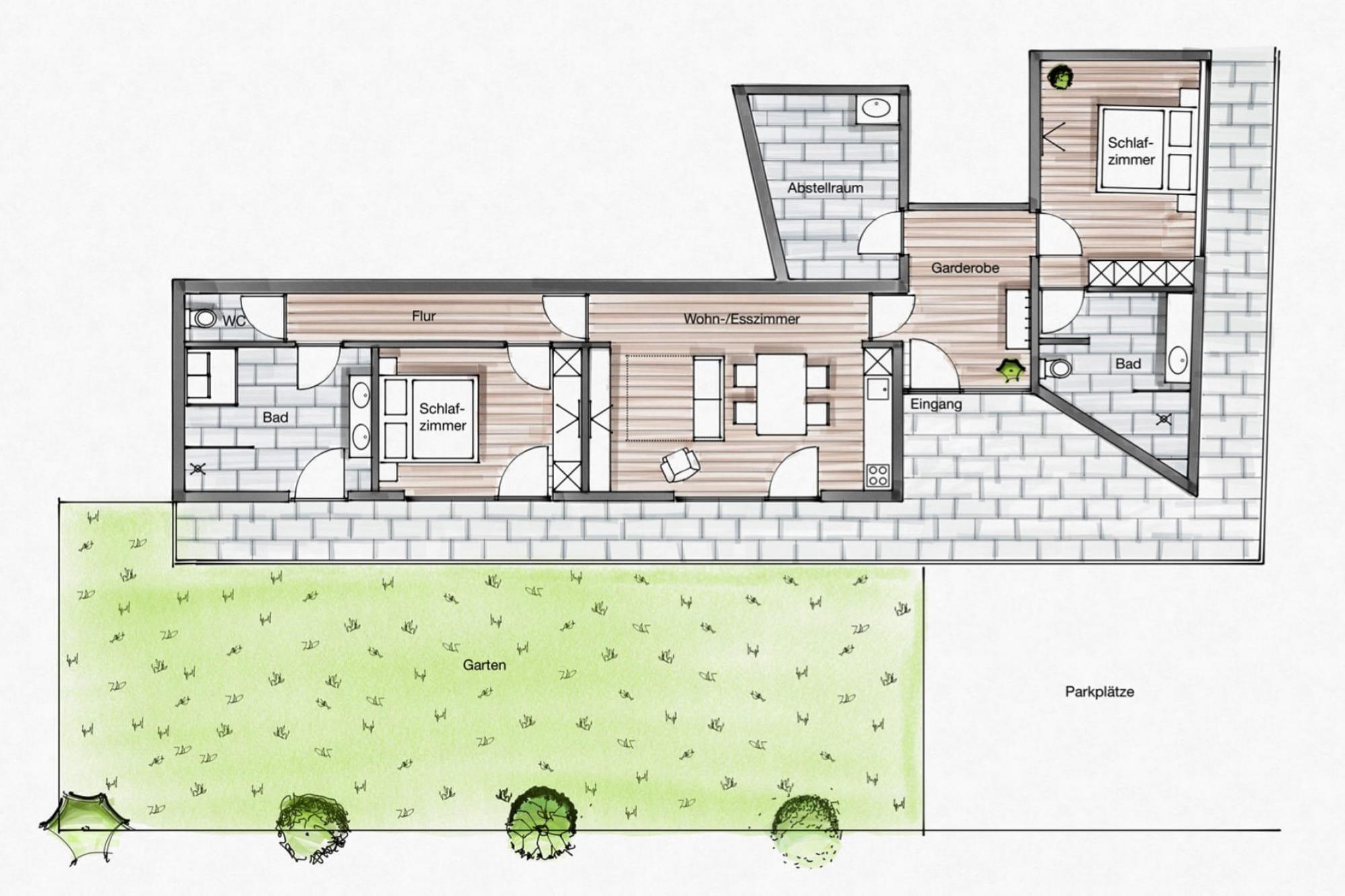 Stueetage: (åbent køkken(kogeplade(Komfur med fire kogeplader, glaskeramisk), elkedel, brødrister, kaffemaskine, ovn, grill, combi-mikroovn, opvaskemaskine , køle-fryseskab), stue / spisestue(dobbeltsovesofa, Fjernsyn, sofahjørne), soveværelse(dobbeltseng, Fjernsyn(parabol, Tyske TV-kanaler)), Soveværelse med badeværelse(dobbeltseng, Fjernsyn(parabol, Tyske TV-kanaler), bruser, toilet), badeværelse(bruser, private infrared cabin), toilet, grill, infrarød sauna, vaskemaskine, have, cykelopbevaring, havemøbler)