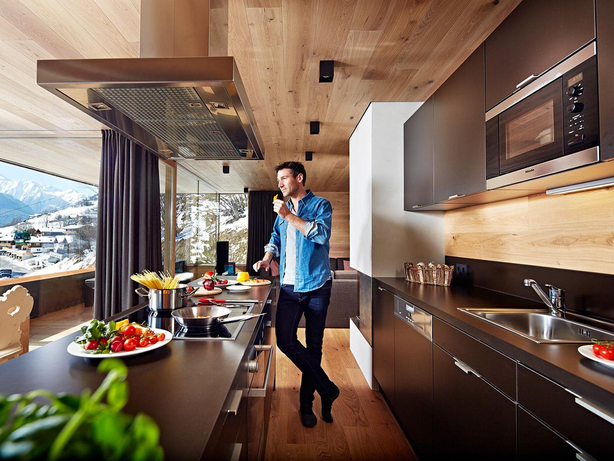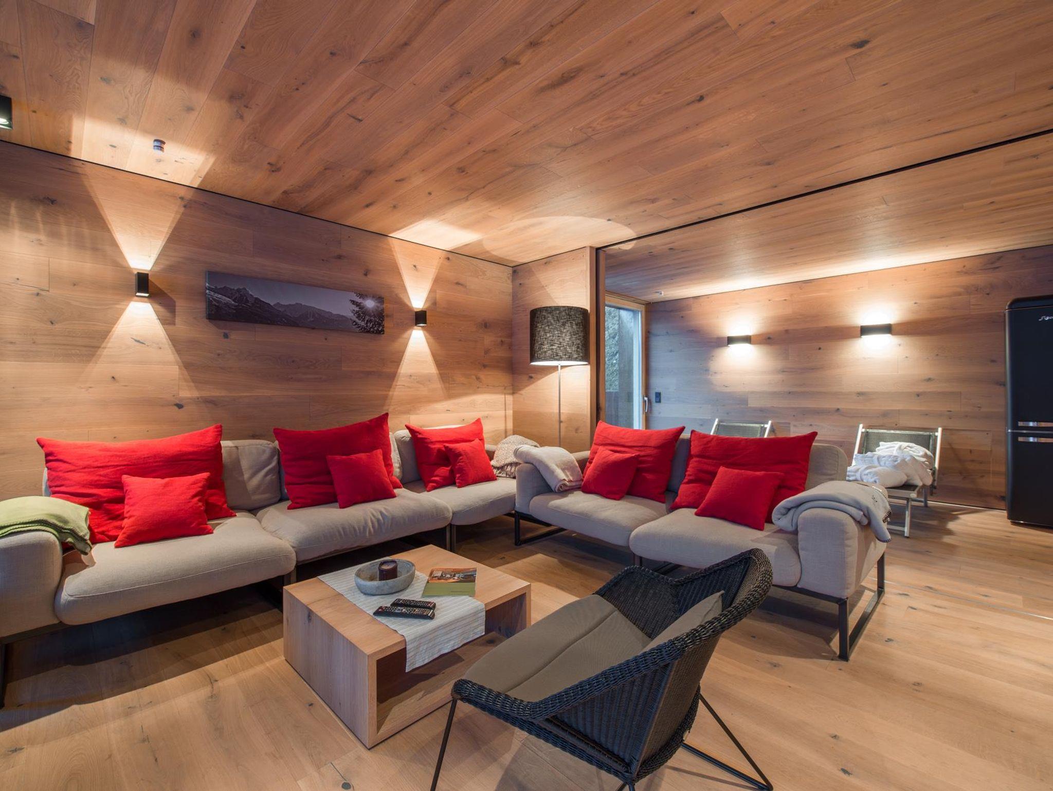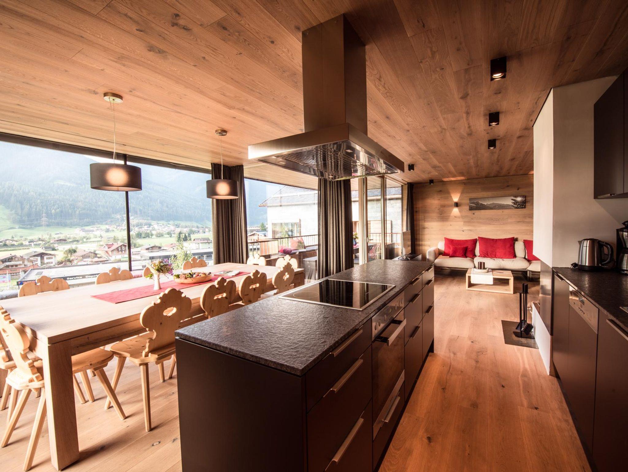 Ski in - ski out im Ferienhaus Smaragdjuwel - Gönnen Sie sich eine Auszeit vom Alltag und lassen Sie die Seele baumeln. Der Urlaub im neuen Smaragdresort in Bramberg verspricht nicht nur wegen seines unvergleichlichen Stils und der einzigartigen Lage besondere Tage, sondern garantiert auch Entschleunigung und Luxus im Ferienhaus. Das Smaragdjuwel liegt direkt an der Skipiste und am Eingang der Smaragdbahn Bramberg, verfügt über 5 Zimmern mit 4 Bädern, Sauna mit Ruheraum eigener Terrasse und eine große Wohnküche mit offenem Kamin in der alle 12 Personen gemeinsam Platz finden. Für die Gäste gibt es einen eigenen Schi - oder Gästeraum und einem Trockenraum inkl. Schischuhtrockner. Die verarbeiteten natürlichen Materialen tragen für ein gemütliches und wohltuendes Raumklima bei.