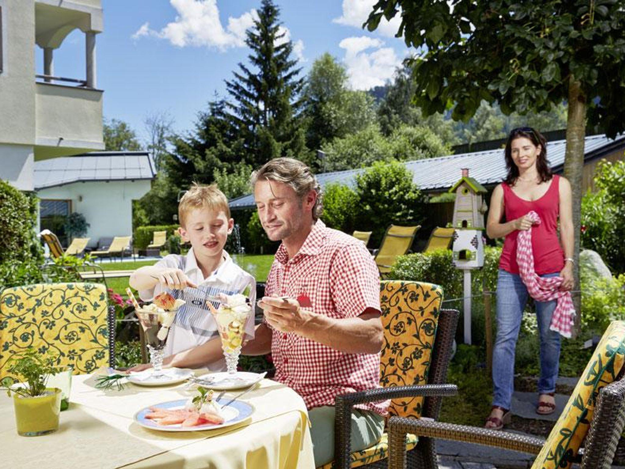 Smaragdspa mit Hallen-Freibad, Erlebnissauna, Gartenliegewiese, Spielplatz, ideal für Familien- und Wanderurlaub, Mountain bike Urlaub. 3/4 Verwöhnpension mit Frühstücksbuffet, Nachmittagsjause und Abendmenü. Wir sind ein Familienbetrieb inmitten des herrlichen Nationalparks Hohe Tauern im Smaragddorf Bramberg am Wildkogel und der bekannten Kitzbühel Alpen. Spazier- und Wander, Mountain bike und Radwege führen direkt am Hotel vorbei. Sie können sich in unserem einzigartigen und attraktiven Smaragdbadentspannen - mit Hallen-/Freibad, Kinderbecken, Erlebnissauna, Dampfbad, Ruheinseln. Schöner Garten mit Liegewiese und Kinderspielplatz. Gönnen Sie sich Wellness im Nationalpark! Neue Zimmer und neues Restaurant