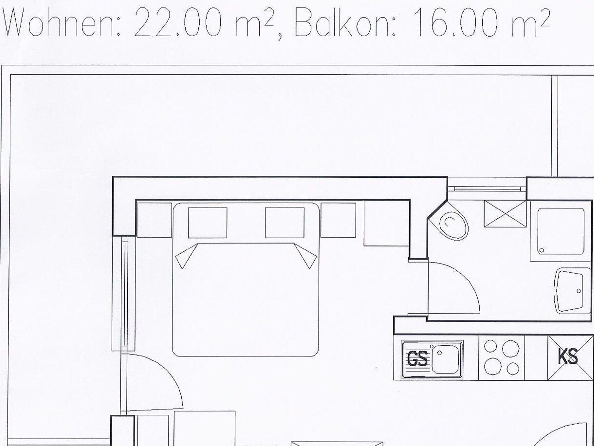 Appartement 22 ( 22m²) beinhaltet eine vollausgestattete Küche mit Geschirrspüler, Dusche/ WC, TV und WLan.
