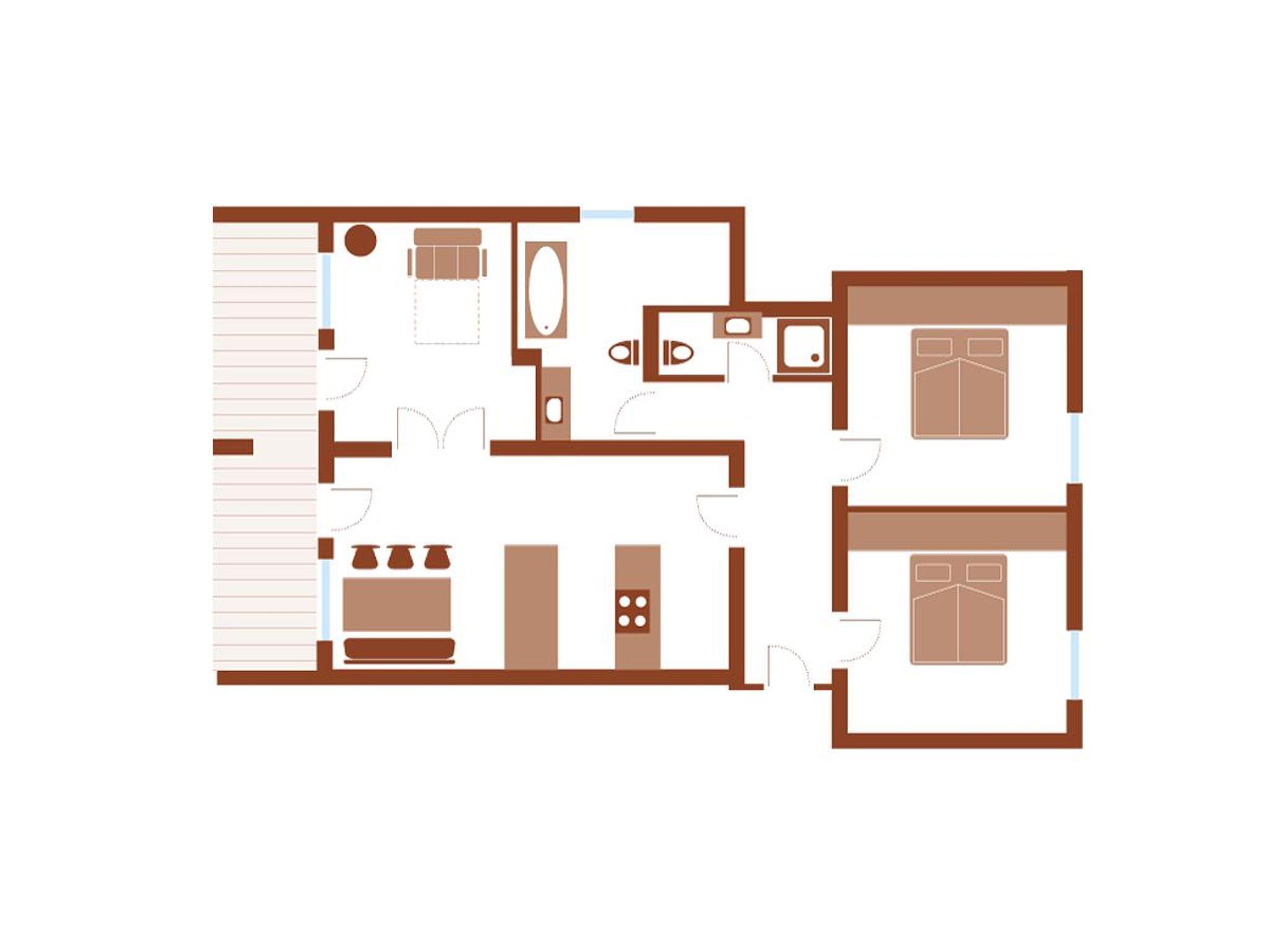 Luxuriös für Zwei, entspannt für Vier oder gemütlich für Sechs. Im Zentrum der Wohnung liegt die großzügige Wohnküche mit großem Esstisch und top eingerichteter Küche. Ein großer Balkon mit mehreren Zugängen lädt zum Verweilen ein. Zum Hauptschlafzimmer gehört ein eigenes Bad, in dem Sie die Infrarotkabine und eine große Badewanne für Ihr privates Spa-Vergnügen finden. Das zweite Schlafzimmer mit eigenem Bad ist ideal für gute Freunde oder ältere Kinder.