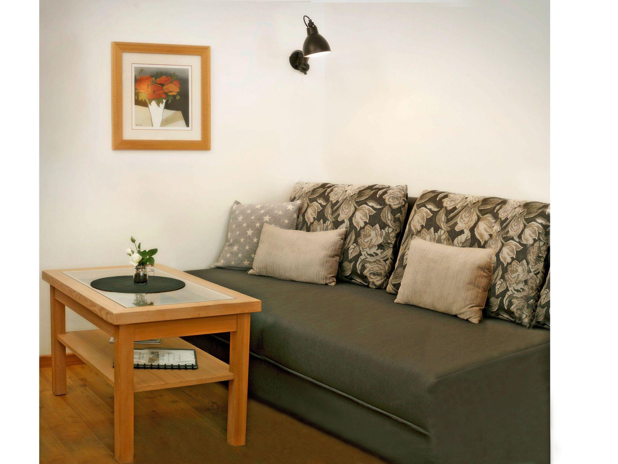 35 qm, 1 Schlafzimmer, Wohnbereich mit Sitzecke, Schlafcouch und Küche (Herd, Backofen, Mikrowelle, Spülmaschine, Kaffeemaschine, Wasserkocher, Geschirr, Tischwäsche), Dusche, WC, Fön, inkl. Handtücher, Bettwäsche, kostenloser Internetanschluss, Lage: Westseite, Endreinigung inkl.