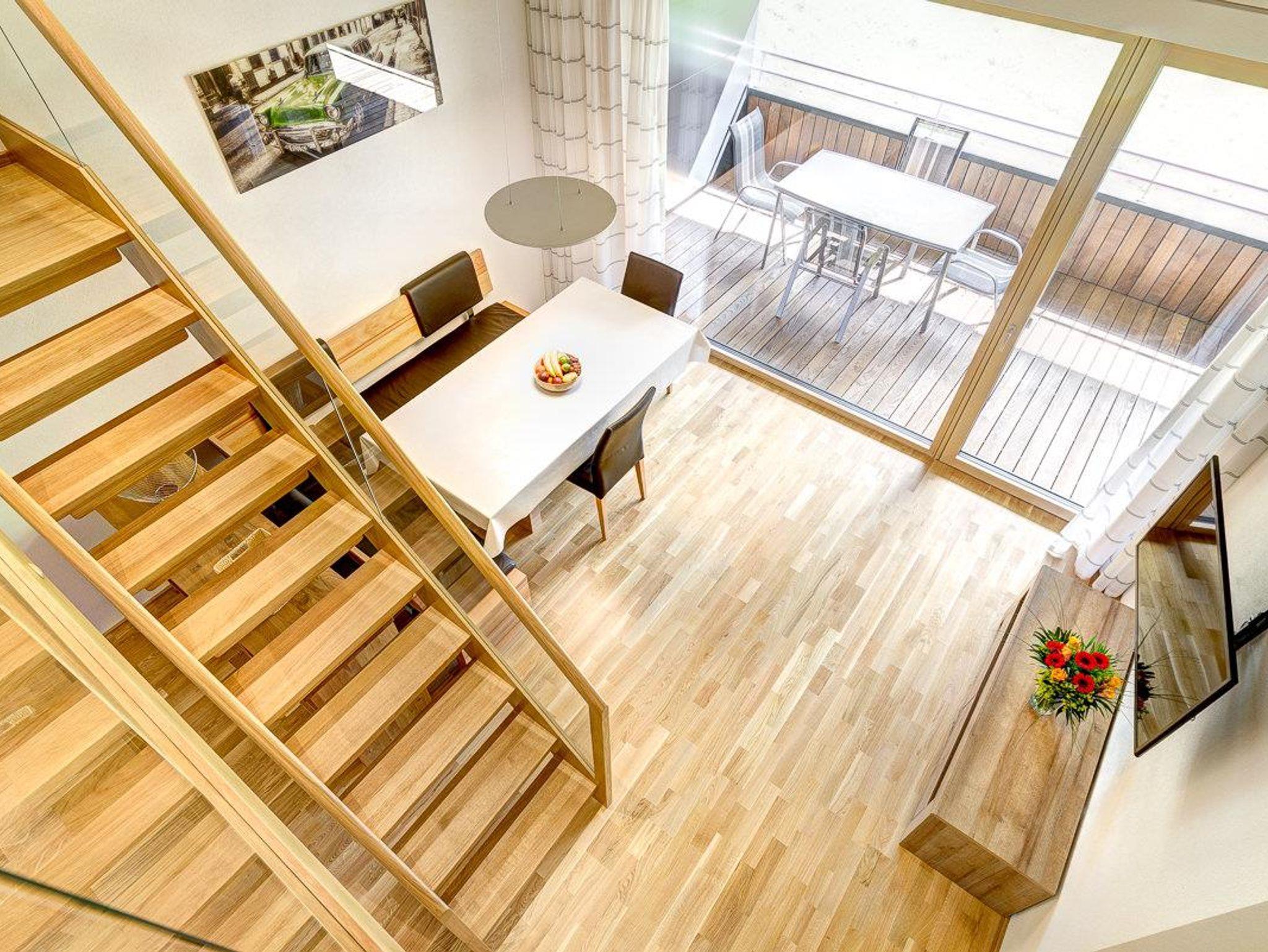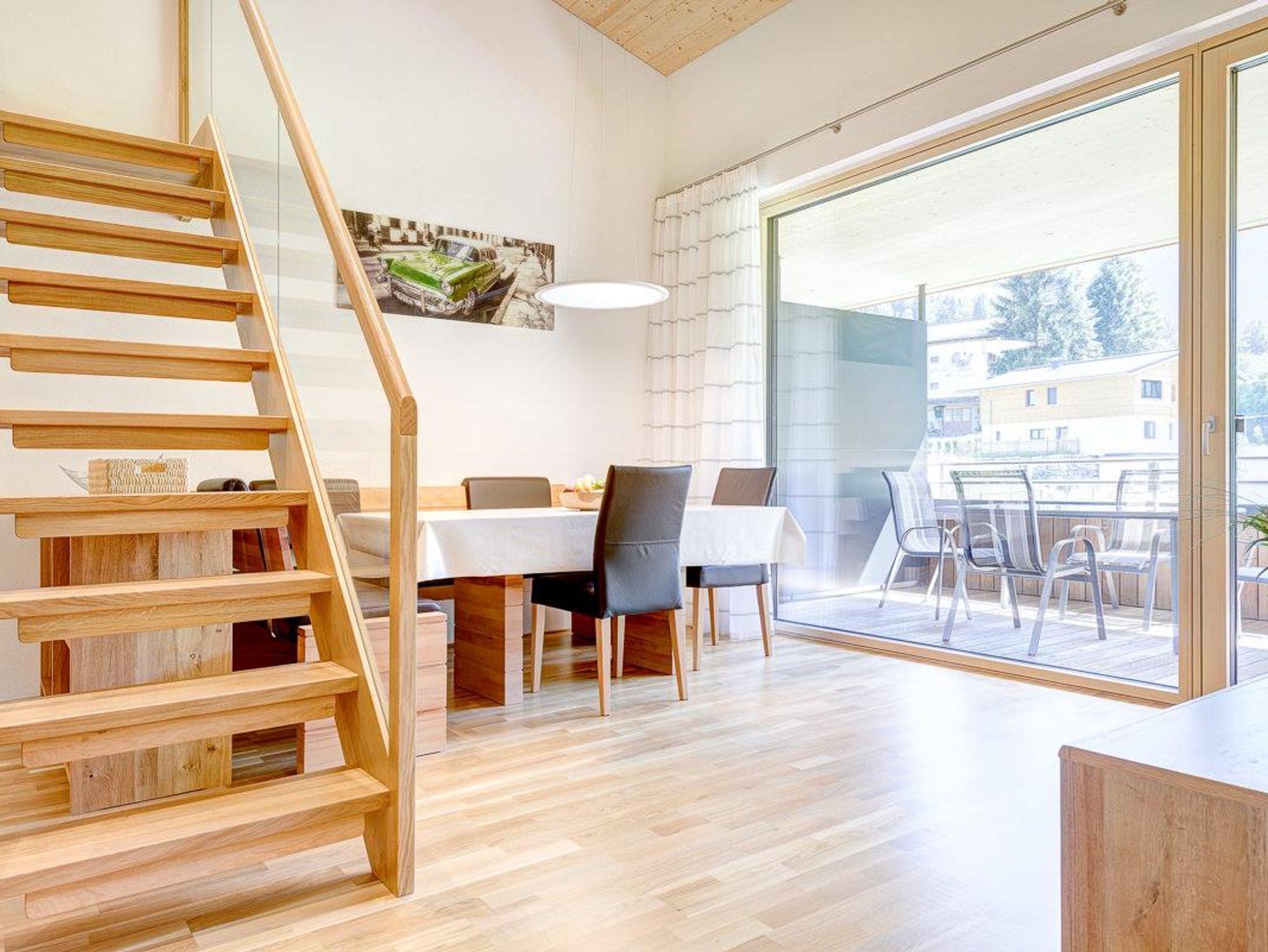 Der großzügige Balkon lädt mit bequemen Möbeln zum Entspannen ein. Ein Tiefgaragenplatz ist inklusive. Frische Milch sowie Käse und Joghurt aus der hofeigenen Sennerei gibt es vor Ort.