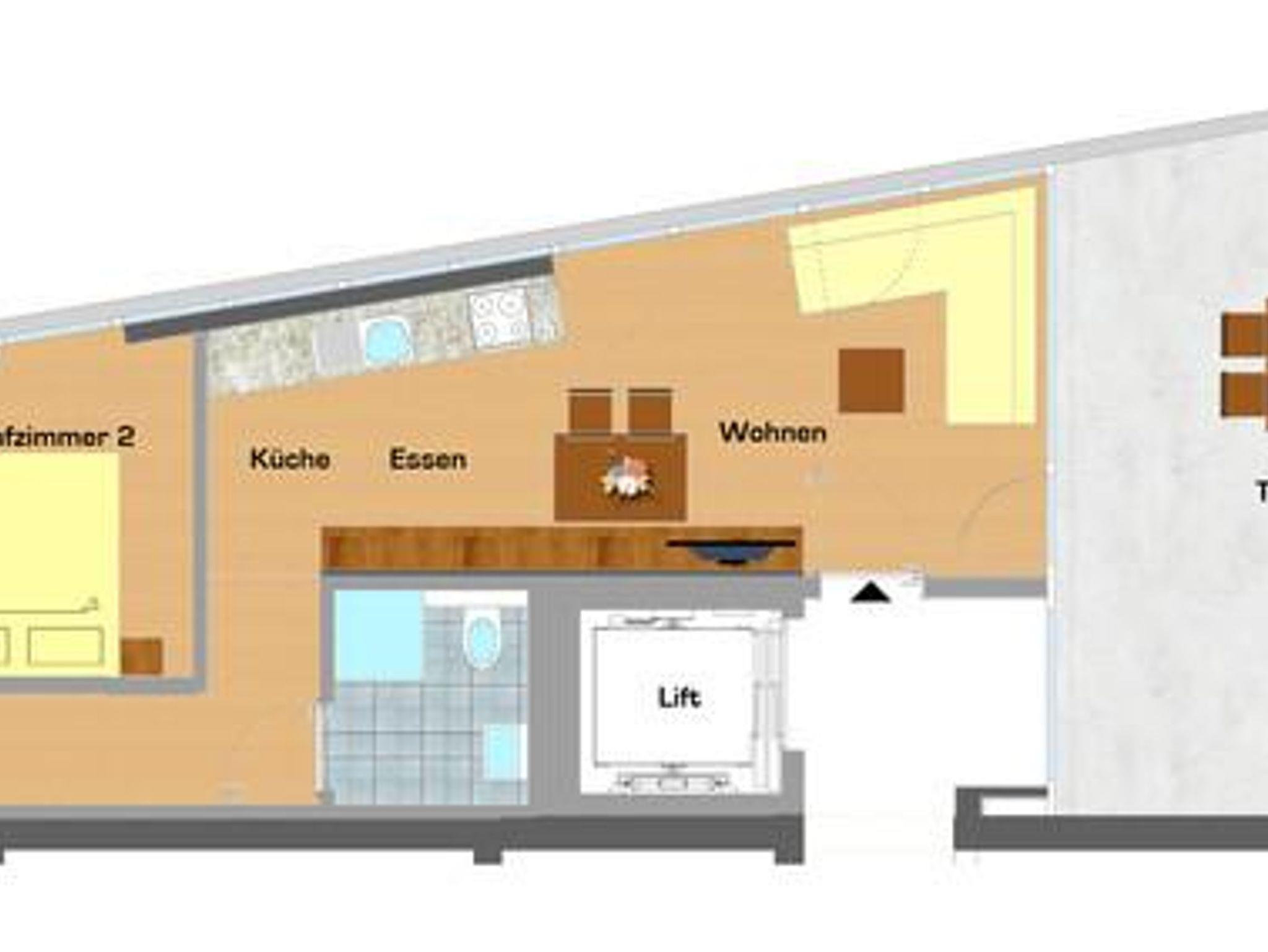 Zentrale Lage: 8 Meter neben der Bergbahn, direkt an der Bushaltestelle, 50 Meter zum 1. Hole vom Golfplatz, mehrere gemütliche Restaurants im Umkreis von 200 Metern, 50 Meter zum Sparmarkt, 70 Meter zum Badeteich