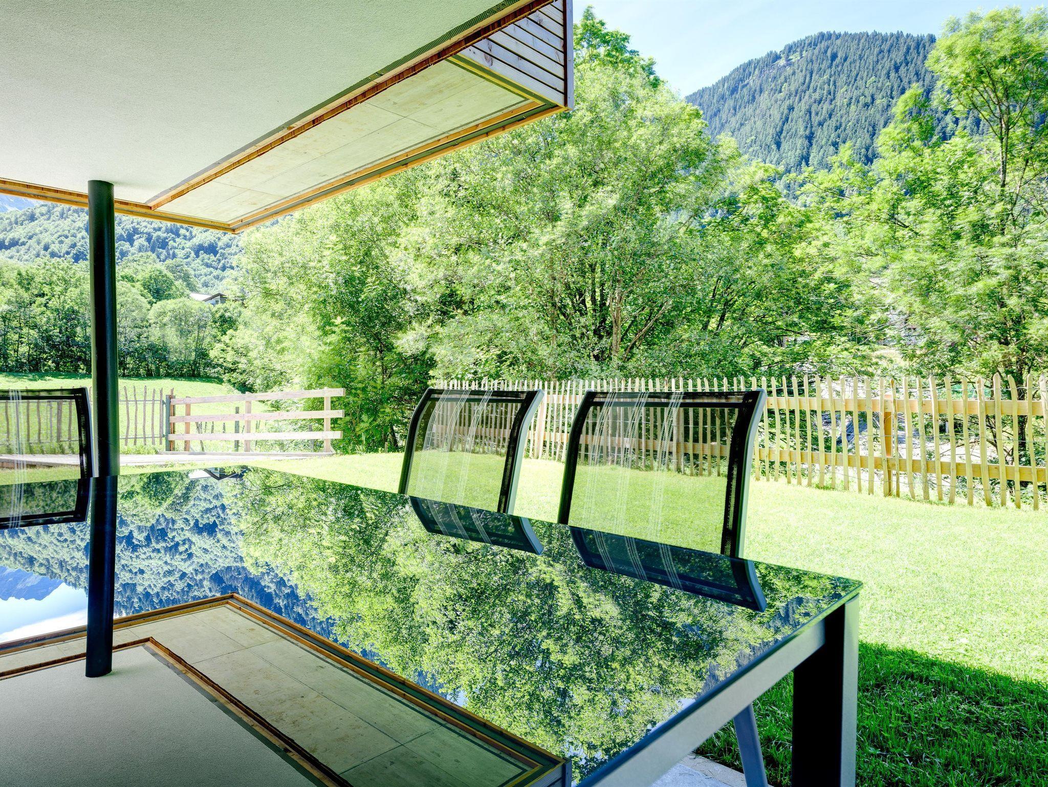 Die Alvier Lodge ist eine 110 m² große Gartenwohnung mit sonniger Terrasse und 200 m² Garten. Drei Schlafzimmer – zwei Doppelzimmer mit Terrassenzugang und ein Familienzimmer mit Doppelbett, Stockbett und Ankleide – sowie zwei moderne Bäder mit begehbaren Duschen und WCs sorgen für Komfort.
