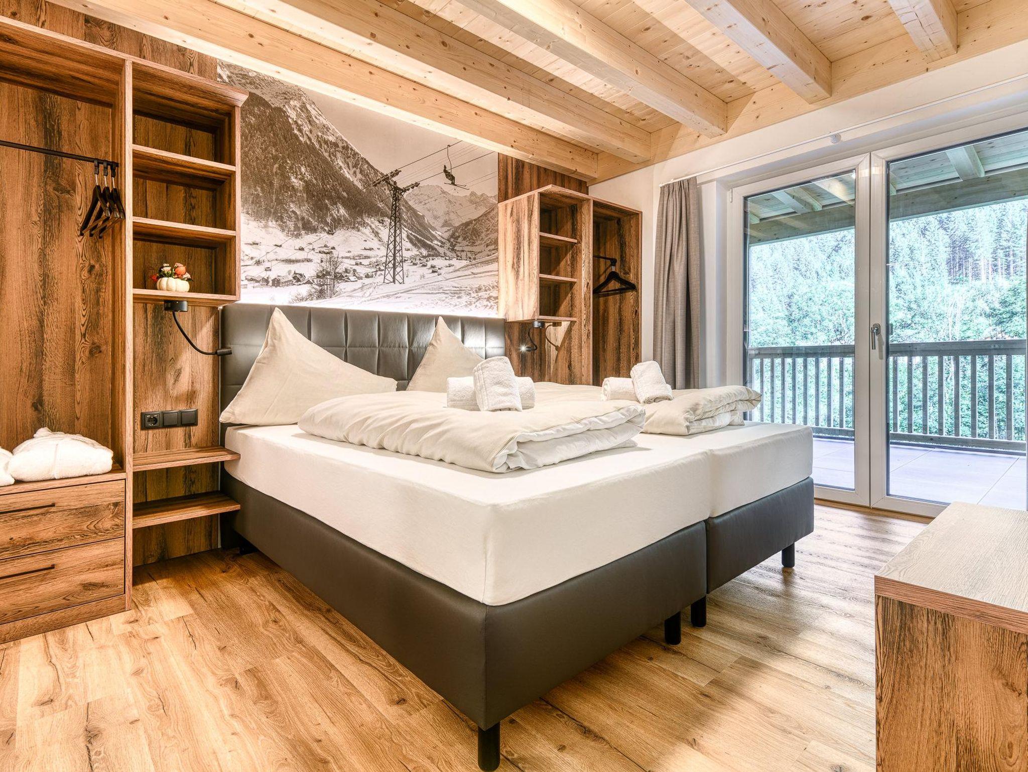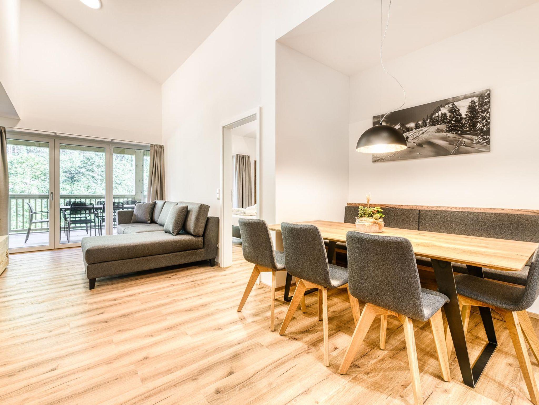 Die modern eingerichtete Ferienwohnung im alpinen Stil bietet Platz für bis zu sechs Personen und ist ideal für Familien oder Freunde. Die Wohnung verfügt über zwei Schlafzimmer sowie zwei Duschbäder. Ein Schlafzimmer ist mit einem komfortablen Doppelbett ausgestattet. Das zweite Schlafzimmer ist als Doppelstockbett-Zimmer aus massivem Holz gestaltet und bei Kindern beliebt. Die voll ausgestattete Küche lädt zum gemeinsamen Kochen ein, der Tag klingt am Esstisch aus. Vom Balkon eröffnet sich ein freier Blick auf das Brandner Bergpanorama – ideal für ruhige Morgen und entspannte Abende. In der Sitzecke lässt es sich abschalten oder lesen. Herzstück des Brandnerhus ist der Wellnessbereich im Erdgeschoss mit finnischer Sauna, Bio-Sauna, Infrarotkabine und Dampfbad. Ein Ruheraum mit Zugang ins Freie sowie frisches Brandner Quellwasser sorgen für Erholung. Massagen sind auf Anfrage möglich. Ein Trockenraum mit Schuhwärmern sowie ein separater Ski- und Fahrradraum stehen zur Verfügung.