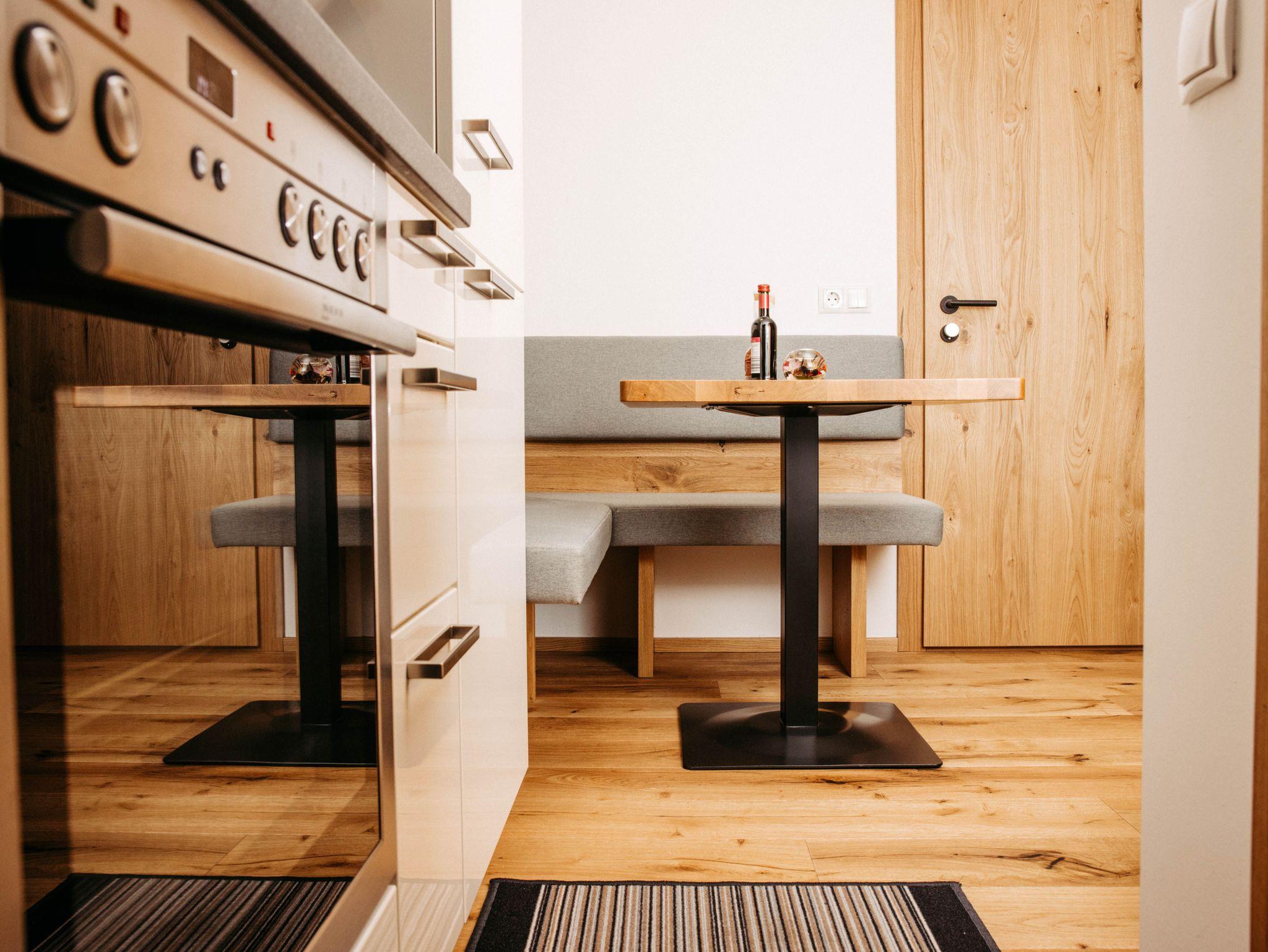 Liebevoll eingerichtetes Apartement ca 40m² mit neuer sehr gut ausgestatteter Wohnküche, Herd mit Backrohr, Spülmaschine, Kühl-Gefrierschrank, Mikrowelle, Kaffemaschine, Toaster, Heißwasserkocher, Sofa (Schlafmöglichkeit für eine 3. Person ) - Flachbild TV, gemütliche Sitz-Essecke - 1 neue Dusche/WC, mit Flachbild TV und mit großer möblierter Terasse und freiem Panoramablick auf unsere herrliche Bergwelt, Garderobe, Bettwäsche und Handtücher genügend vorhanden, freier Internetzugang, Brötchenservice