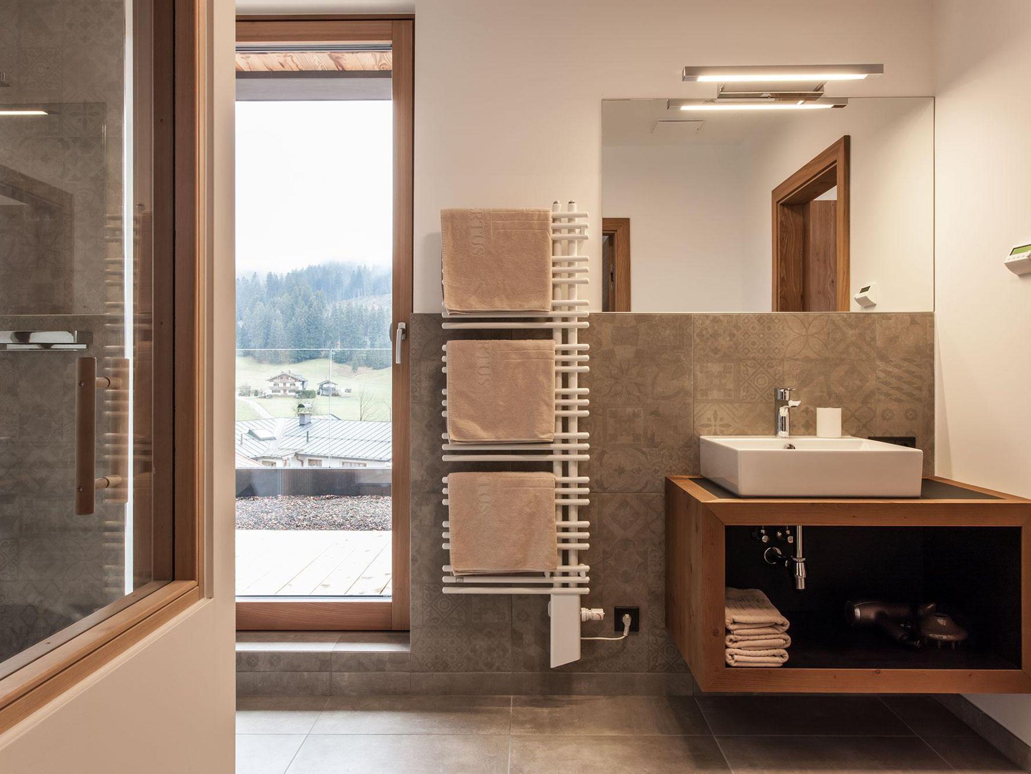 Lebendiges Holz, wohlige Wärme vom knisternden Feuer und frisch duftende Bettwäsche. Im Appartement Hohe Salve können Sie sich mit Ihrer Familie wie zuhause fühlen - für bis zu 7 Personen. Luxuriös, authentisch und geräumig wohnen, mit großen Glasfronten und freiem Blick auf das Panorama des Brixentales - von der Hohen Salve bis zum Kitzbüheler Horn. Ausstattung: - 90 m² für 5-7 Personen im DG - 2 Schlafzimmer - 1 Badezimmer mit Dusche - Sauna - separate Toilette - komplett ausgestattete Küche mit Esstisch - Ausziehcouch im Wohnraum - überdachter Autoabstellplatz oder Garagenplatz - Sportbox für Ski, Golfbag, Bike & Co - Dachterrasse & Wintergarten mit offenem Kamin - luxuriöse Ausstattung mit BUS-System, Kühldecken uvm. - 3 Flat-TV - Wifi