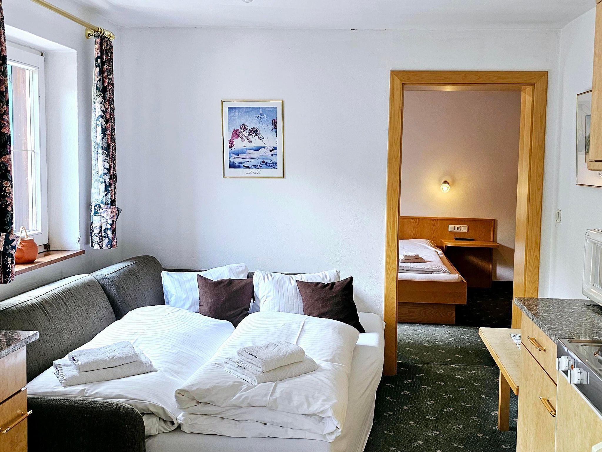 Insgesamt sechs gemütliche Appartements in unterschiedlicher Größe sind bequem und funktional ausgestattet: Neben ein bis zwei Schlafzimmern mit Dusche/WC stehen ein Wohnraum mit Schlafcouch und eine zumeist integrierte Küche zur Verfügung. Alle Appartements haben einen eigenen Balkon.