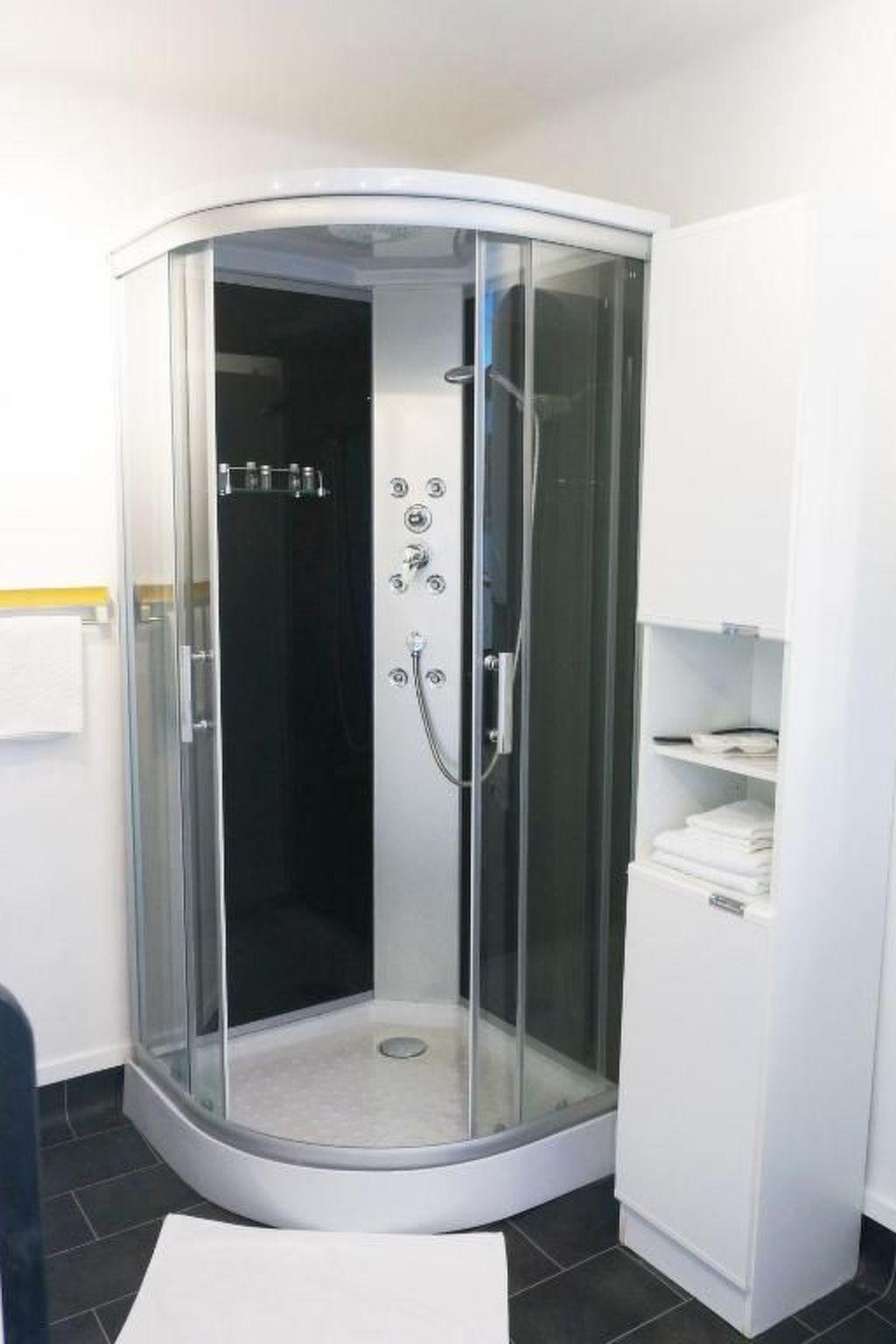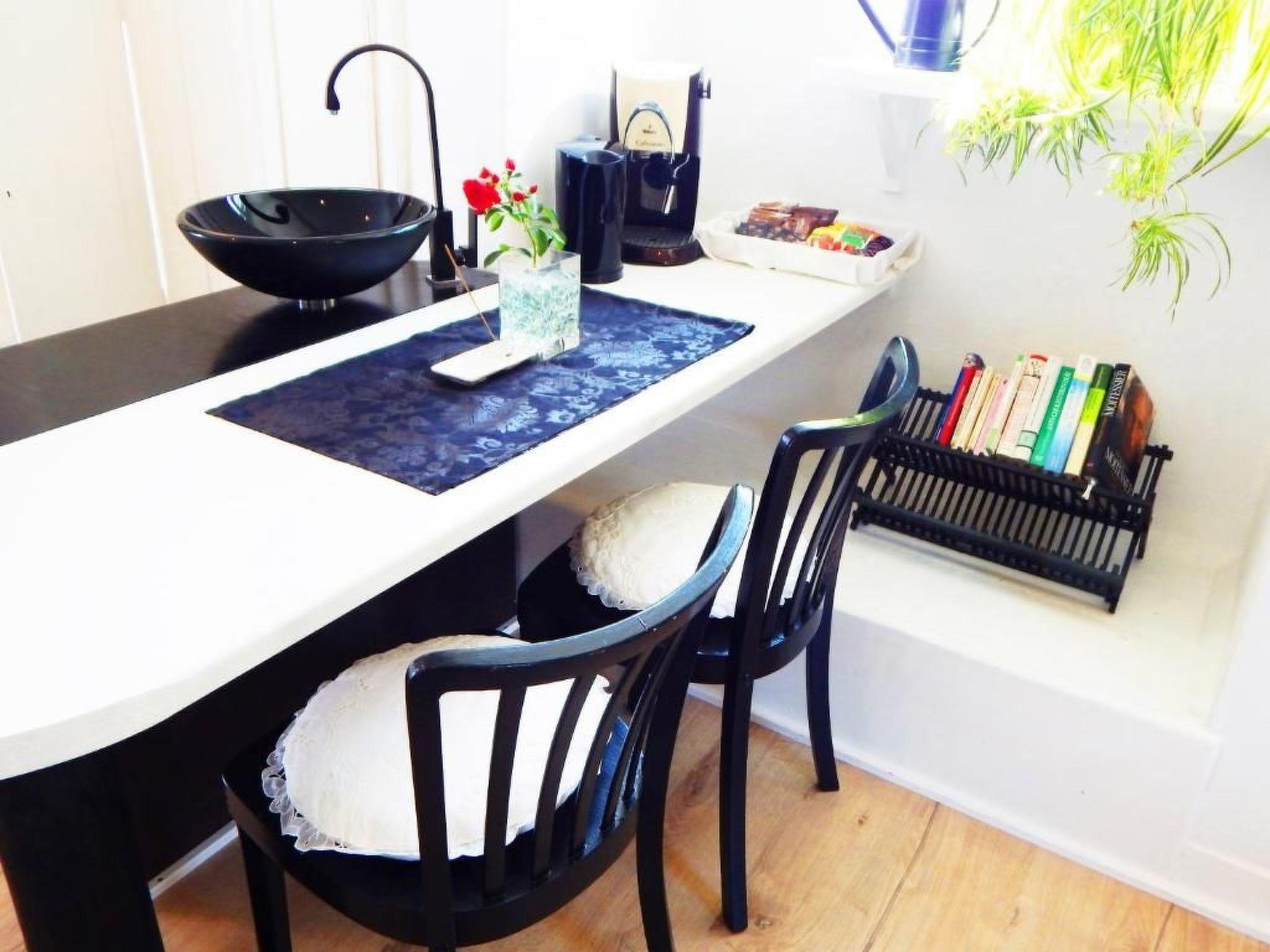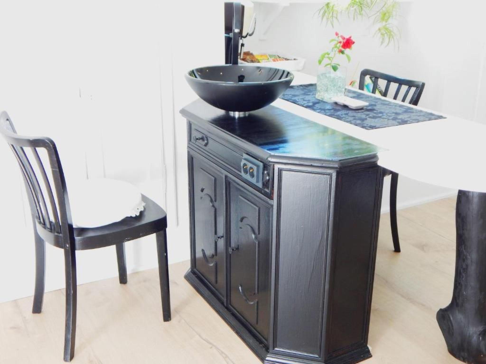 The newly furnished holiday home BLACK & WHITE has 1 bedroom on the ground floor with a large double bed (box spring bed). A pull-out sofa for 1-2 persons is available. The house has a living room with dining area, a bathroom with shower and WC, a fully equipped kitchen with modern tiled stove and a seating area by the tiled stove. In the room on the first floor there is a large double bed (box spring bed) and a sofa for one person. There is a small, fully equipped kitchenette and a bathroom with shower and WC. With a further extra bed, the house offers enough space for 7 people. A desk, a flat screen TV with satellite connection and free WLAN are a matter of course on both floors.