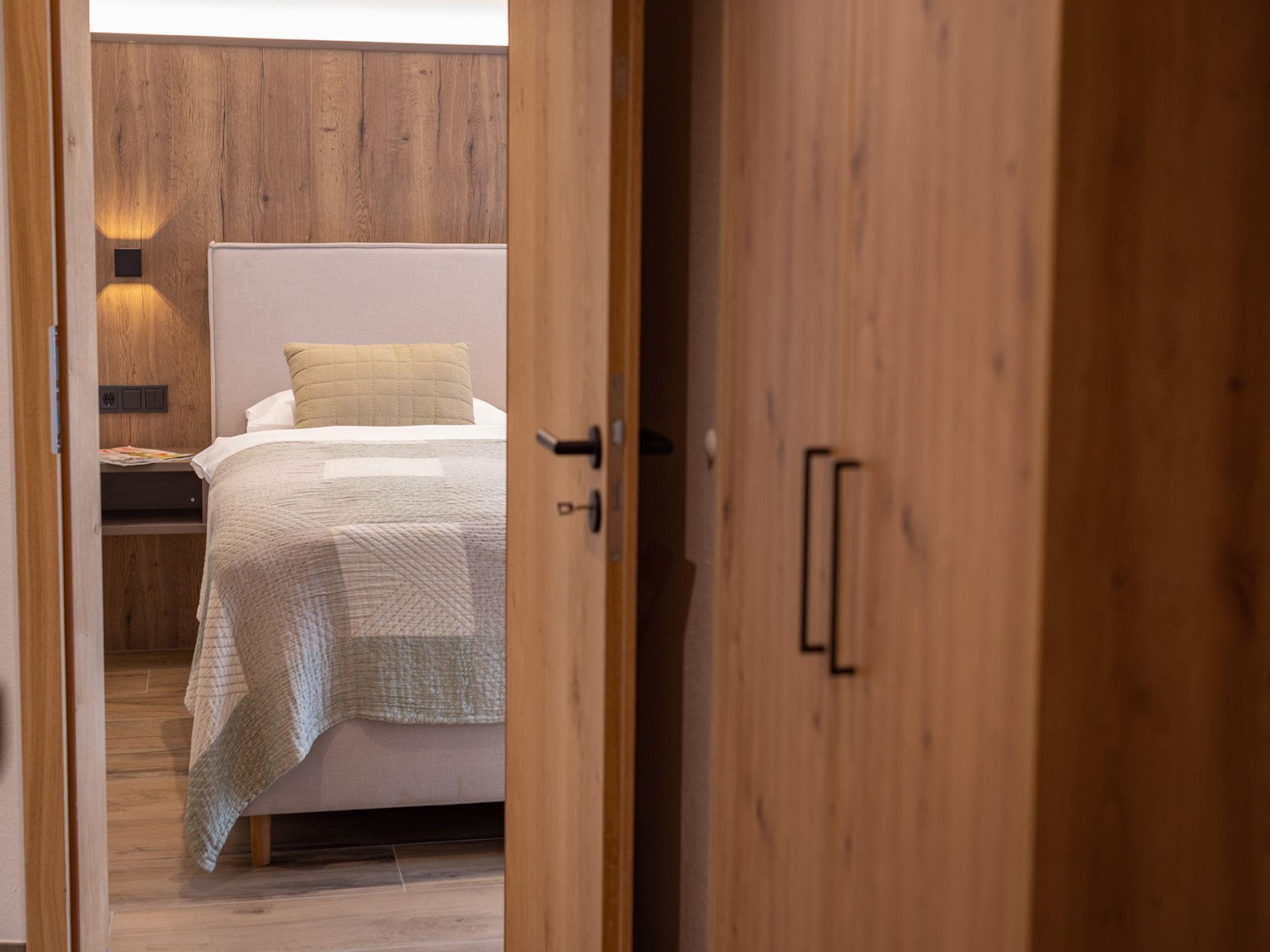"Top 4", 2-room apartment 55 m2 on 1st floor. Bright, very modern and tasteful furnishings: entrance hall. 1 double bedroom with cable TV (flat screen). Kitchen-/living room (oven, dishwasher, 4 ceramic glass hob hotplates, toaster, kettle, electric coffee machine) with 1 double sofabed, dining table and cable TV (flat screen). Exit to the balcony. Shower/WC. Underfloor heating. Balcony 6 m2. Very beautiful view of the mountains and the countryside. Facilities: Internet (WiFi, free). Please note: 1 pet/ dog allowed. Smoke alarm. 50602-000351-2022