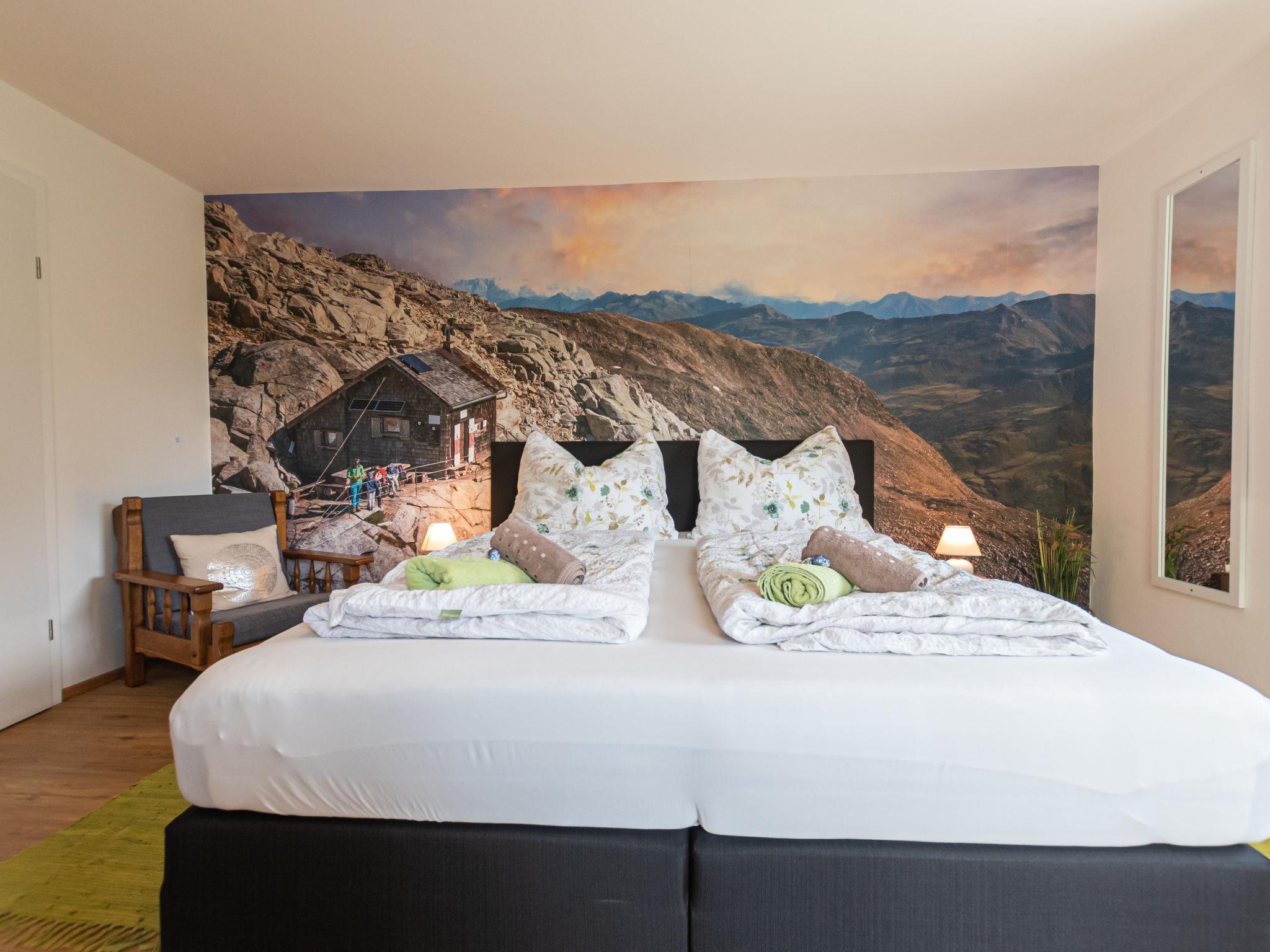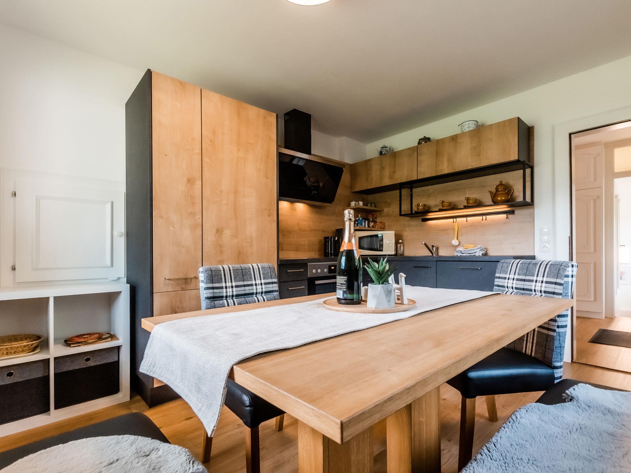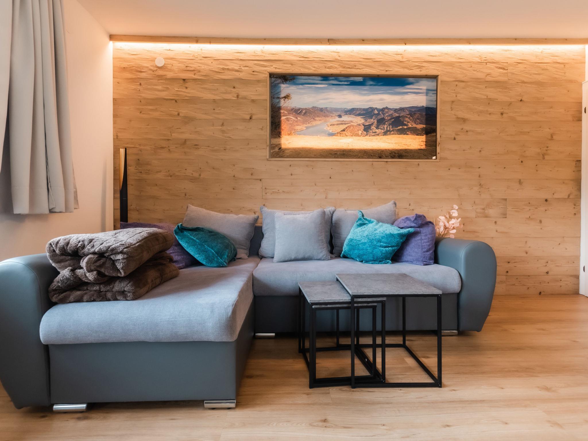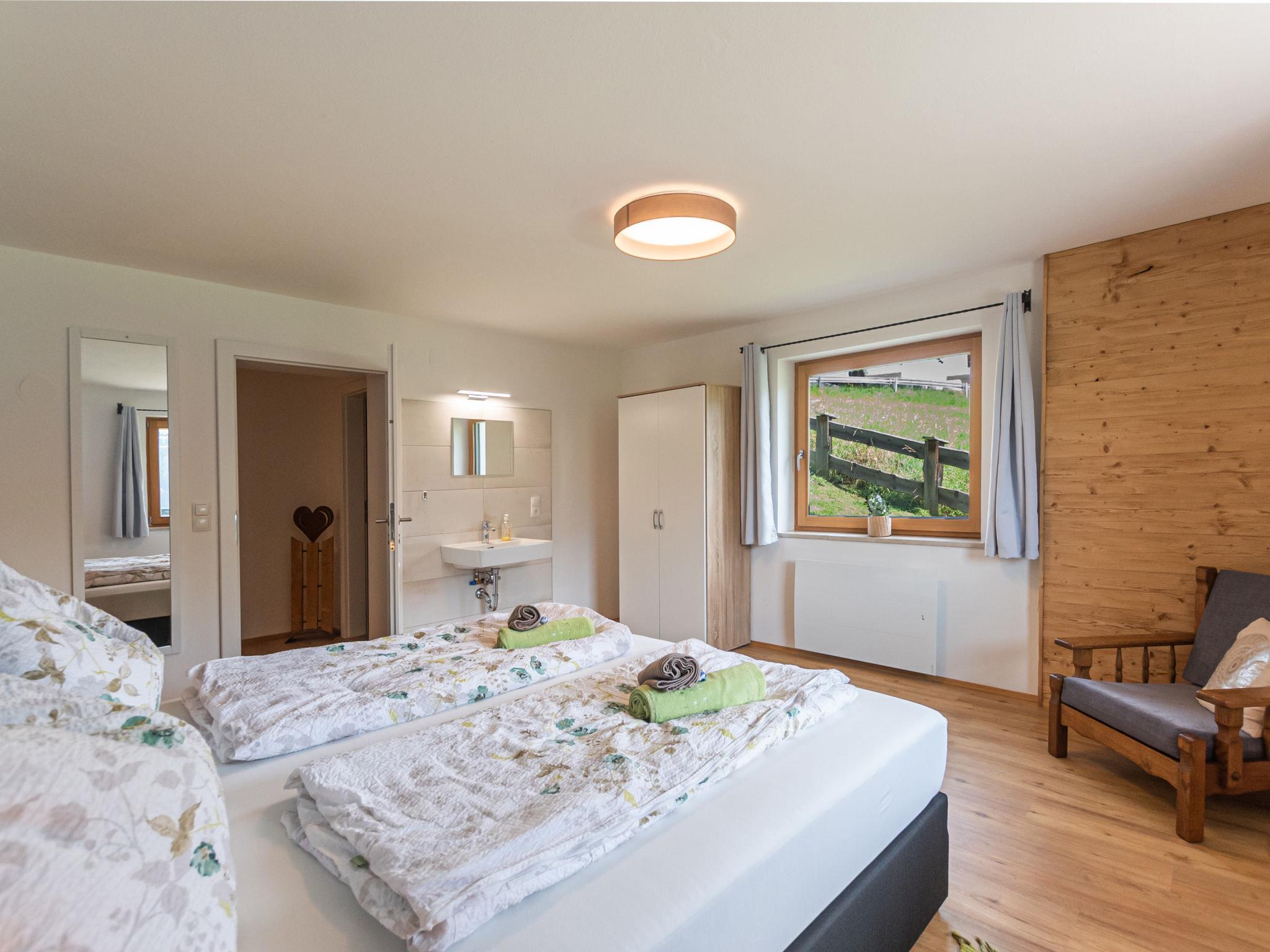 "Pfisterer", 4-room house 120 m2 on 2 levels. Tasteful and cosy furnishings: 1 room with 1 double bed. Exit to the terrace. 1 room with 1 double bed. Bath/WC. Heating. Upper floor: living/sleeping room with 1 double sofabed, dining table and satellite TV (flat screen). Exit to the balcony. 1 room with 1 double bed and shower. Kitchen (oven, dishwasher, 4 ceramic glass hob hotplates, toaster, kettle, freezer, electric coffee machine) with dining nook. Sep. WC. Panoramic view. Facilities: iron, children's high chair, baby cot, hair dryer. Internet (WiFi, free). Please note: non-smokers only. 2 pets/ dogs allowed. 50622-091034-2020