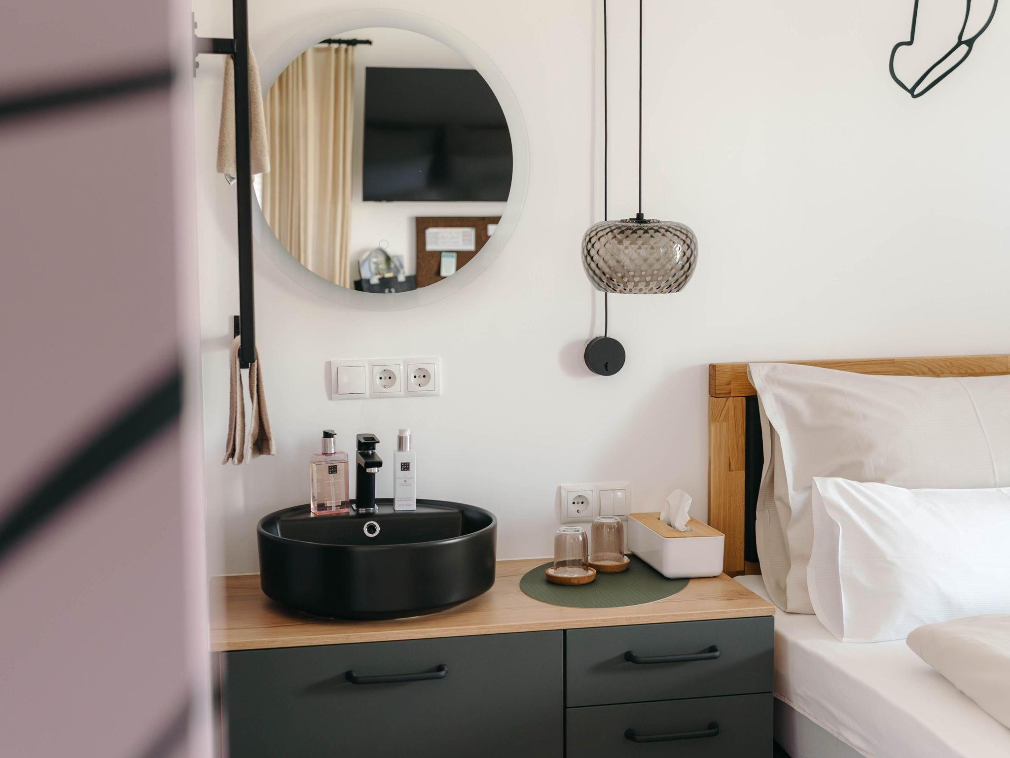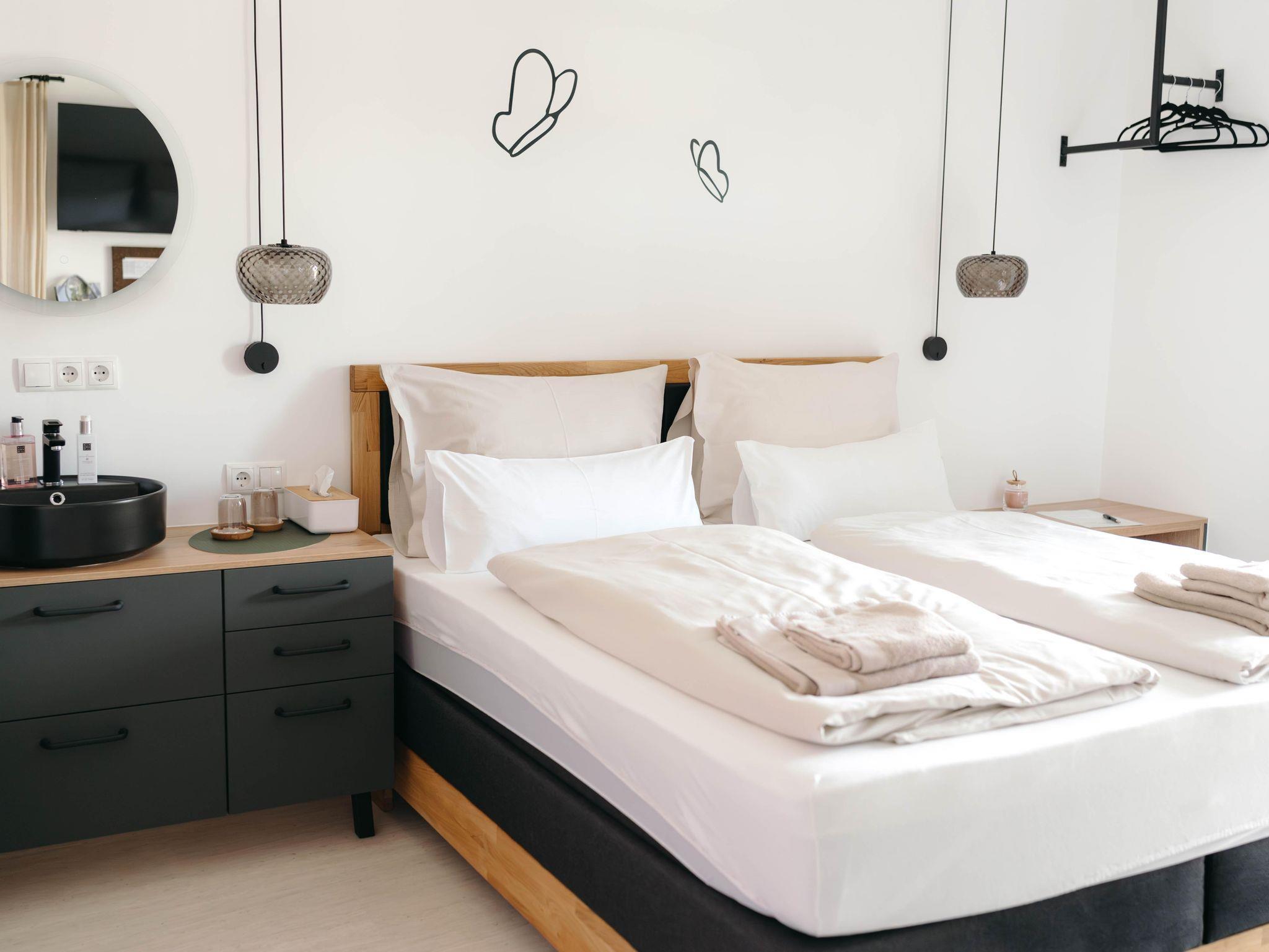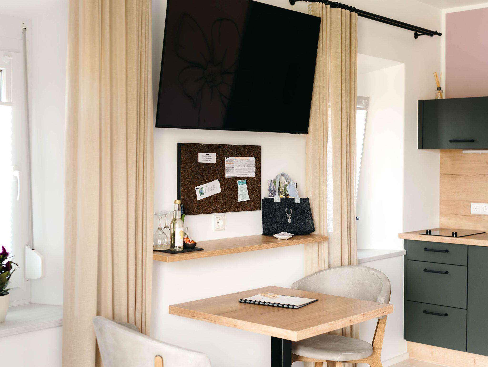 Freuen Sie sich auf einen unbeschwerten Urlaub MITTEN im Thermenland, umgeben von zahlreichen Thermen und Golfplätzen, und genießen Sie die Freiheit, den Tag in einem unserer top-modernen Zimmer entspannt zu beginnen. In jedem Zimmer befindet sich eine kleine ausgestatte Küchenzeile damit Sie Ihren Tag so starten können, wie Sie es wünschen.