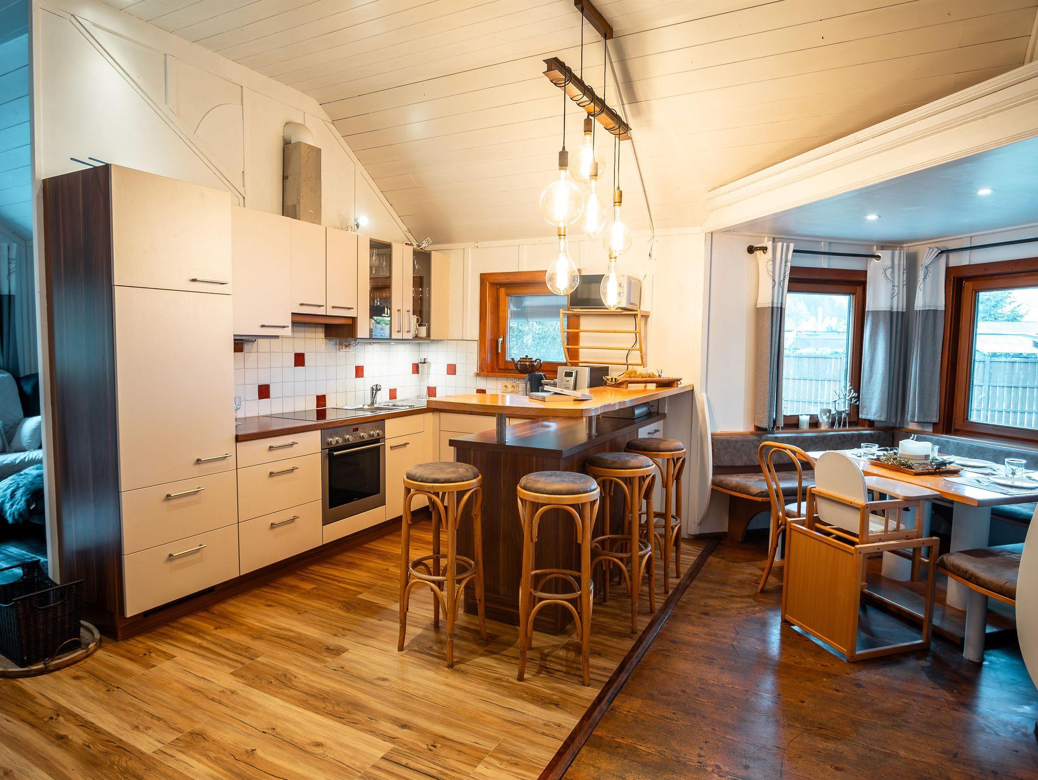 S´Holzhäusle bietet auf 110 m² Platz für bis zu 6 Personen. Auf zwei Ebenen erwarten Sie zwei Schlafzimmer, zwei Bäder, ein großer Garten von ca. 400 m² und eine Terrasse von ca. 60 m². Genießen Sie den Bergblick, überdachte Parkplätze und die ruhige, kaum einsehbare Lage – nur etwa 200 m vom See entfernt und dennoch mitten im Geschehen.