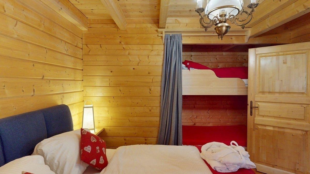 1 Schlafzimmer mit Doppelbett und Stockbett