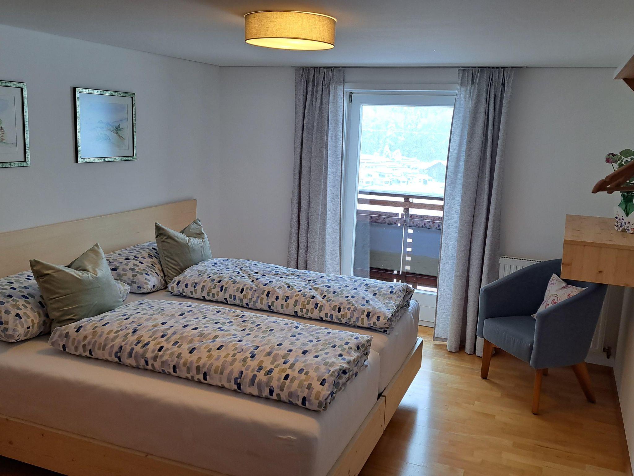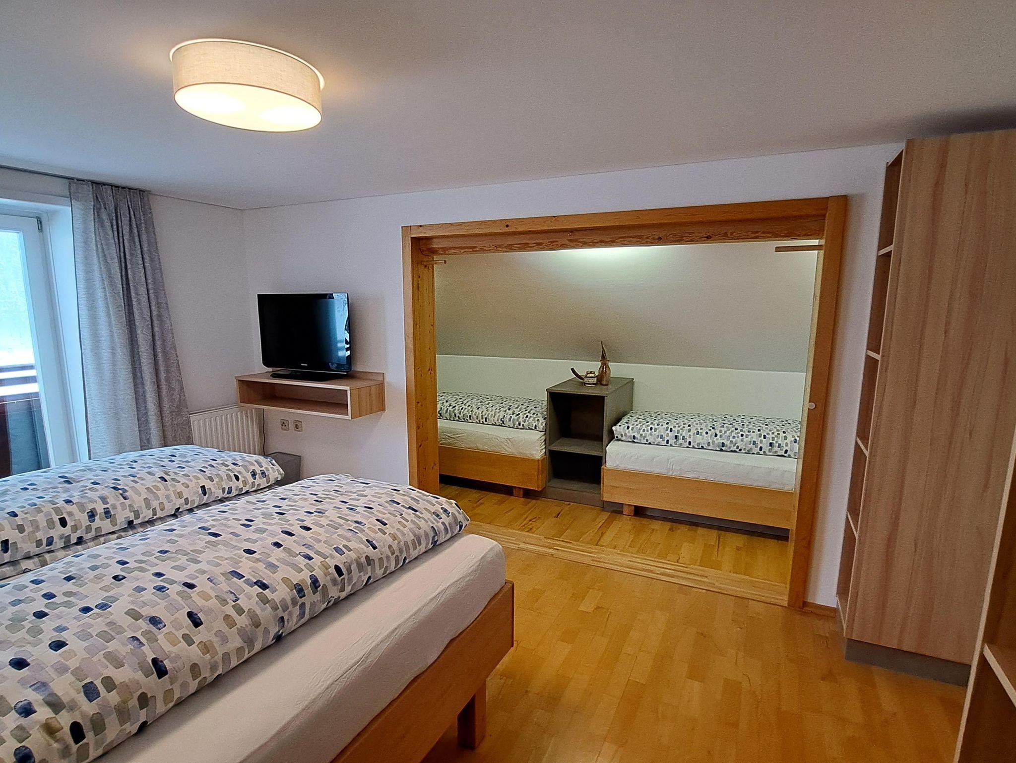 Es erwartet Sie eine neu renovierte ca. 80 m² große Wohnung mit voll ausgestatteter Küche mit Ess- und Wohnraum für das gemütliche Zusammensein, 1 x Doppelschlafzimmer, 1 x Doppelschlafzimmer plus 2 zusätzliche Einzelbetten, für Erwachsene geeignet (90x200), großem südseitigem Balkon, Badezimmer mit Dusche/WC, SAT-TV, gratis WLAN. Bei uns besteht die Möglichkeit, alle Betten auch als Einzelbetten zu benützen. Absperrbare Ski- sowie Fahrrad-Abstellmöglichkeit vorhanden.
