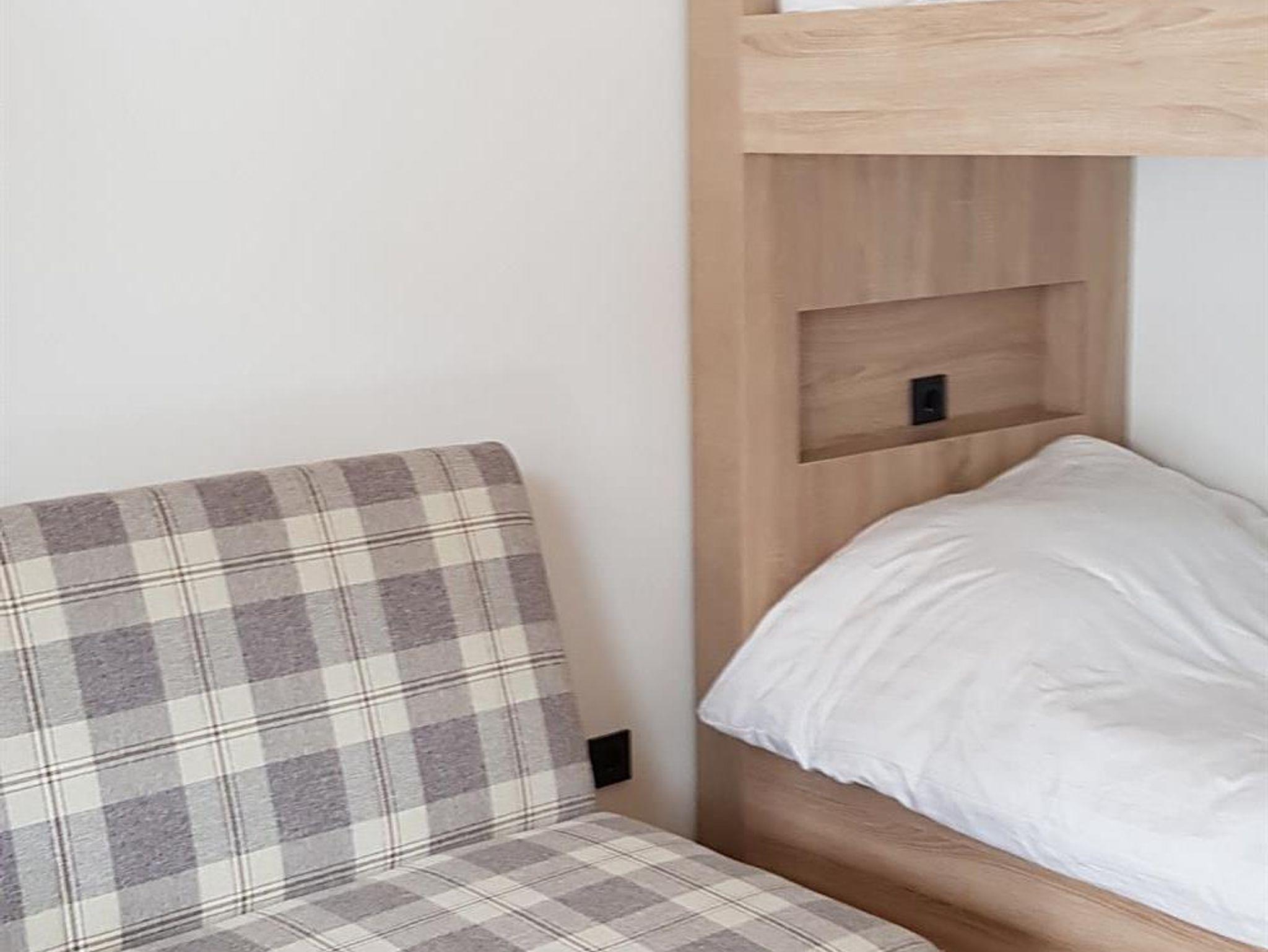Im Erdgeschoss befinden sich 3 Schlafzimmer und 2 Bäder. Schlafzimmer 1 mit 2 Betten mit luxuriösen Boxspring Matratzen und eigenem Bad; Schlafzimmer 2 mit 2 Betten mit luxuriösen Boxspring Matratzen; Schlafzimmer 3 mit Etagenbett und Schlafsofa, und mit Zugang zur Terrasse. Ein zweites Badezimmer mit Badewanne ist ebenfalls vorhanden.