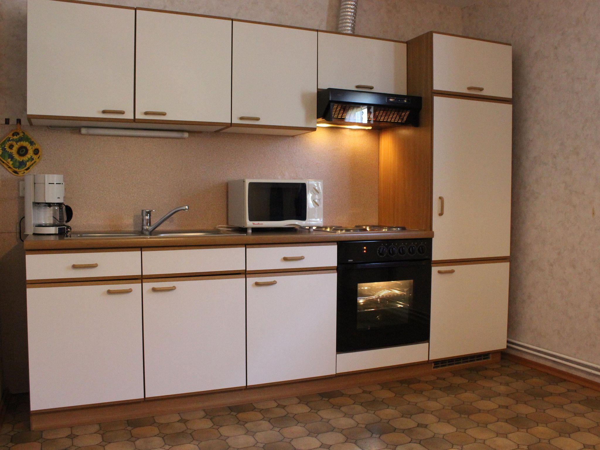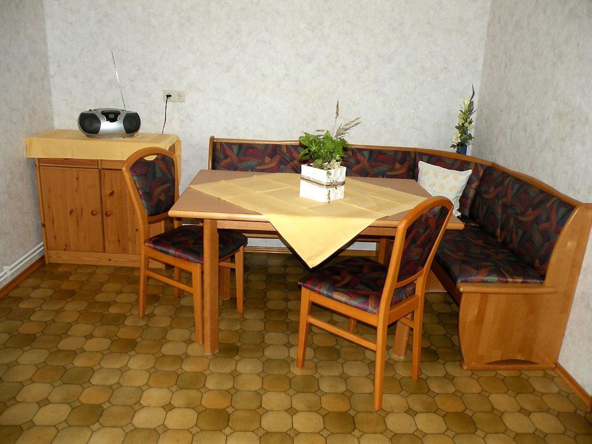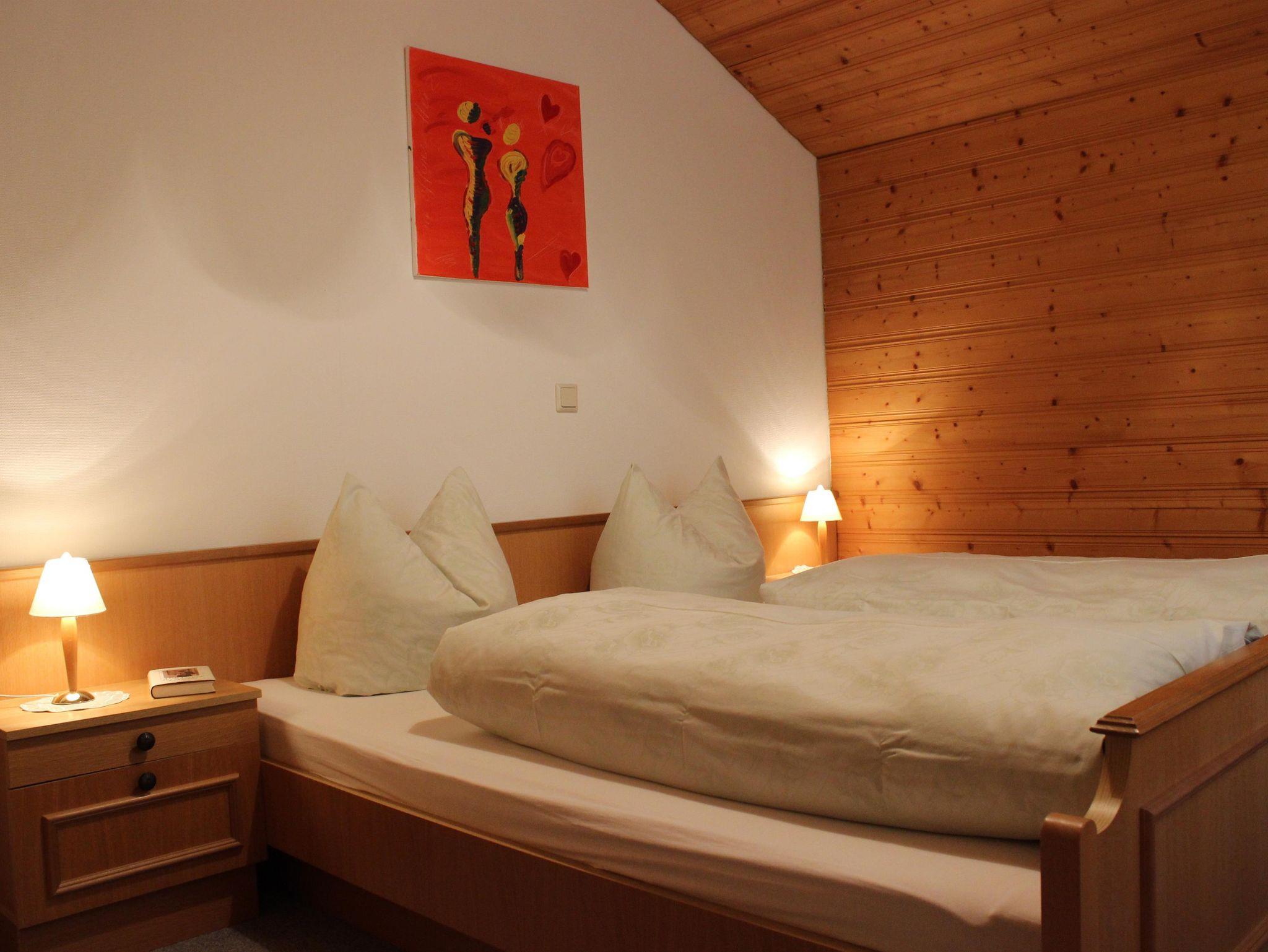Großzügige Ferienwohnung für 4 - 5 Personen im 2. Stock mit Garderobe , Küche mit Essecke , extra Wohnzimmer mit Radio und Sat - TV , 2 Doppelbettzimmer, Bad und WC getrennt , Balkon und separatem Eingang. Tischwäsche und Bettwäsche , Handtücher und Badetücher sind bei uns selbstverständlich, ebenso gratis W-LAN . Das Rauchen ist jedoch nur am Balkon erlaubt.