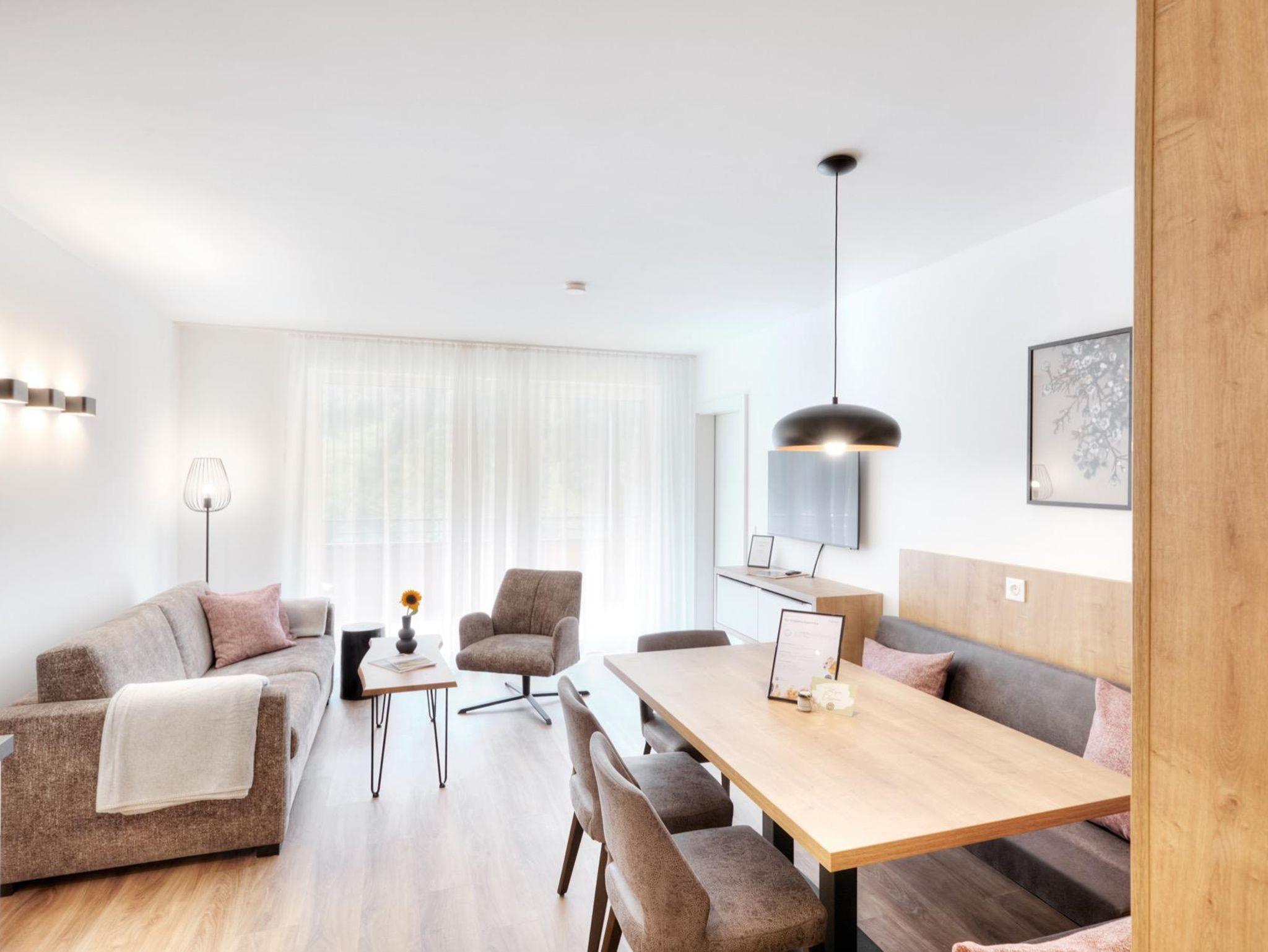 Der gemütliche Wohnbereich bietet reichlich Platz für gesellige Abendessen, ebenso für erholsame Stunden mit Familie oder Freunden. Genügend Stauraum steht Ihnen in den Apartments für Garderobe, Sportequipment und Urlaubslektüre zur Verfügung. Zusätzlich bietet das Alpenstolz Damüls einen separaten Skiraum und Fahrradraum. In Gehnähe zur Unterkunft befindet sich der Skilift Oberdamüls (200m) und der Dorfkern mit Lebensmittel- und Sportgeschäft.